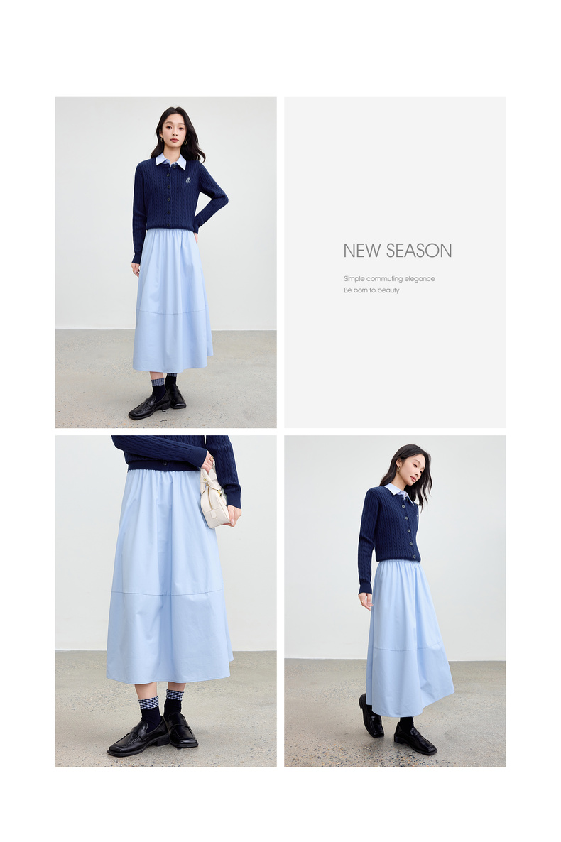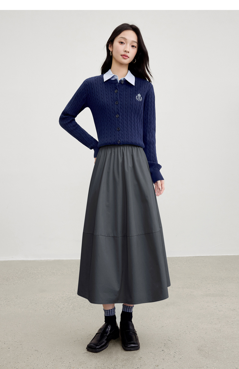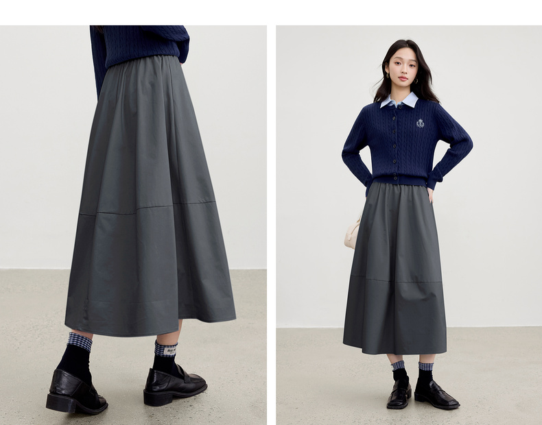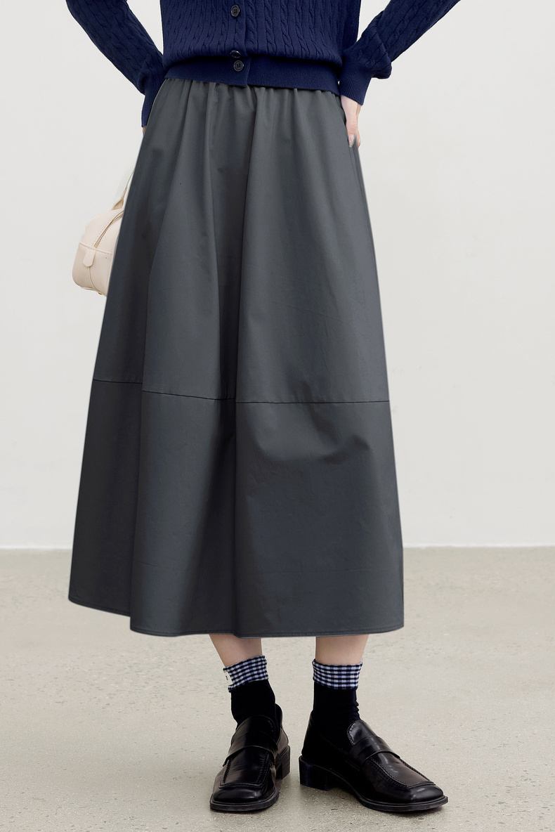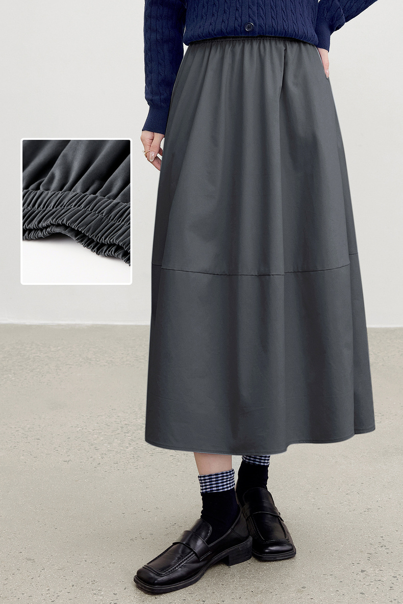 【内购】【遮肉显瘦】优雅通勤梨型身材松紧腰100%棉磨毛厚宽松A字半身裙-153QG2856