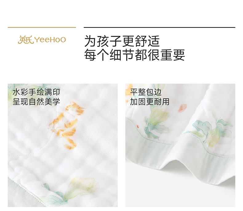英氏儿童浴巾婴儿纱布浴巾纯棉六层纱布吸水裹巾新款YMJYJ0S089A