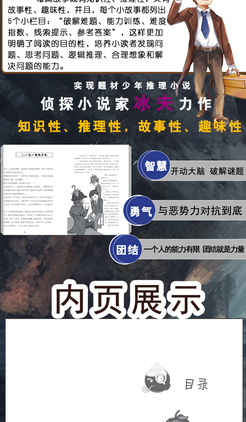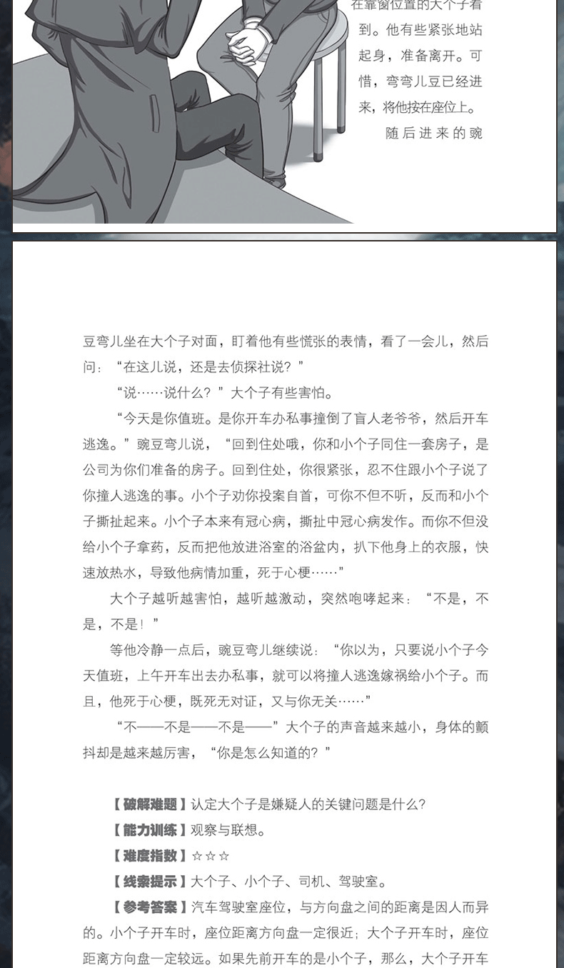 每篇故事既有知识性、推理性,又有故事性、趣味性,并且,每个小故事都列出5个小栏目:“破解难题、能力训练、难度指数、线索提示、参考答案”,这样更加明确了阅读的目的性,培养小读者发现问题、思考问题、逻辑推理、合理想象和解决问题的能力。