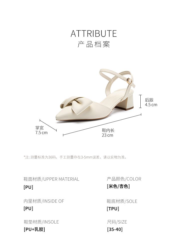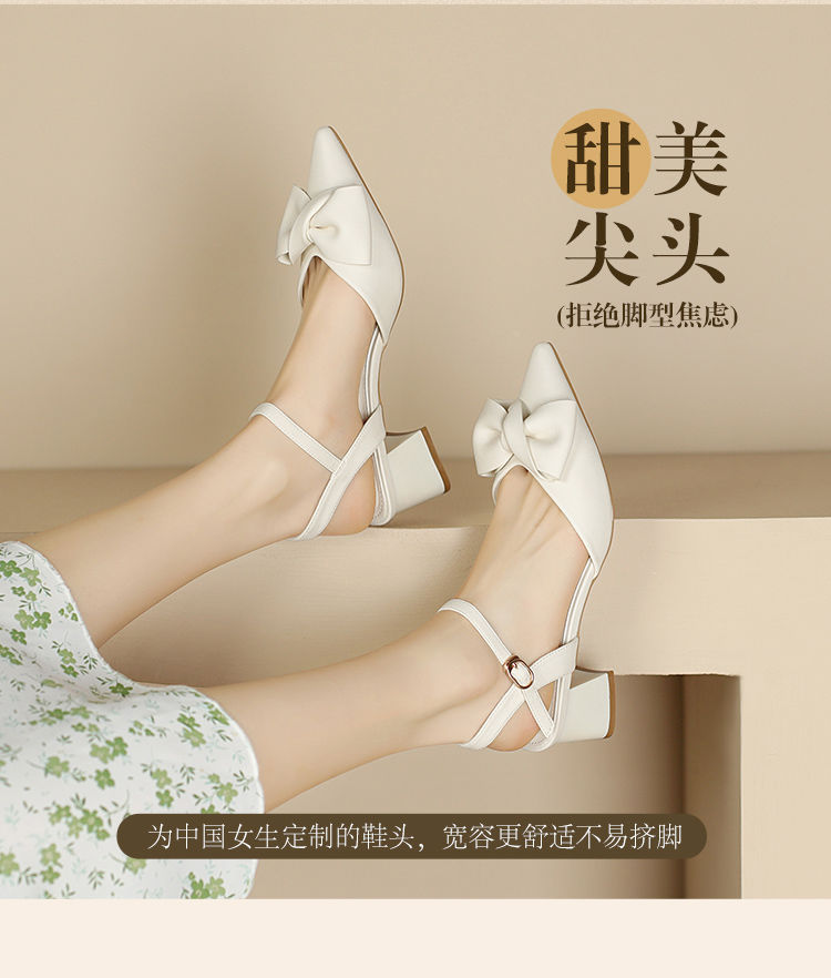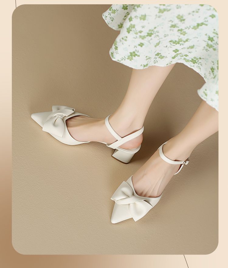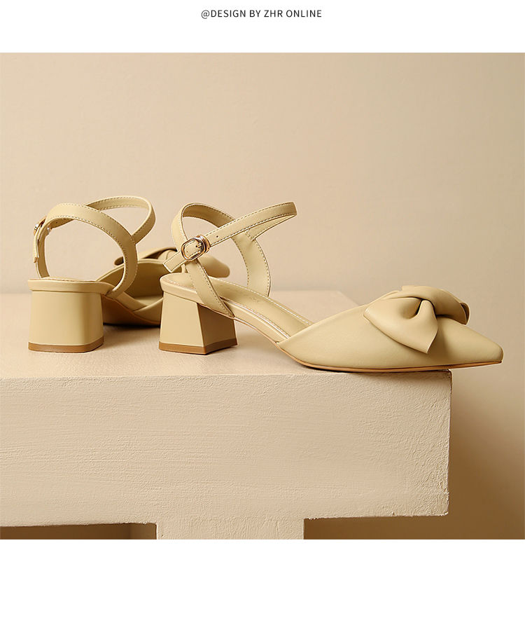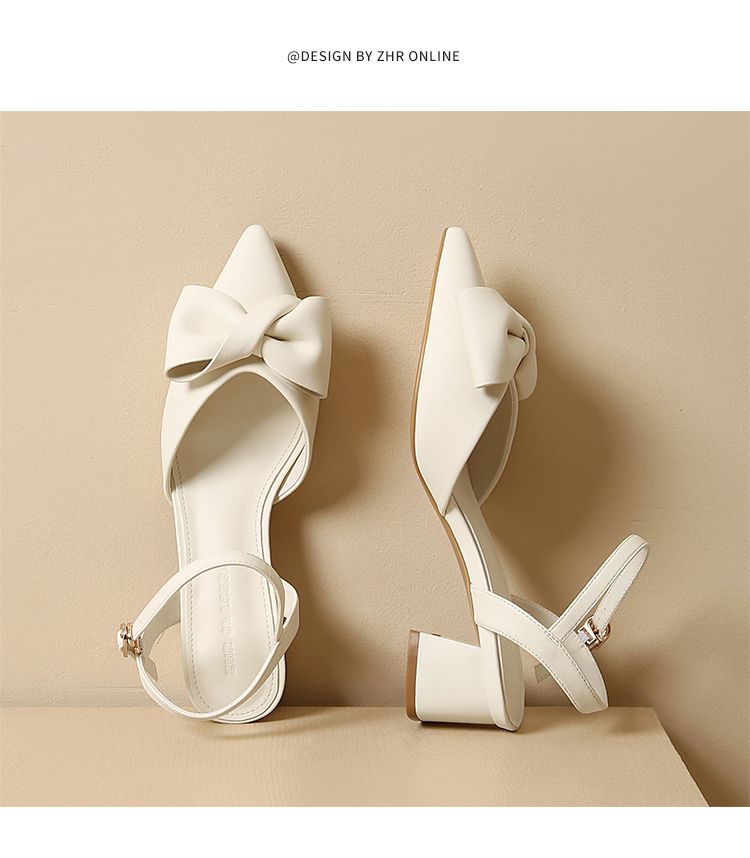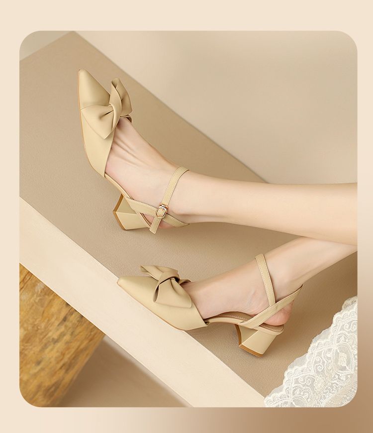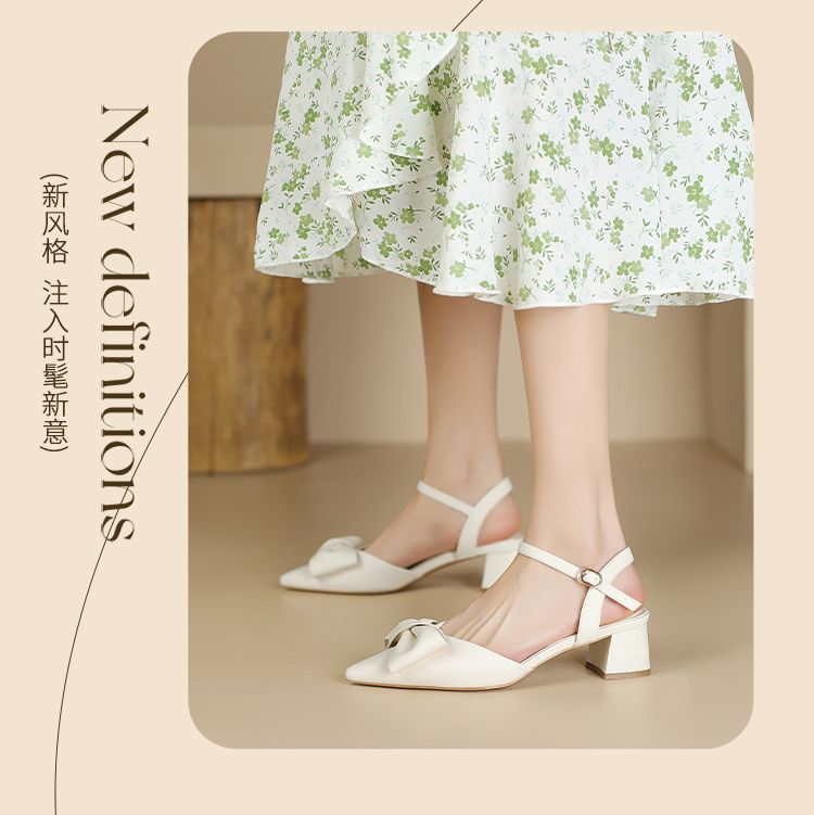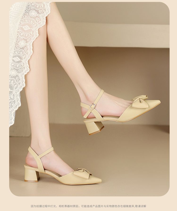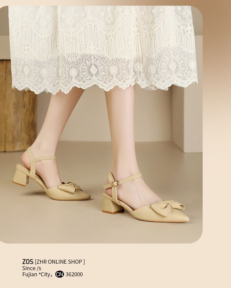 ZHR则则尖头粗跟凉鞋女2024新款时尚百搭蝴蝶结包头凉鞋气质女鞋