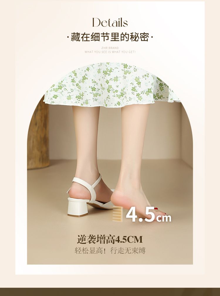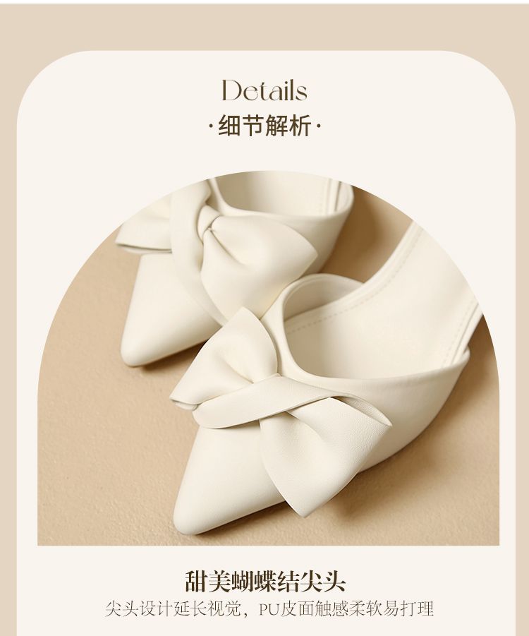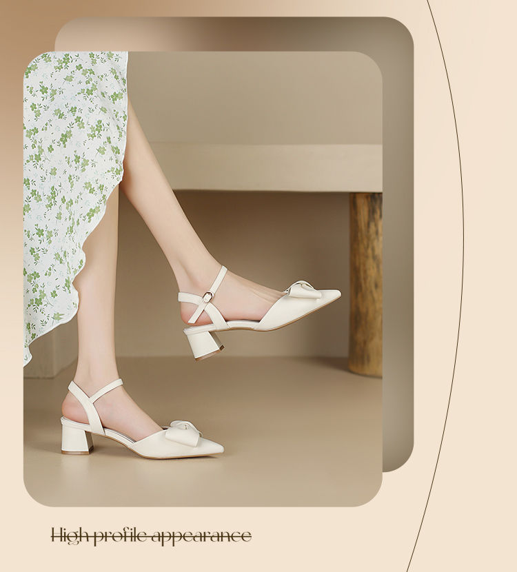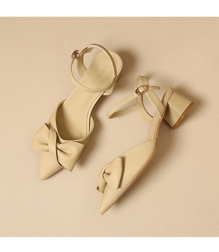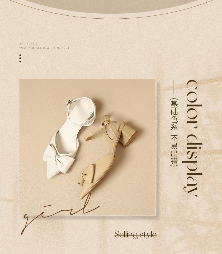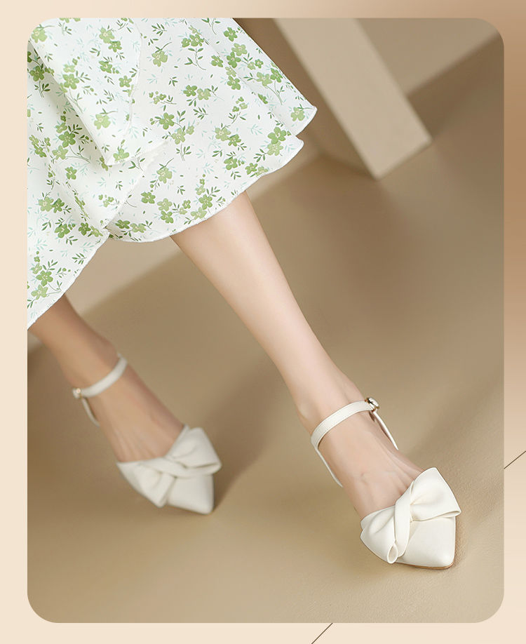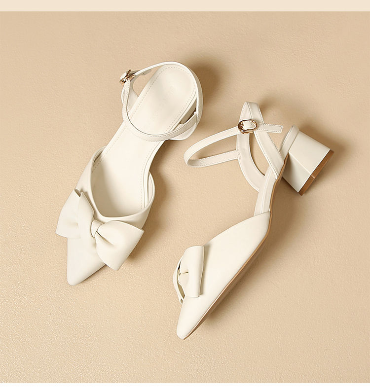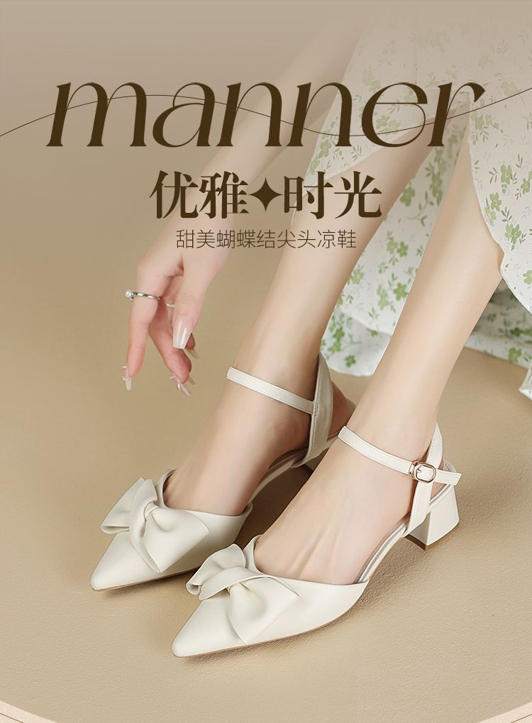 ZHR则则尖头粗跟凉鞋女2024新款时尚百搭蝴蝶结包头凉鞋气质女鞋