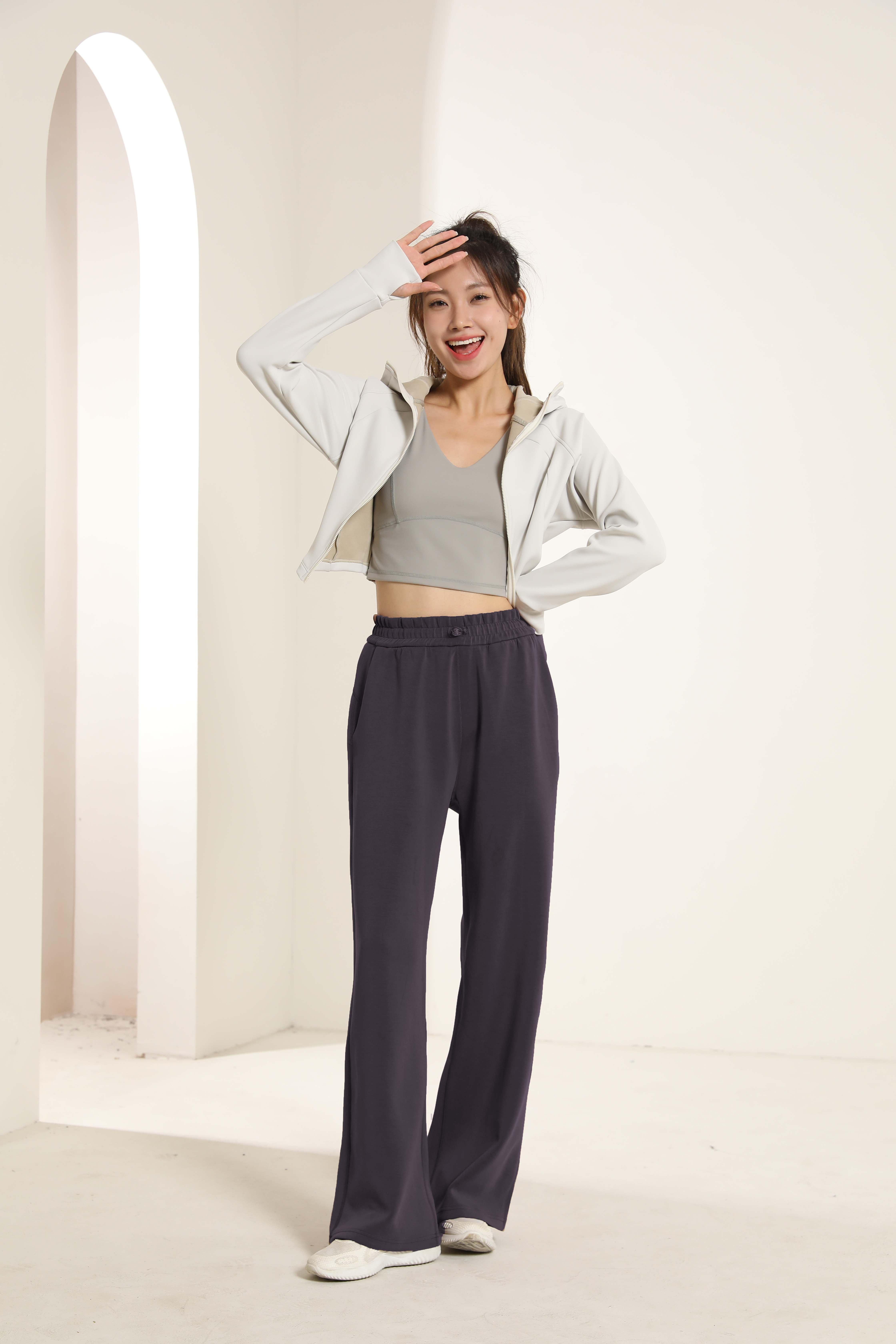 [品名] 哈瓦塔舒适加厚阔腿休闲运动砂洗直简长裤