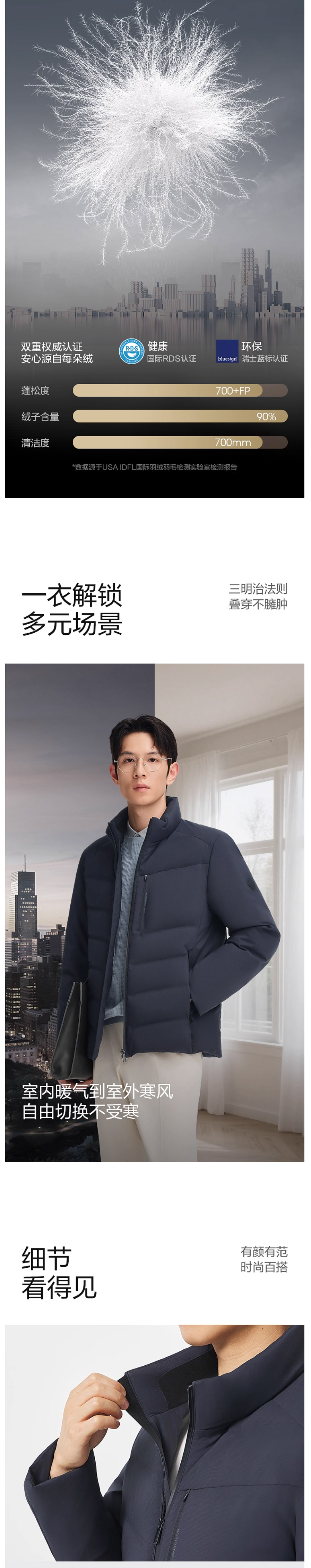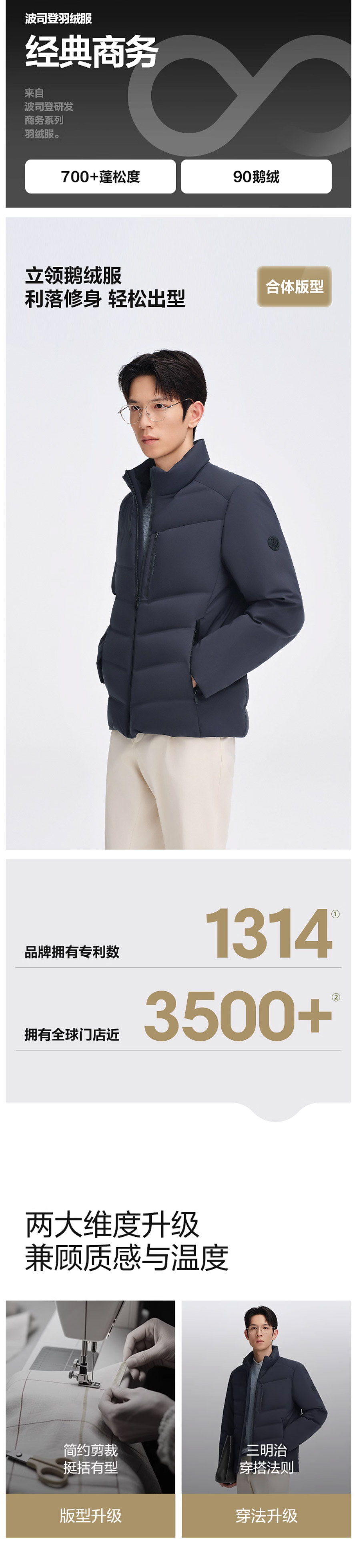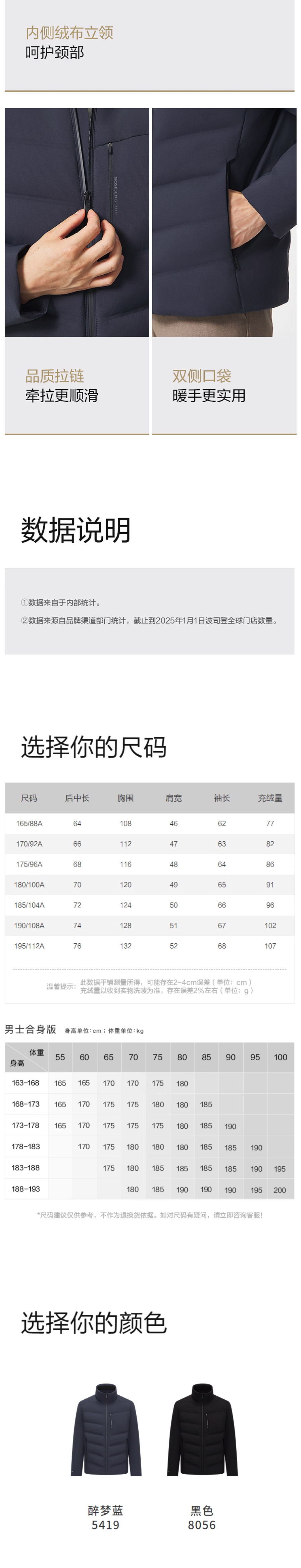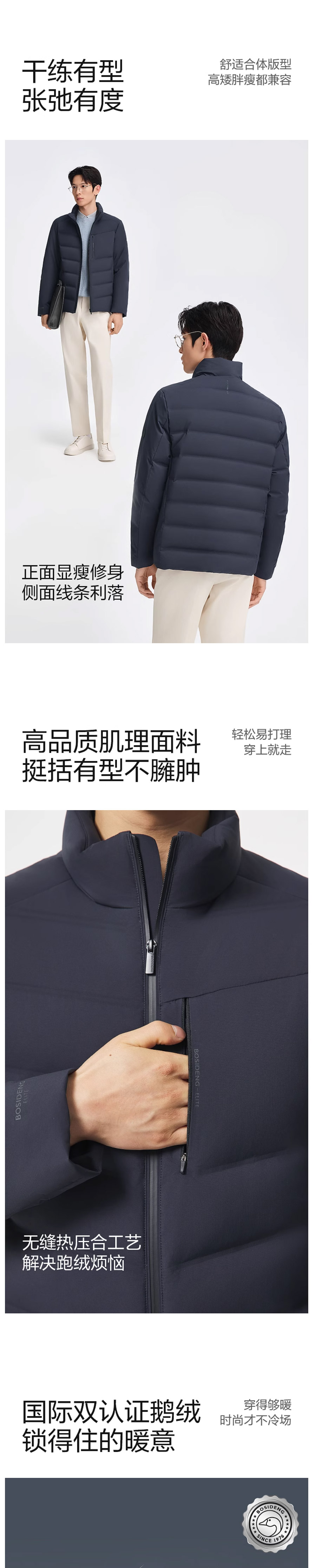 波司登2025秋季新款短款经典商务立领90鹅绒羽绒服男B250134121