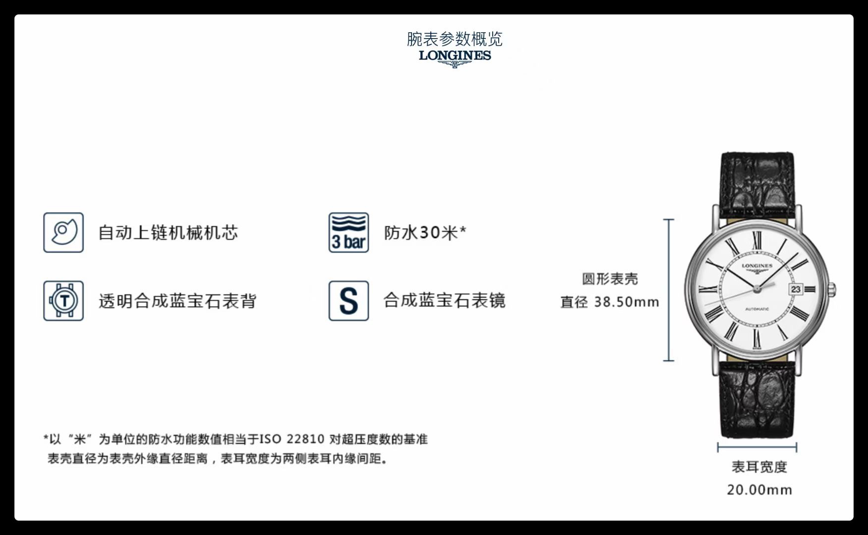 浪琴LONGINES 时尚系列Ø 38.50mm自动机械男士腕表,透明蓝宝石表背,30m防水,64小时动力存储,全新专柜现货发售