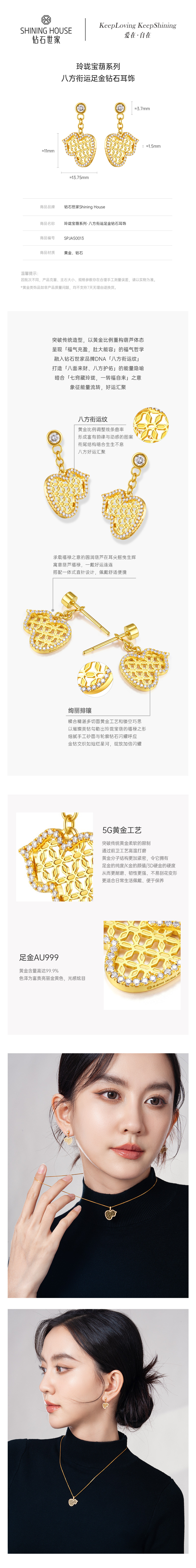 【八方衔运纹】【 玲珑宝葫 】钻石世家 玲珑宝葫系列 足金葫芦镶钻耳饰 【黄金产品不支持无理由退换货】预计3-5天发货