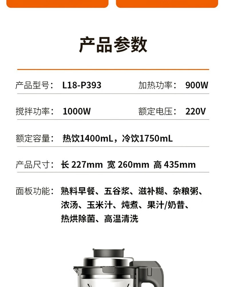 九阳(Joyoung) 破壁机_多功能低音破壁机料理机 L18-P393家用除菌榨汁机豆浆机绞肉机果汁机搅拌机辅食机 【K】