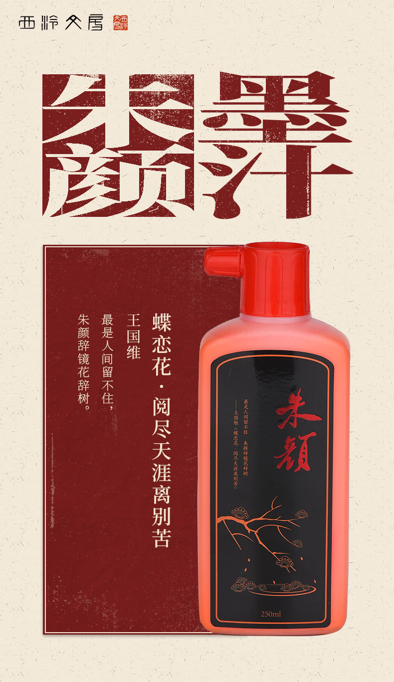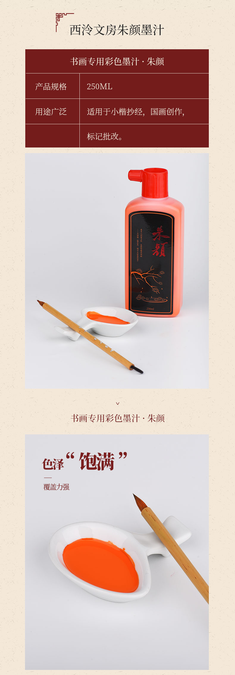 【西泠印社】朱颜墨朱墨朱砂墨汁墨水250ml书法国画抄经标记批注用品彩色墨水文房四宝书法初学者