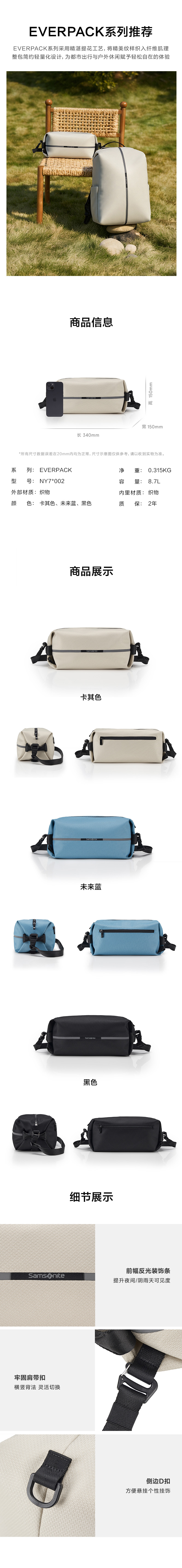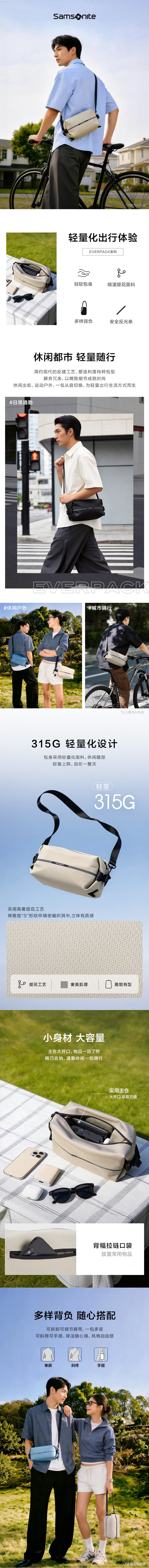新秀丽EVERPACK系列轻便休闲多样背负单肩包NY7*002