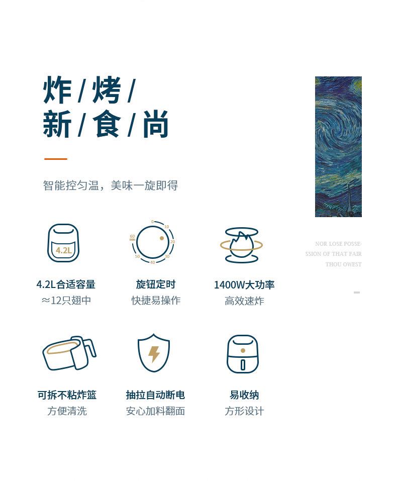 苏泊尔空气炸锅4.2L大容量蒸汽嫩炸无油烟早餐智能电烤箱KJ42D811