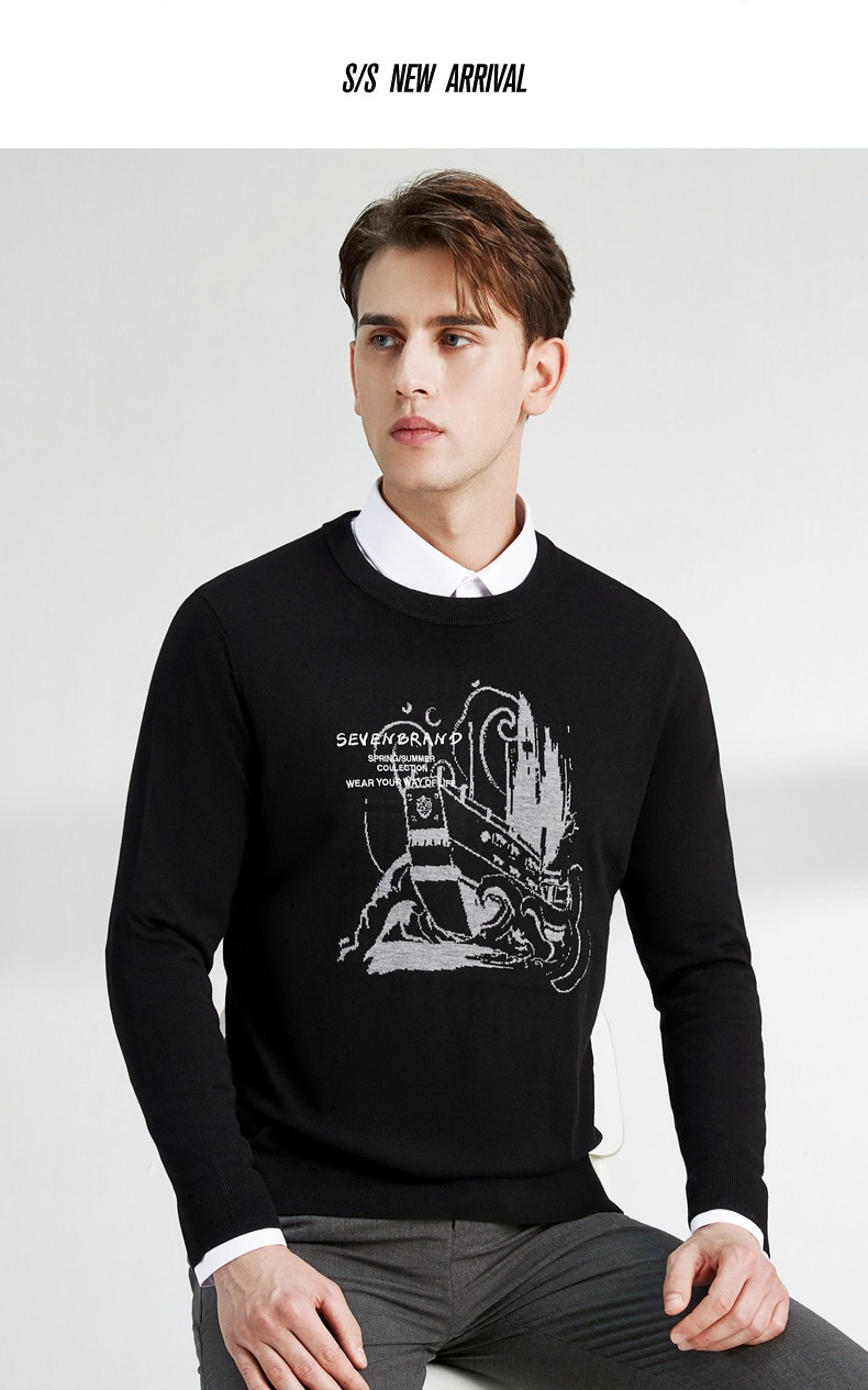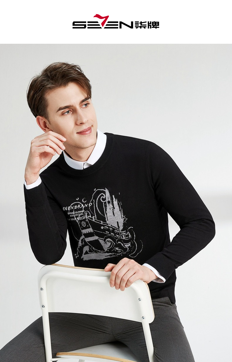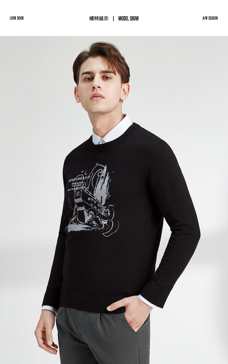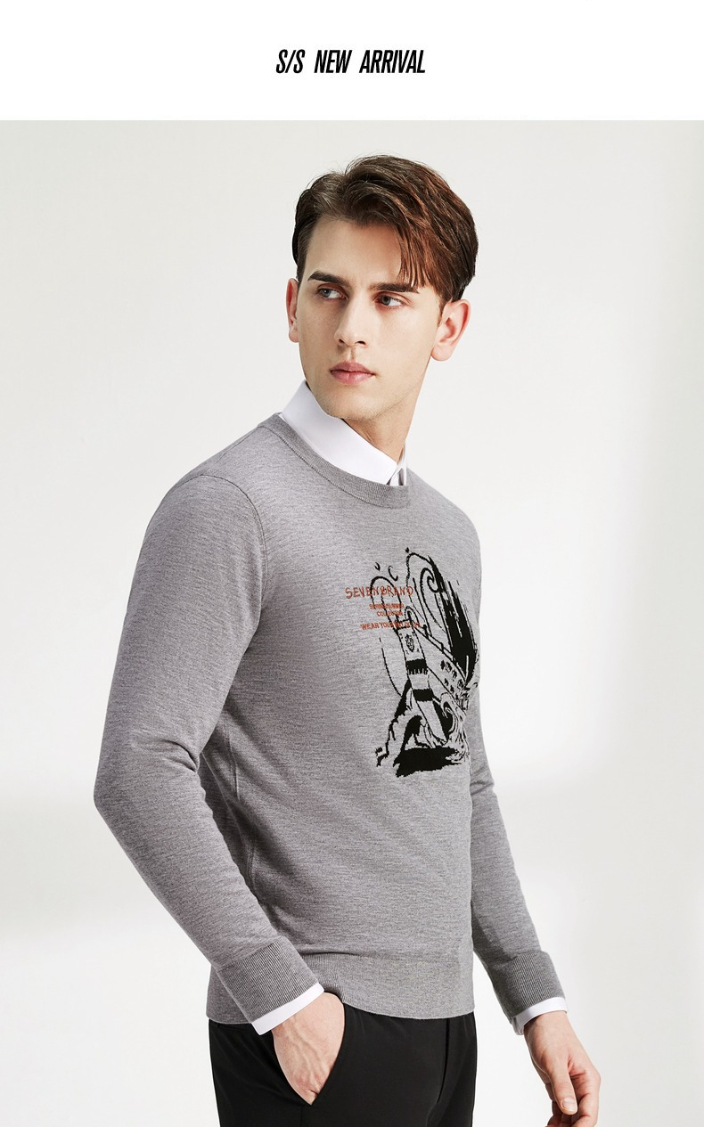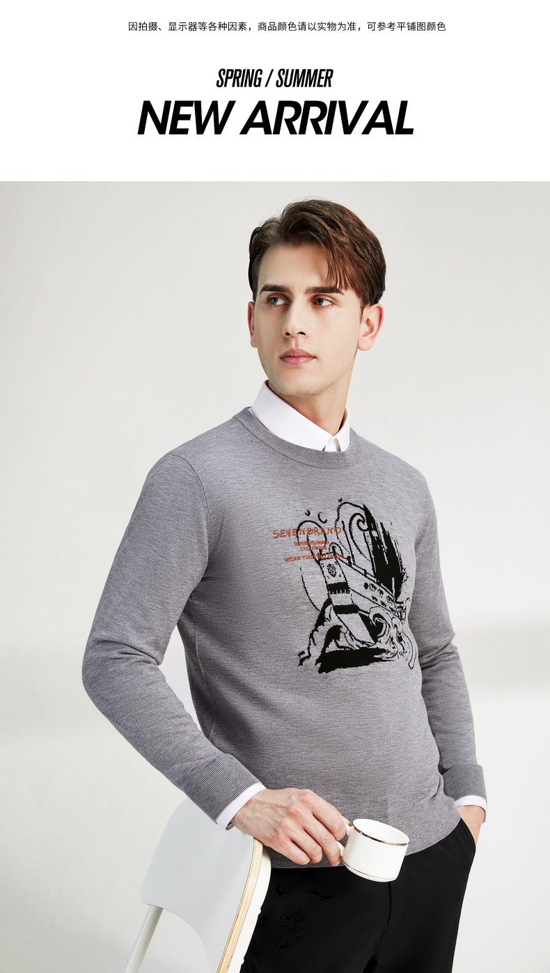 柒牌男士毛衣圆领春季新款时尚潮流含羊毛针织衫弹力保暖毛衫 122Y70060