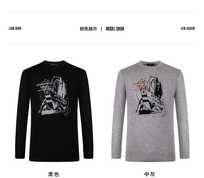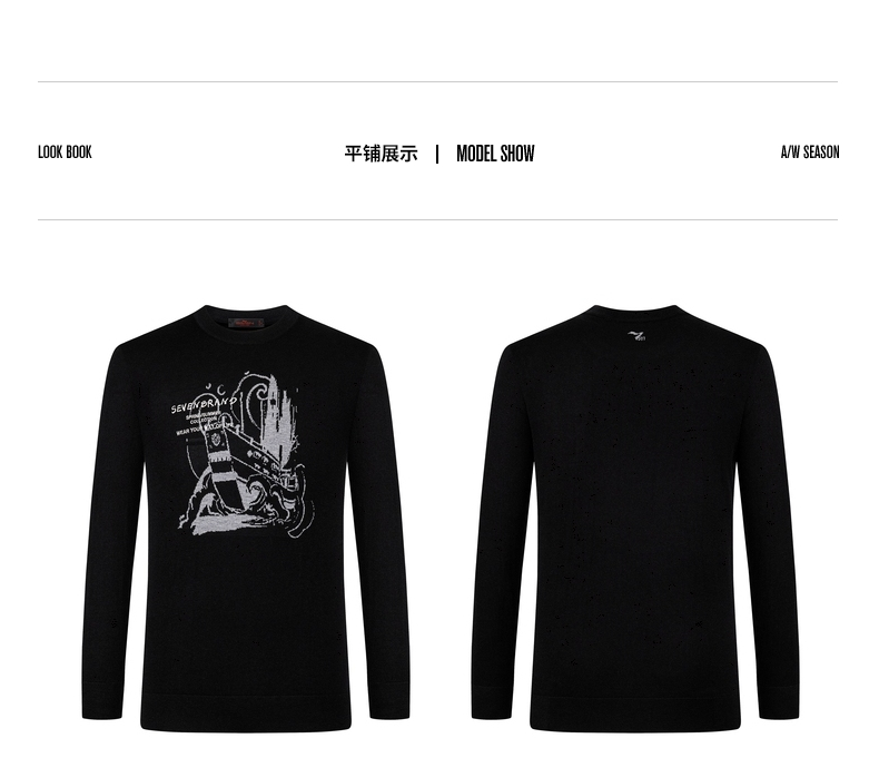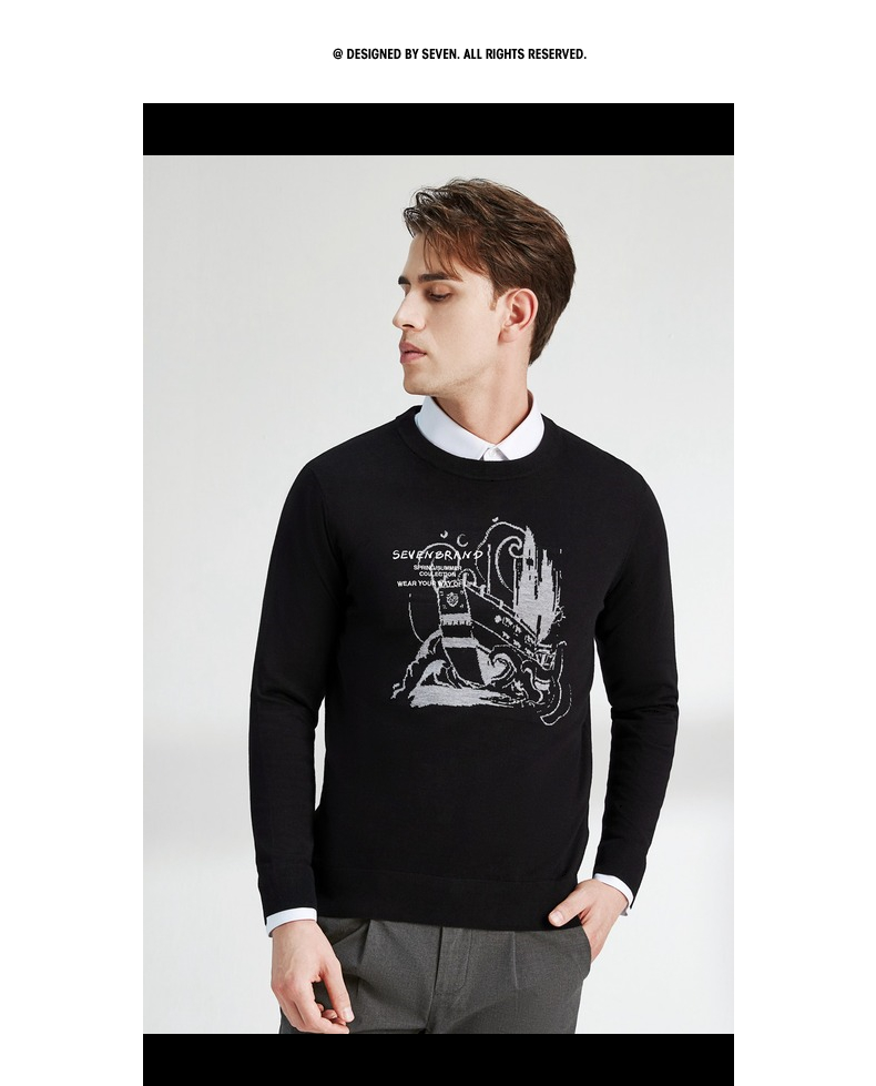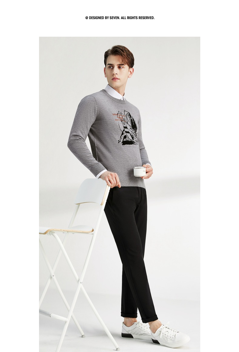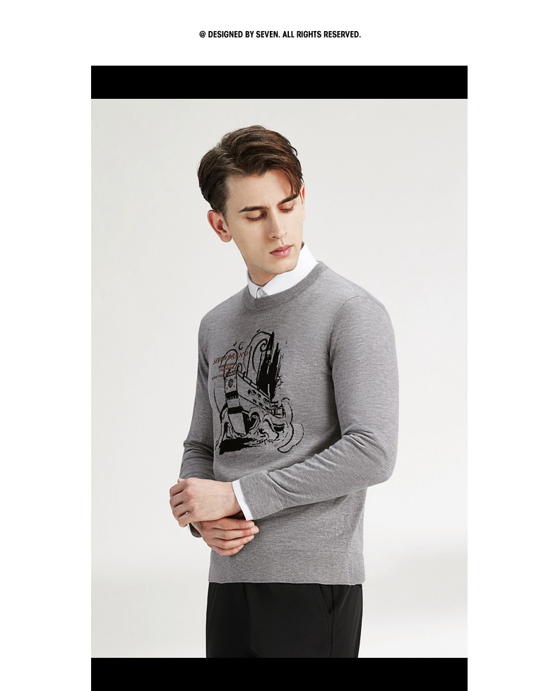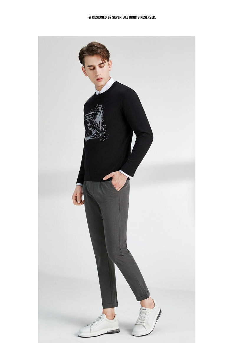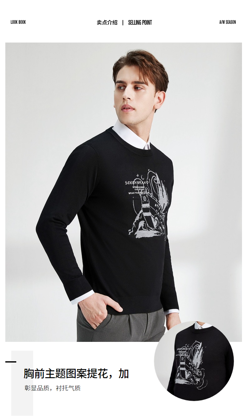 柒牌男士毛衣圆领春季新款时尚潮流含羊毛针织衫弹力保暖毛衫 122Y70060