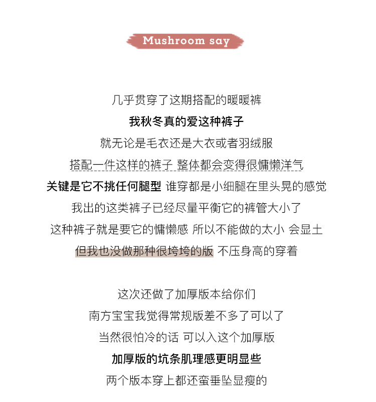 【裤王 暖暖裤】金蘑菇菇 怕冷女孩也可以放心拥有它!