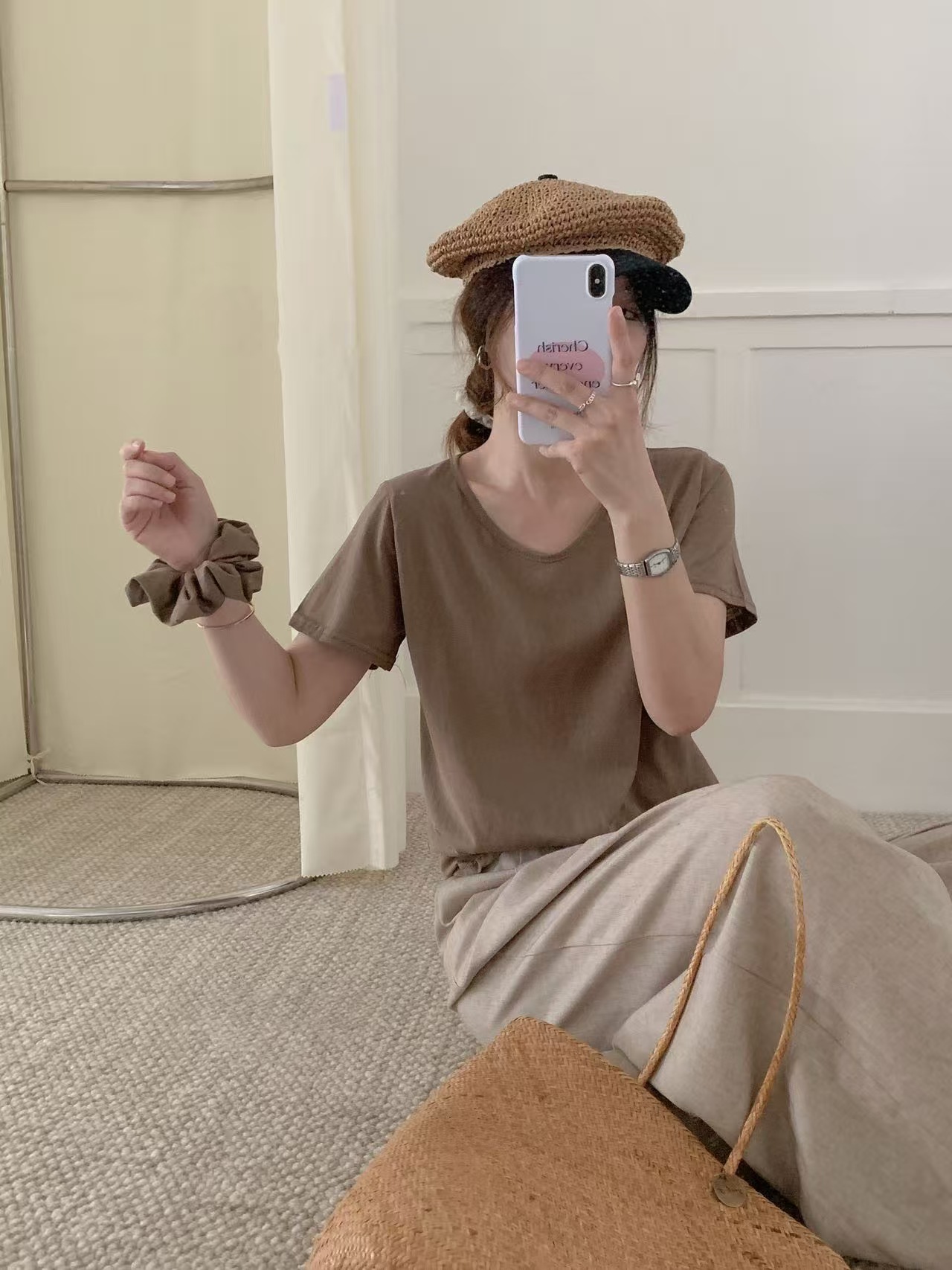 【商品名称】:𝐞𝐠𝐠.𝐮𝐧𝐢𝐪𝐮𝐞夏日限定慵懒风T恤 配头花
