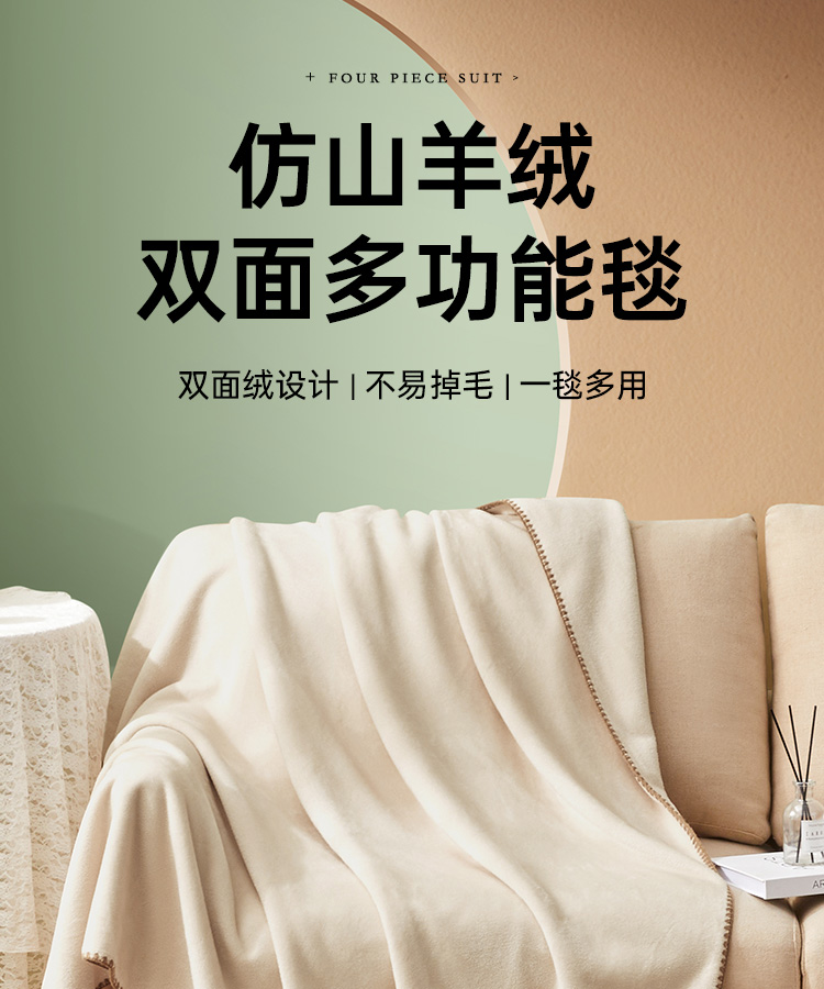 仿山羊绒双面多功能毯