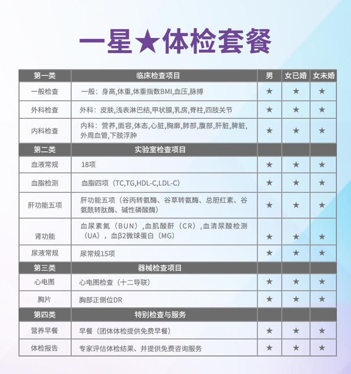 一星体检套餐