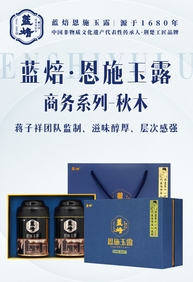 蓝焙恩施茶叶2024年新茶湖北绿茶春茶一级蒸青恩施玉露硒茶秋木礼盒 秋木书盒200克*1盒