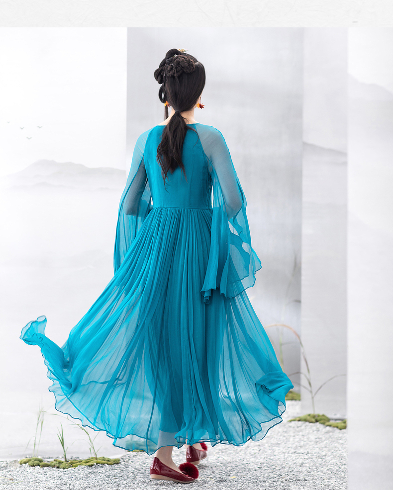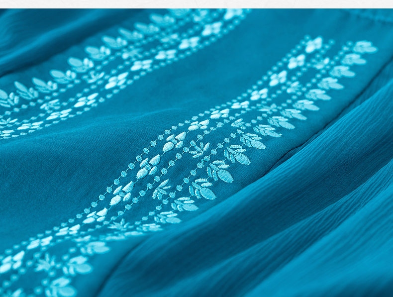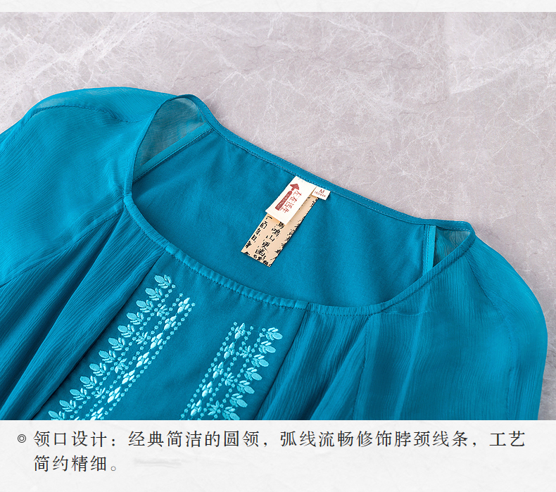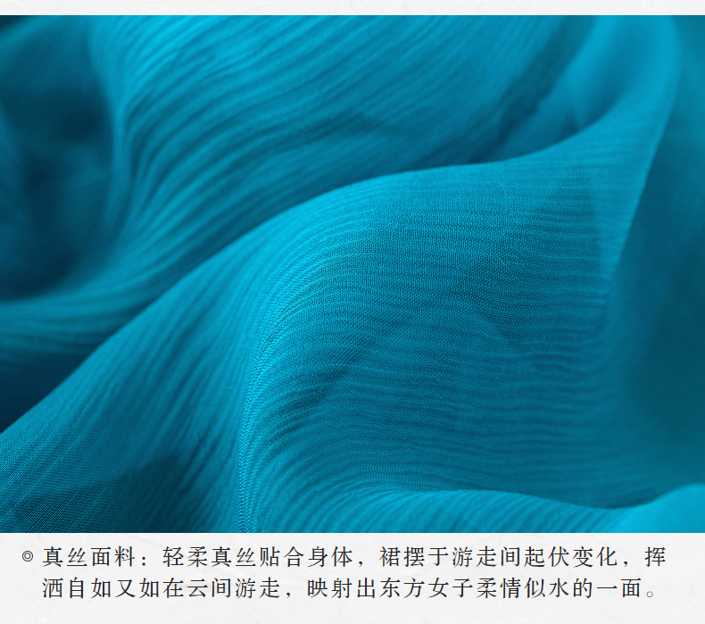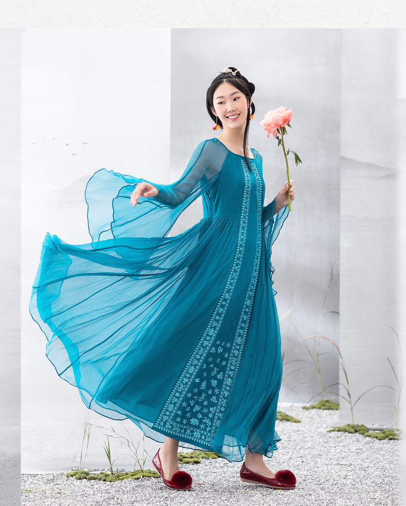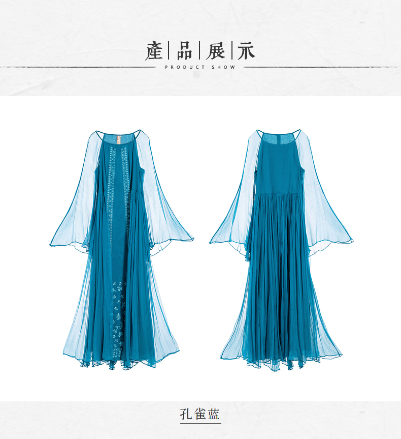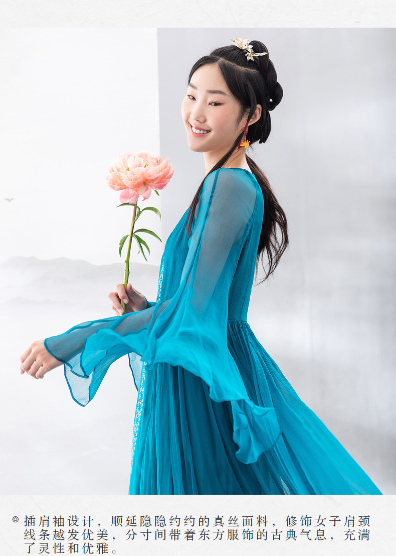 【林栖设计小店】【赵雅芝同款】【现货】生活在左孔雀蓝复古收腰显瘦真丝轻凉马面裙连衣裙气质绣花长裙 1911104