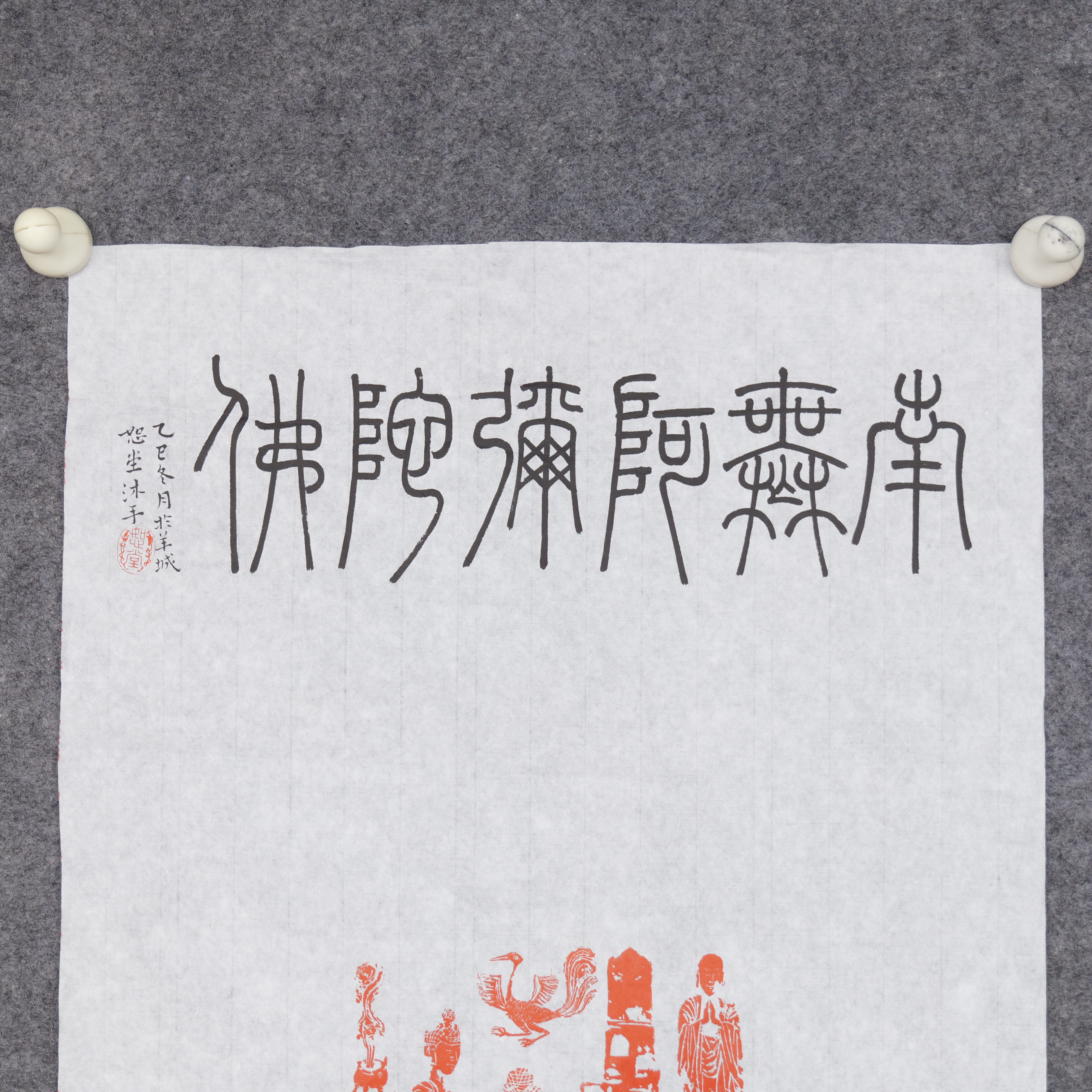 邓圣卿《南无阿弥陀佛》69.5x35cm 手写纸本宣纸书法作品