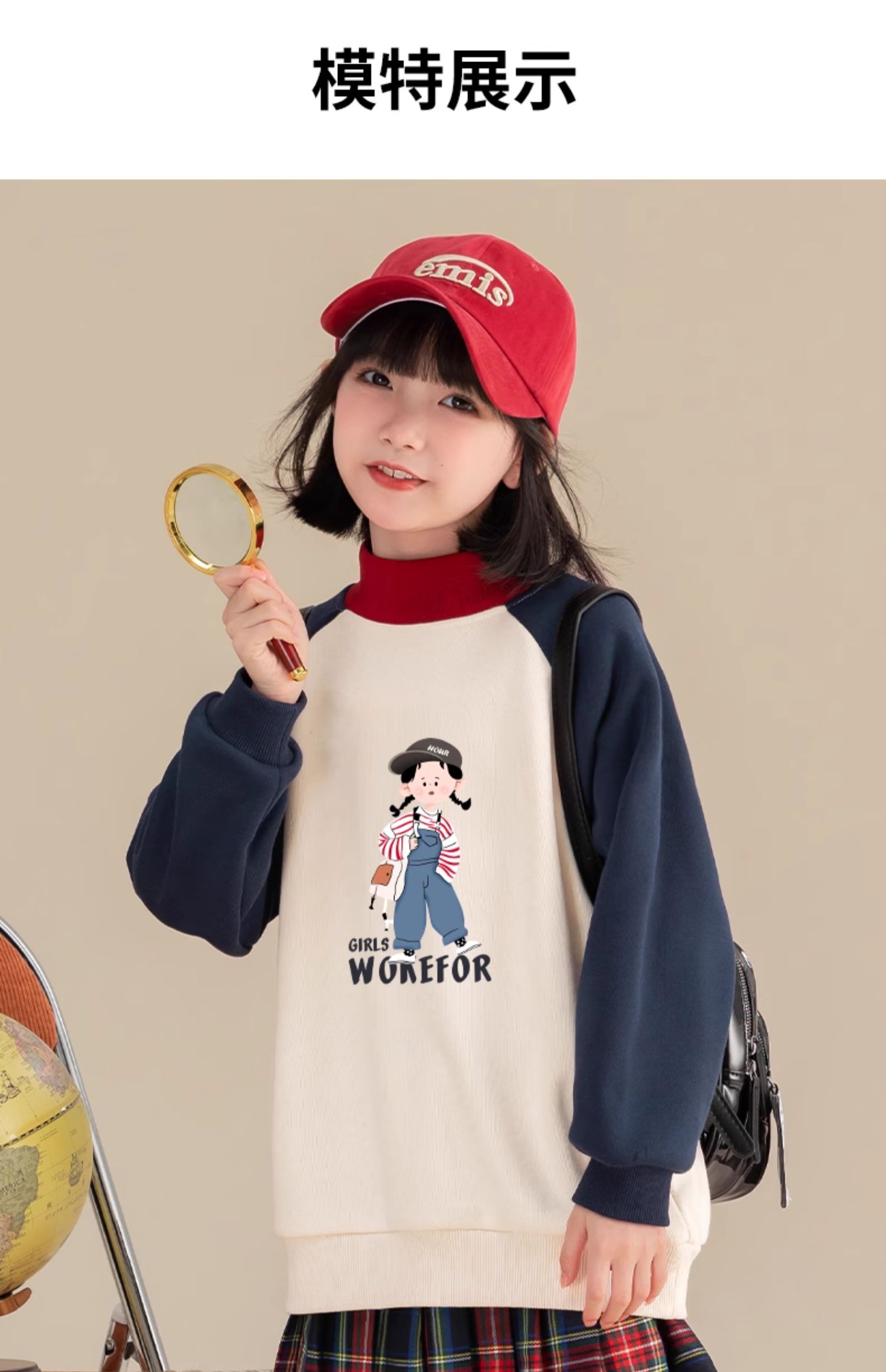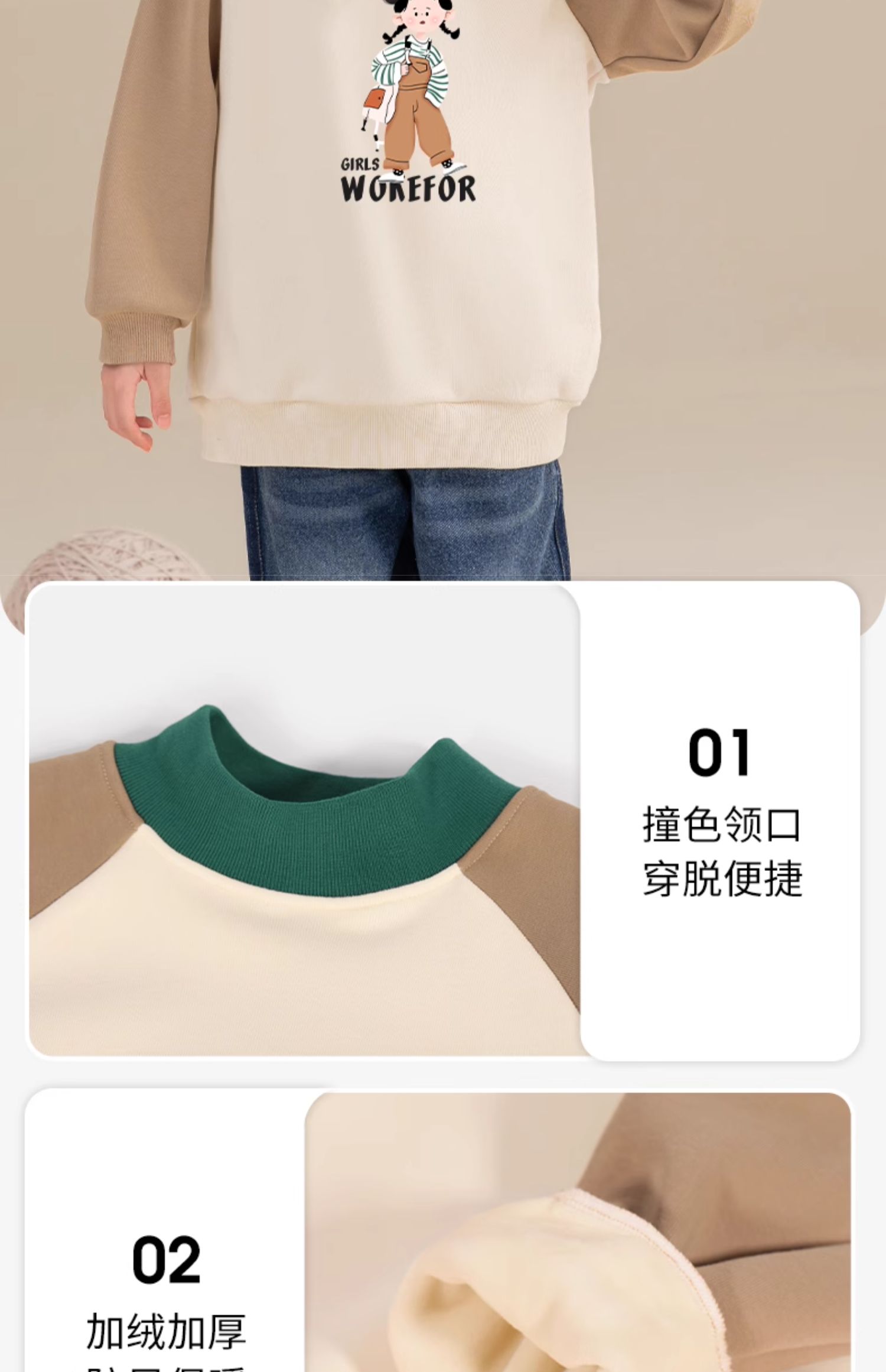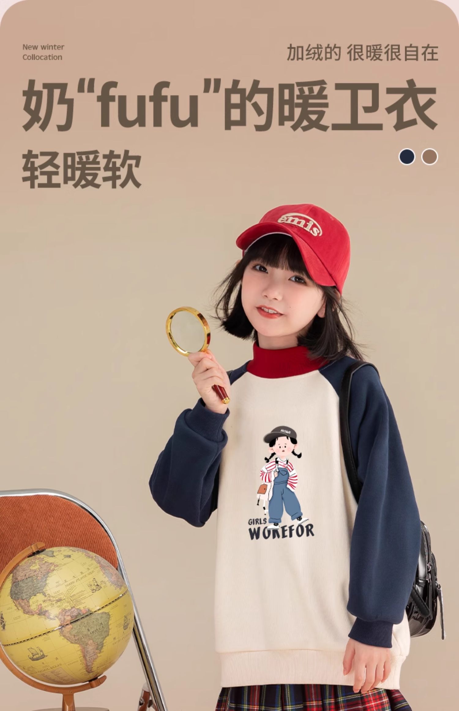 儿童保暖上衣秋冬款2024新款女童加绒卫衣冬季加厚中大童衣服冬装