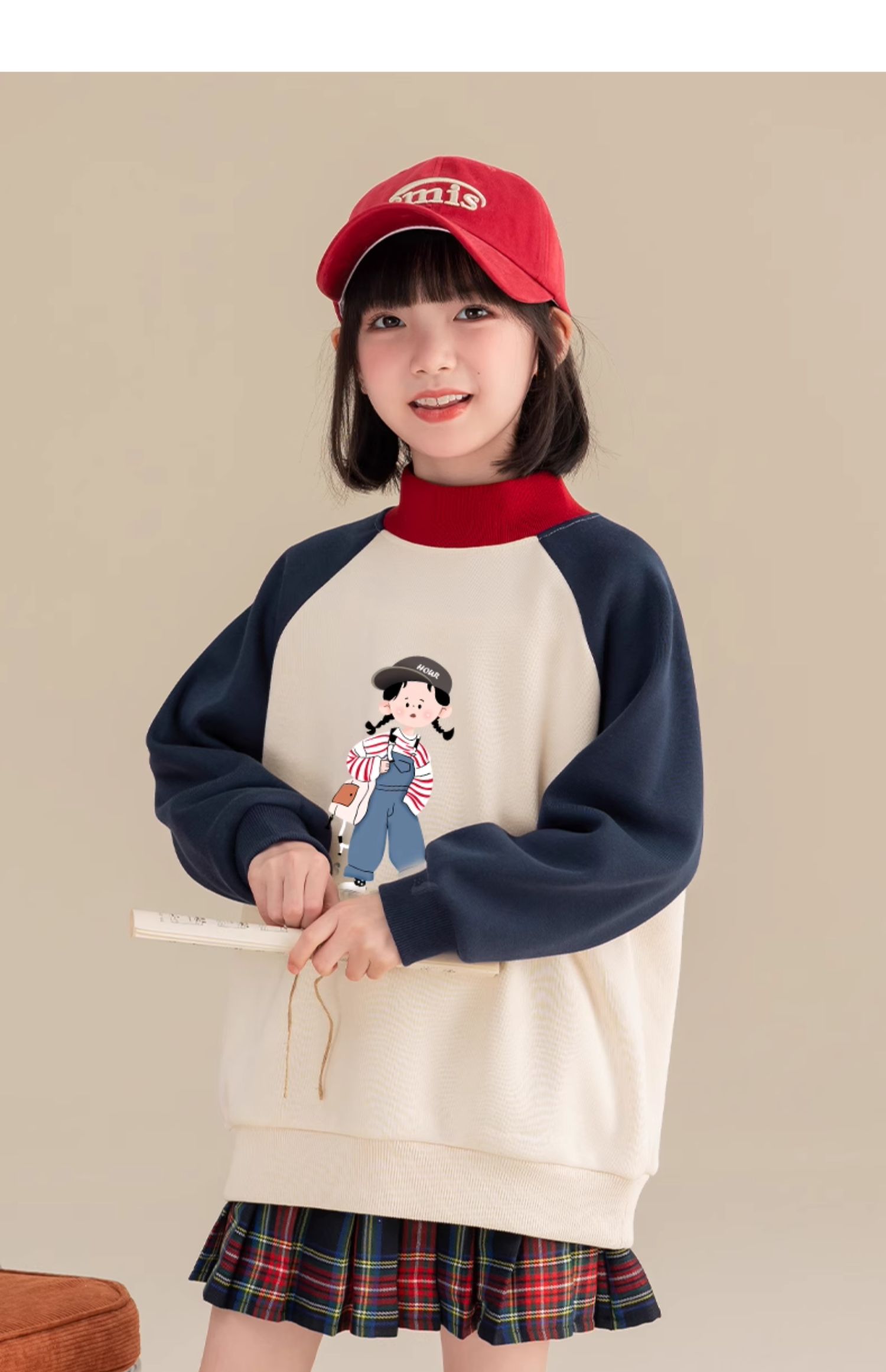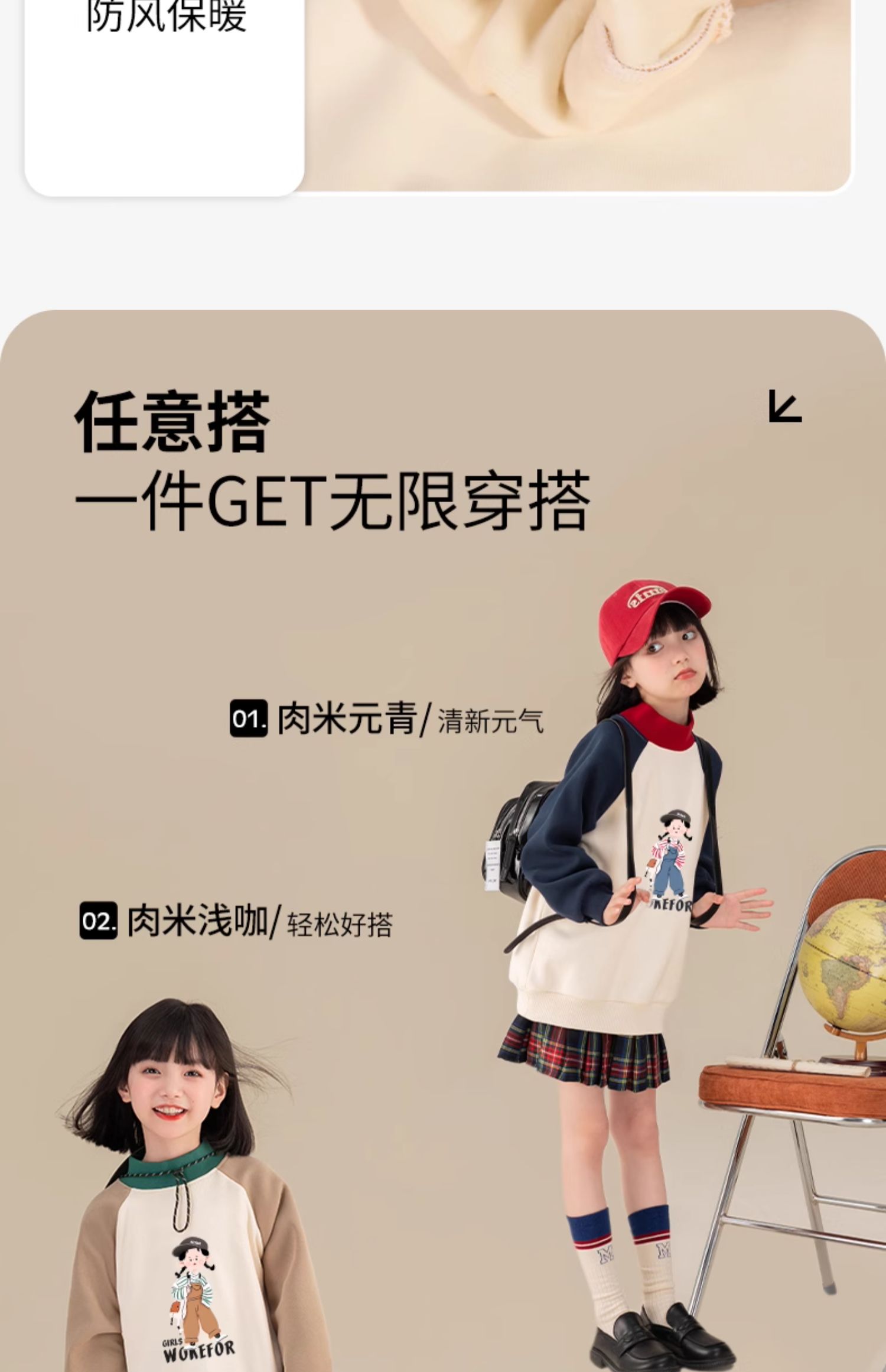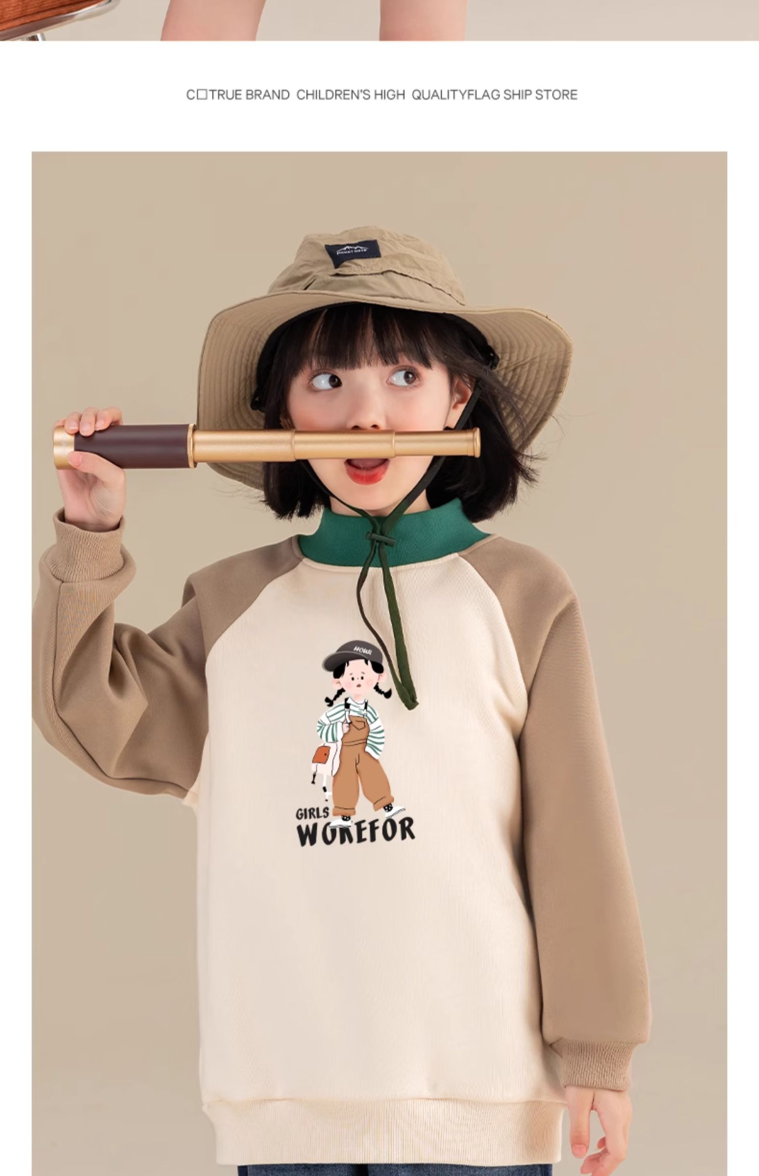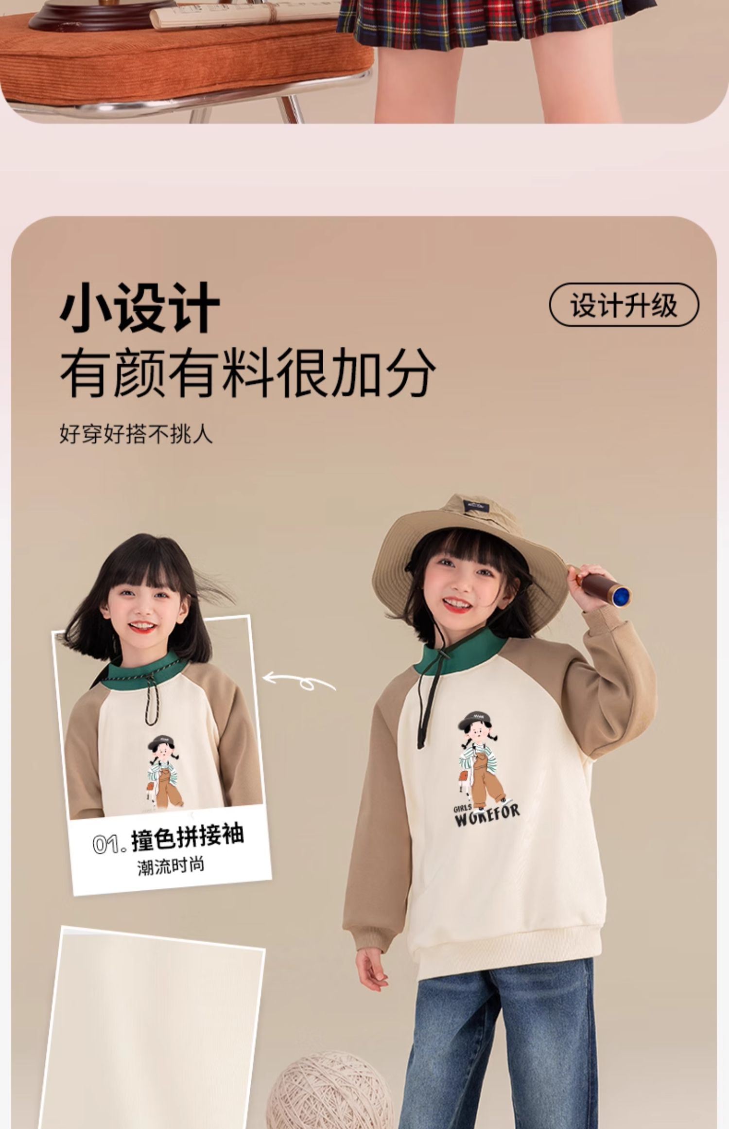 儿童保暖上衣秋冬款2024新款女童加绒卫衣冬季加厚中大童衣服冬装