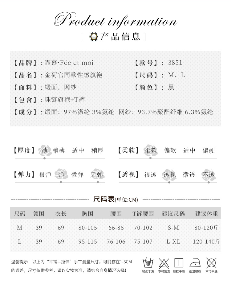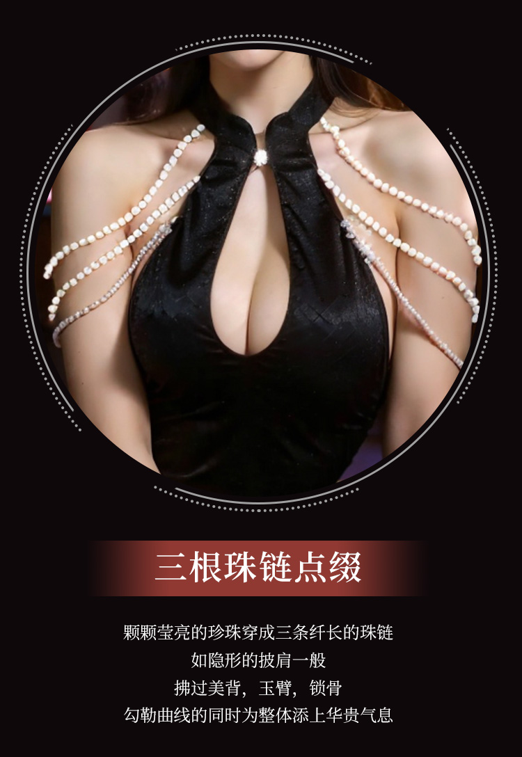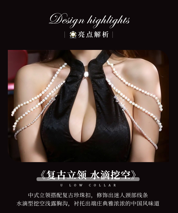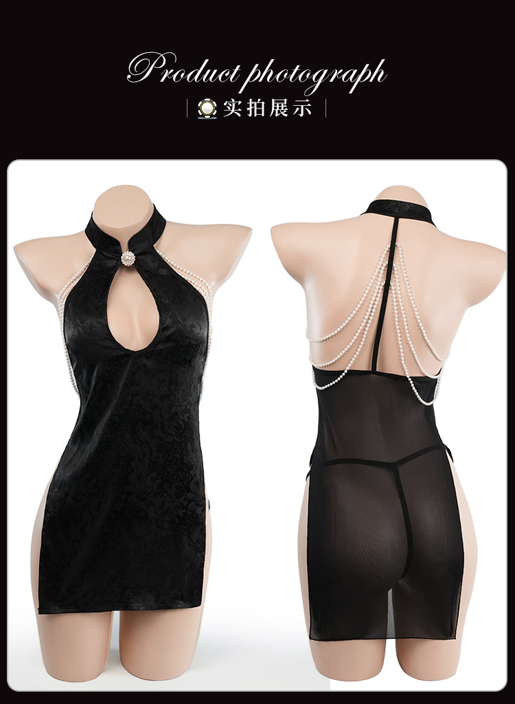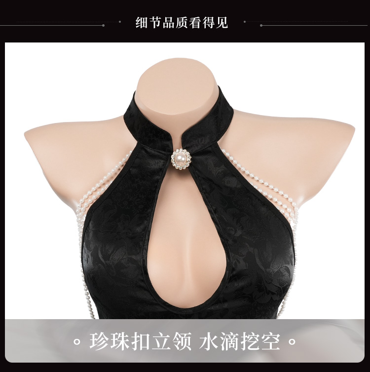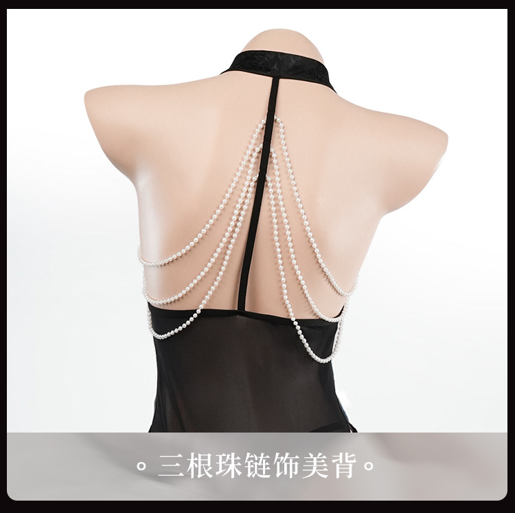 霏慕 金荷官同款性感旗袍3851情趣内衣复古珍珠成人性感衣 幸运荷官黑M珠链旗袍 均码