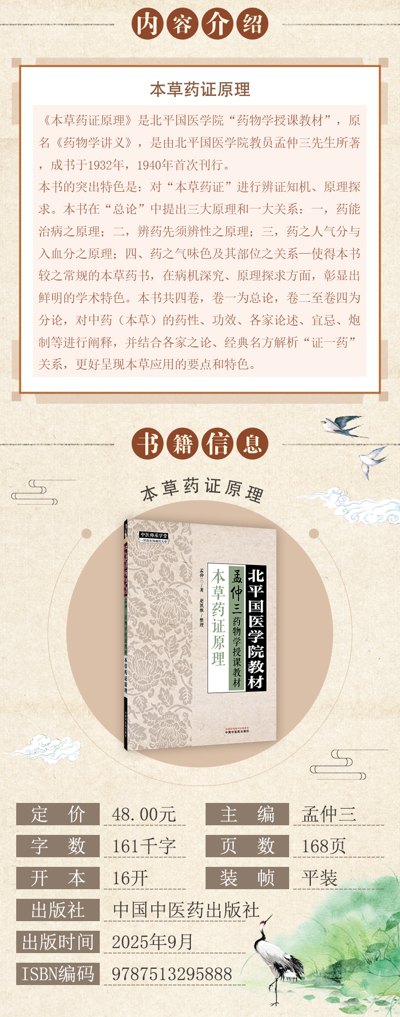 本草药证原理 北平国医学院教材 孟仲三药物学授课教材 中医师承学堂 孟仲三 主编 赵凯维 整理 9787513295888 中国中医药出版社