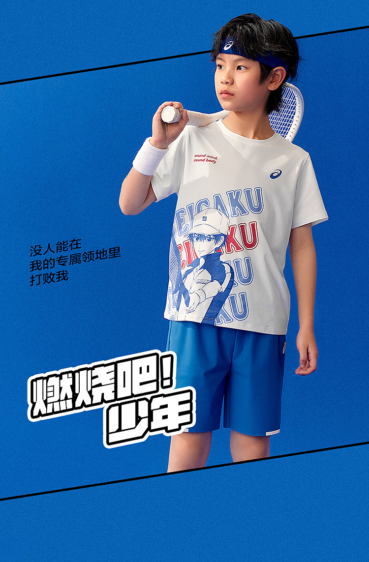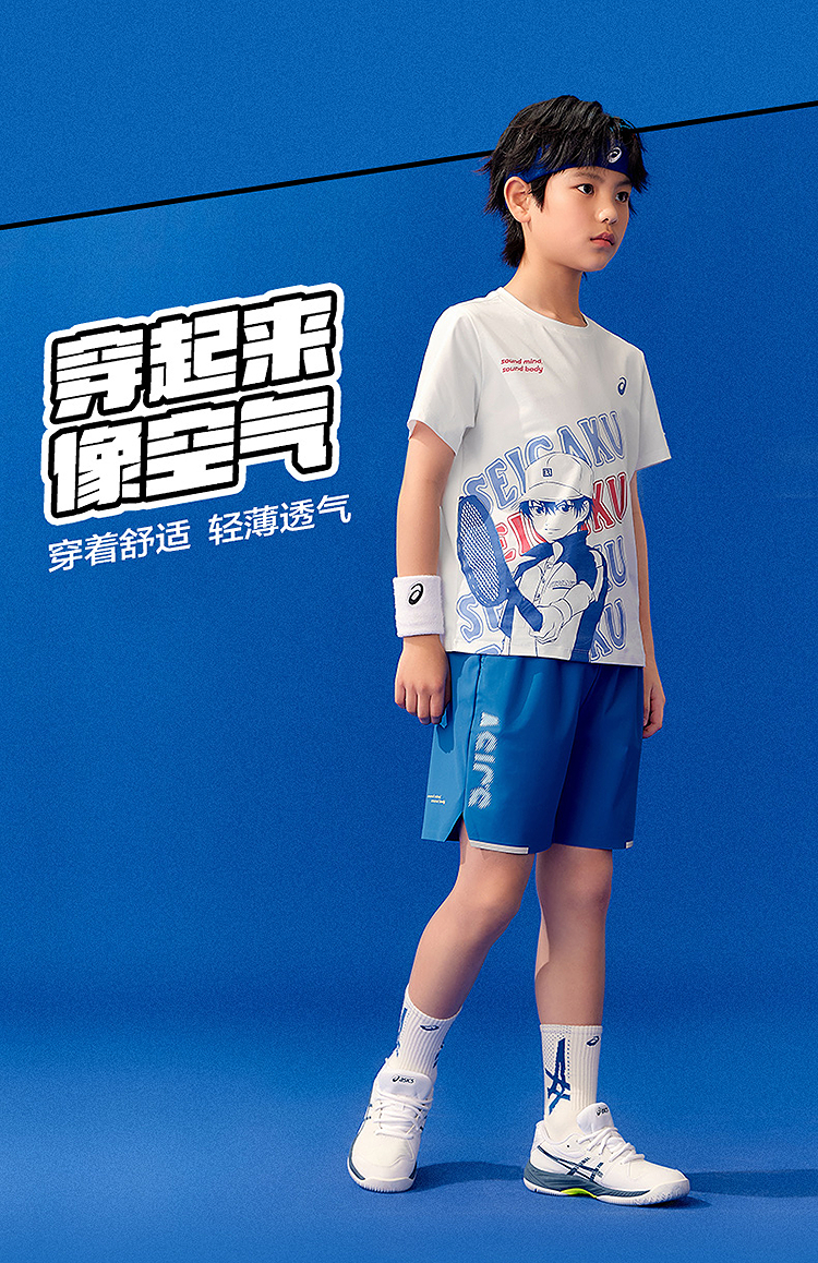 【新网球王子联名】亚瑟士童装25年夏季新款吸湿速干针织短袖T恤