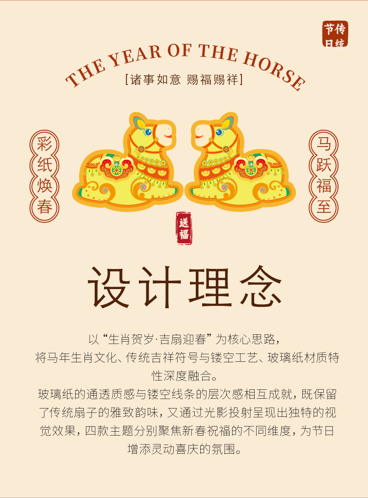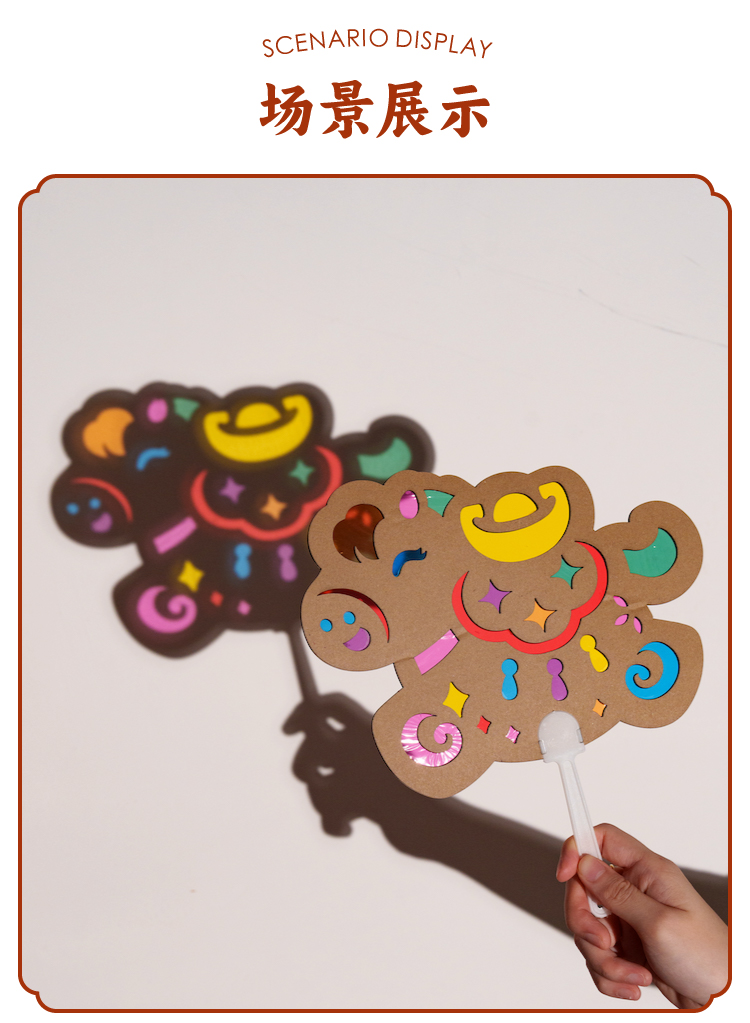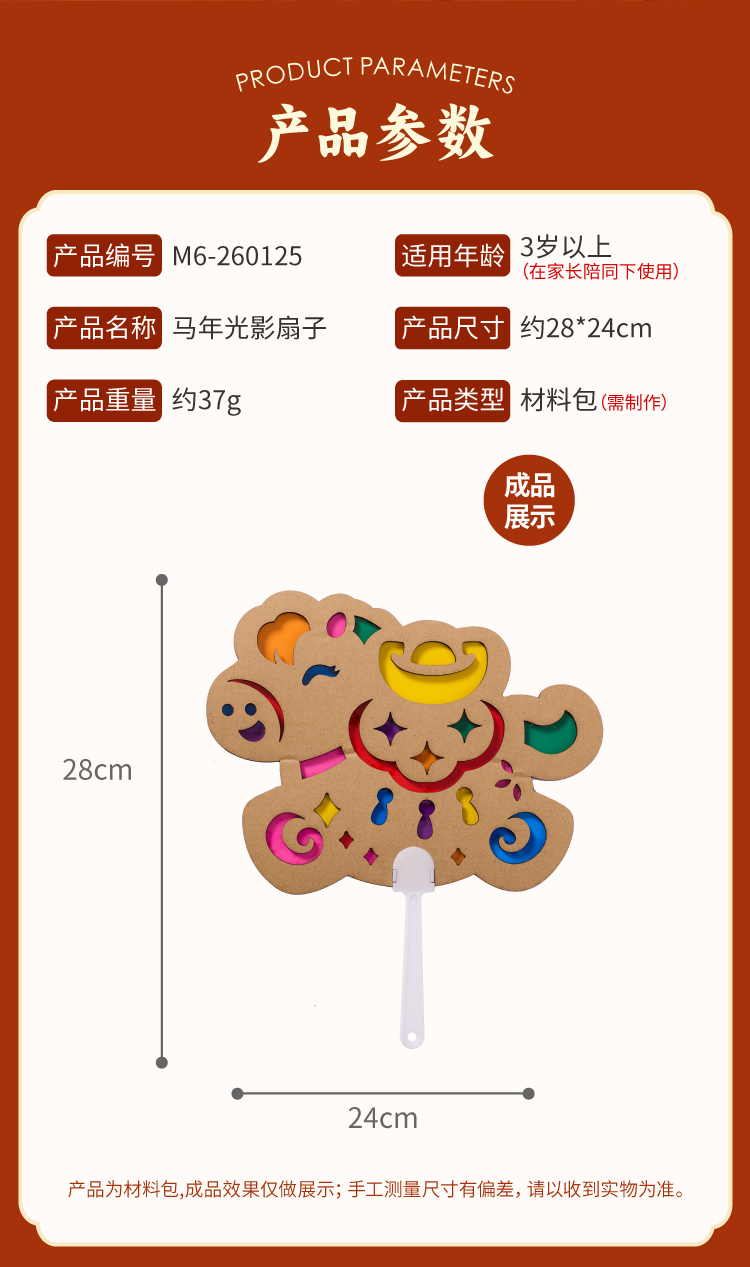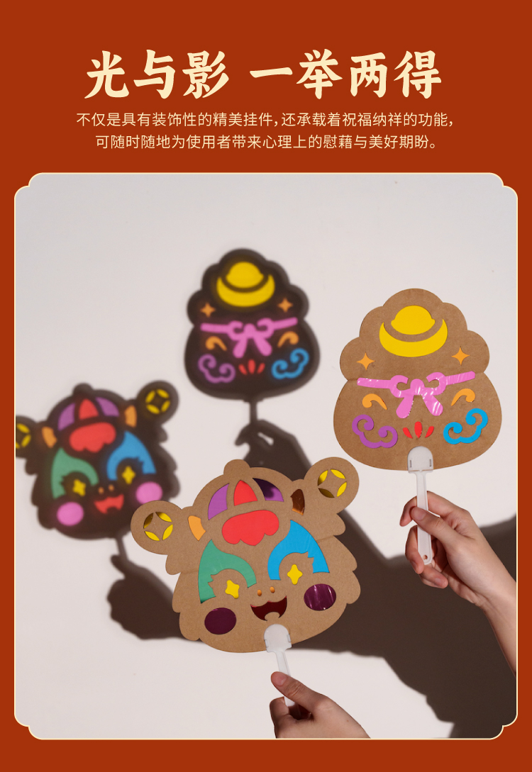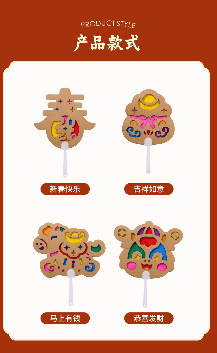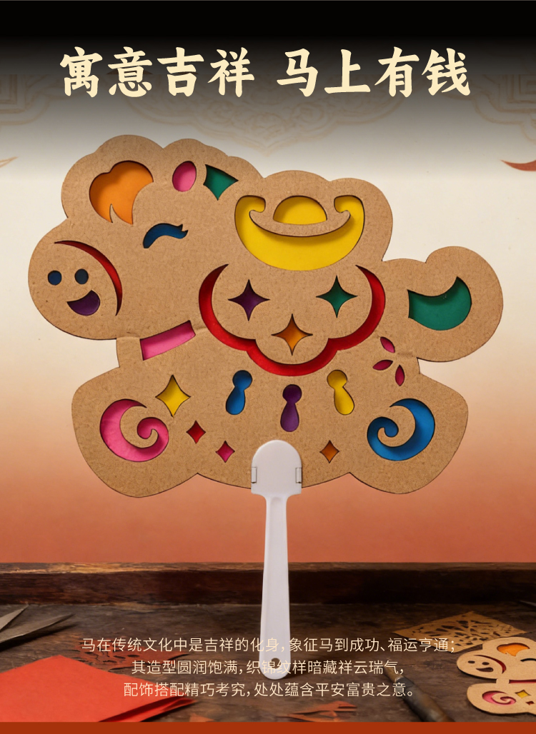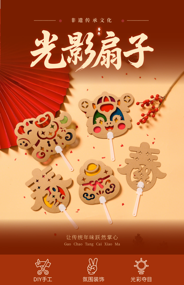 新年马年活动礼物马年光影扇子儿童制作材料包幼儿园小马春字福袋
