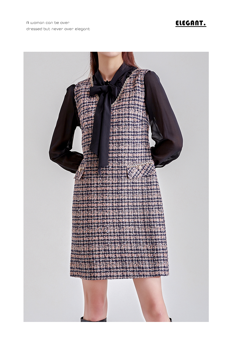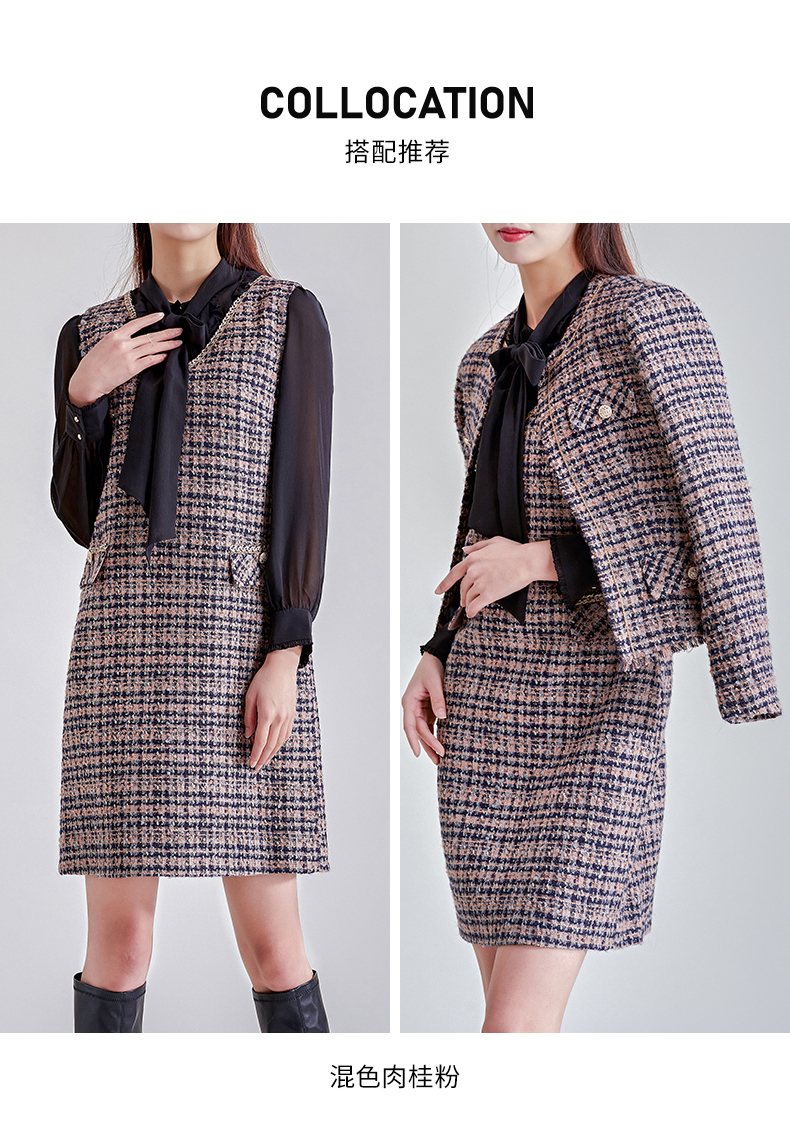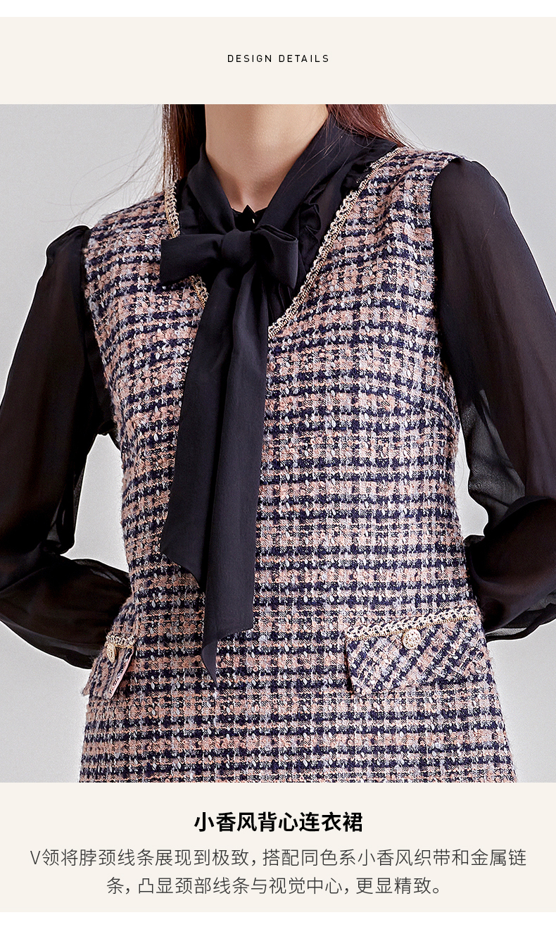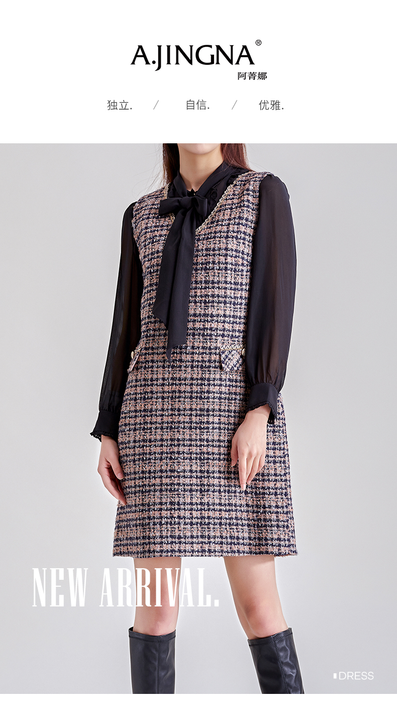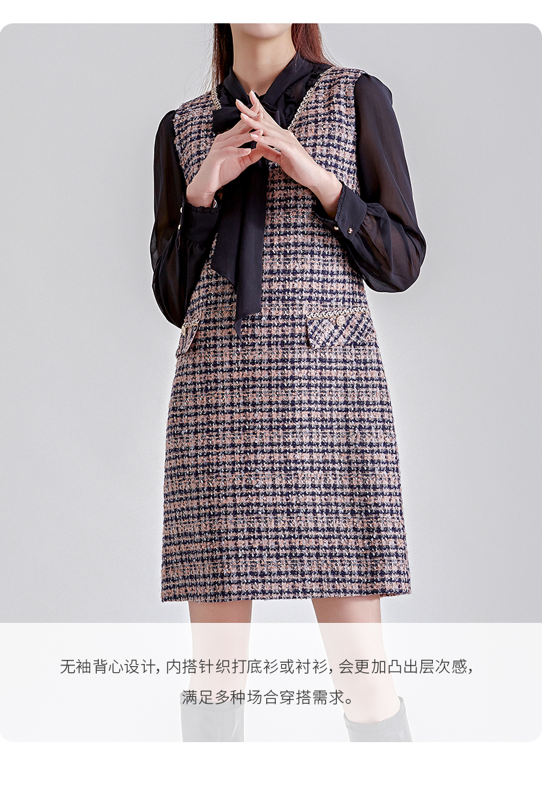 【积分兑换】阿菁娜春季新品V领直筒小香风羊毛连衣裙无袖背心马甲裙A27C103007