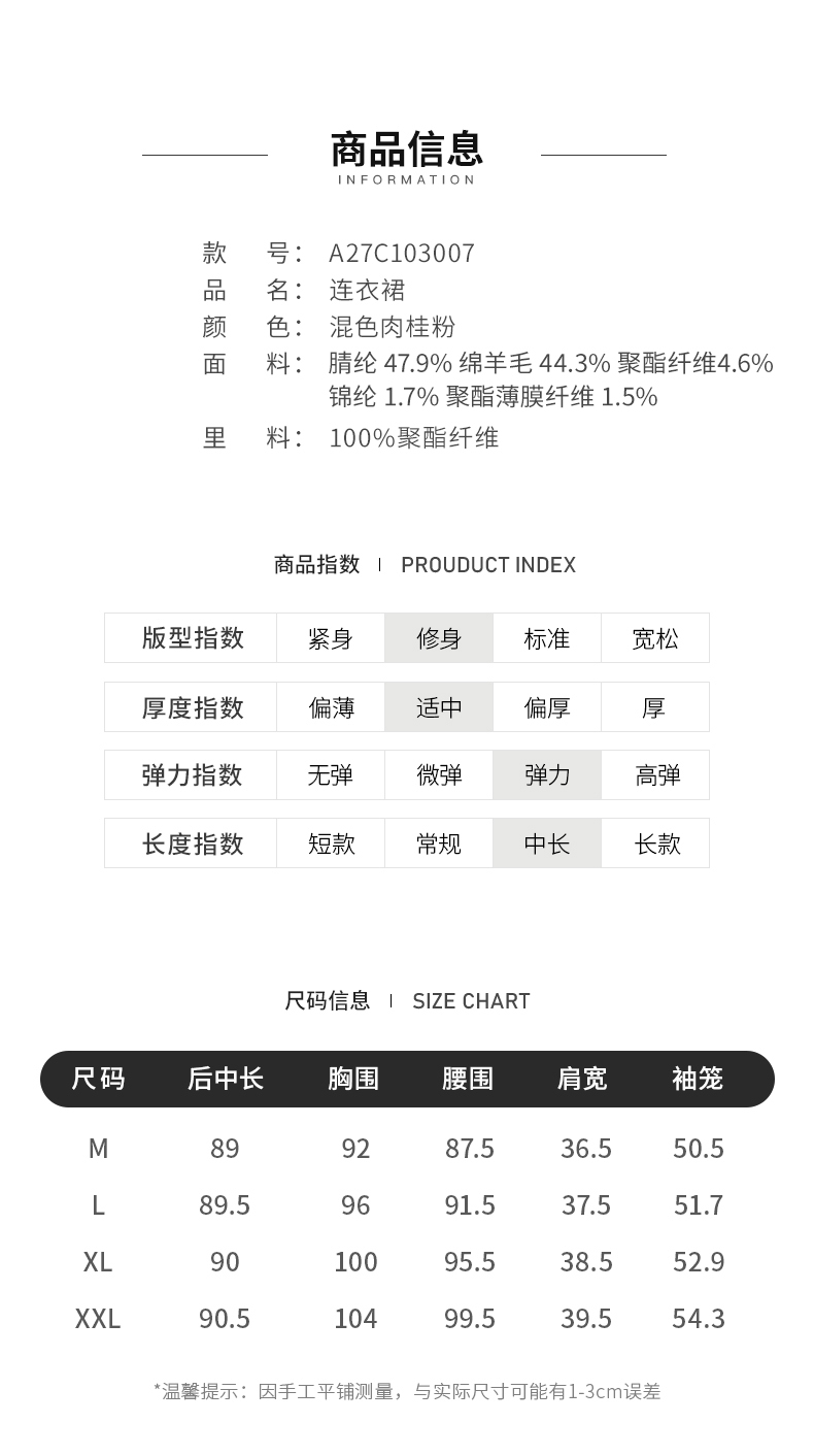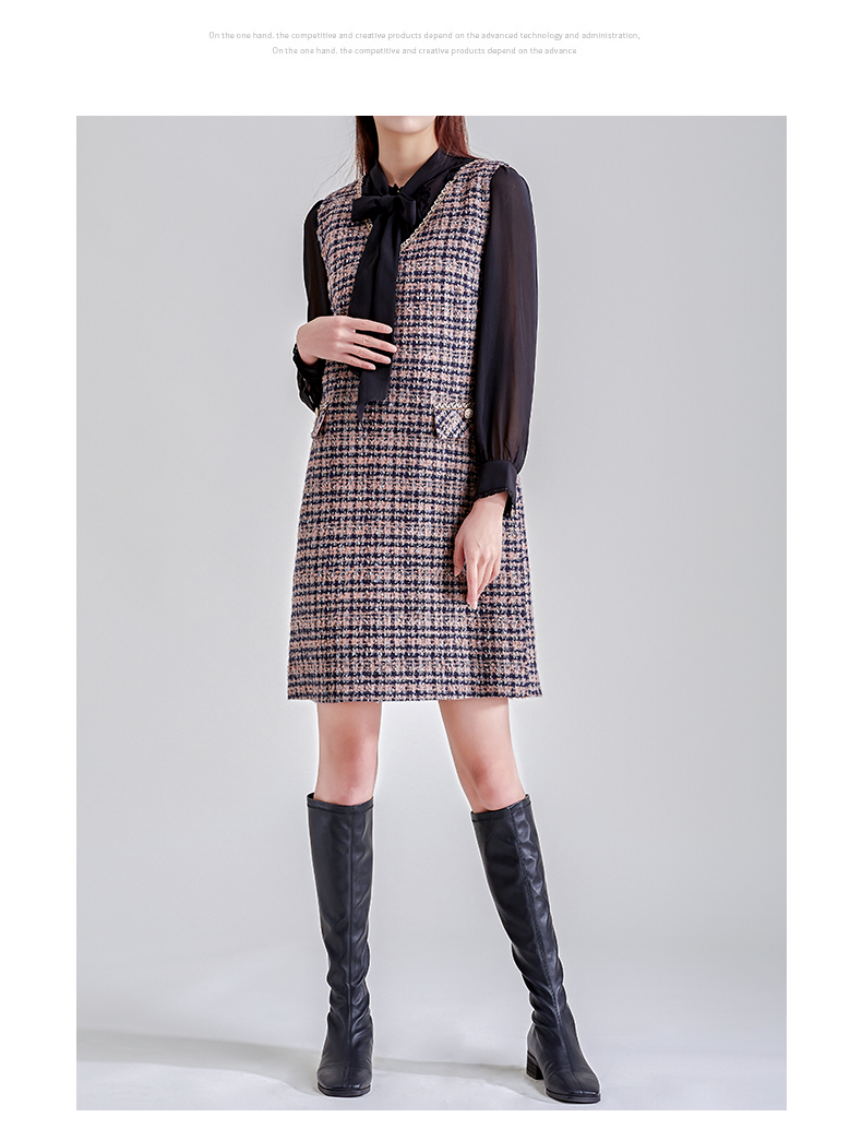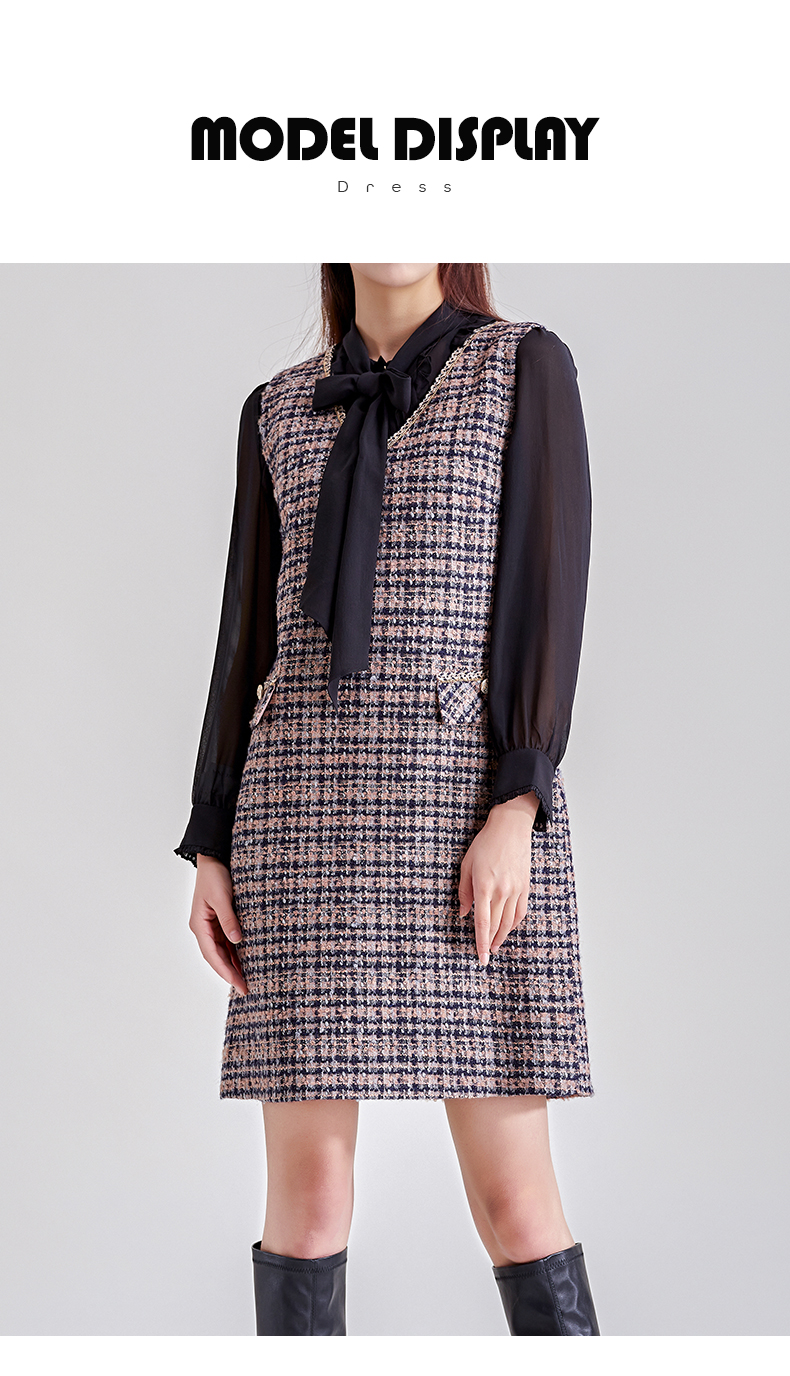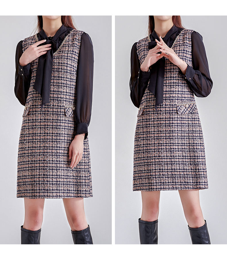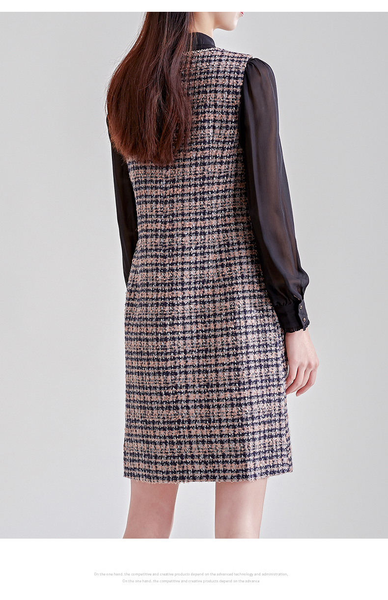 【积分兑换】阿菁娜春季新品V领直筒小香风羊毛连衣裙无袖背心马甲裙A27C103007