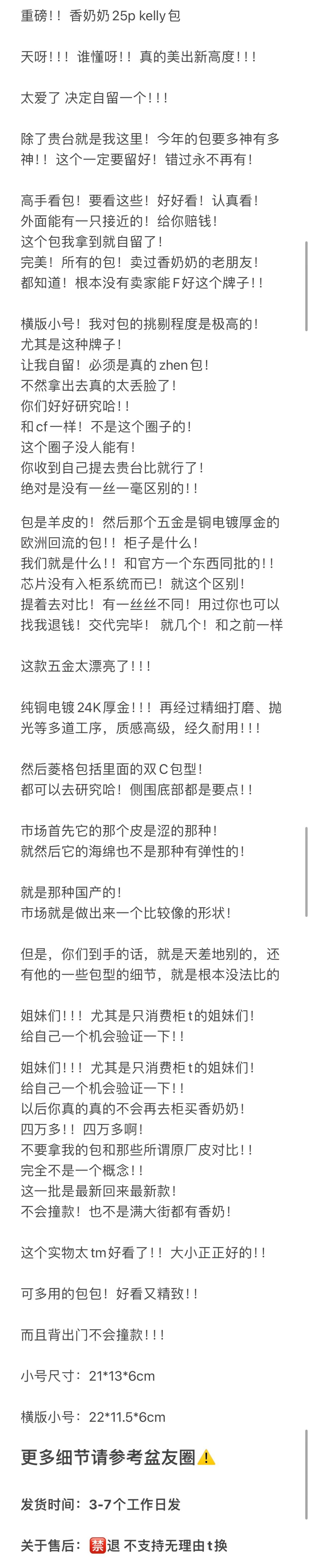 重磅渠道 25P羊皮kelly手提包 横版小号/中号 进口羊皮链条斜挎包