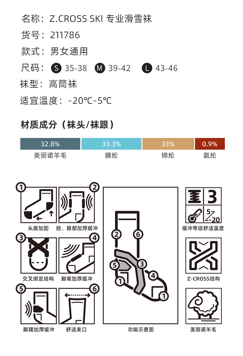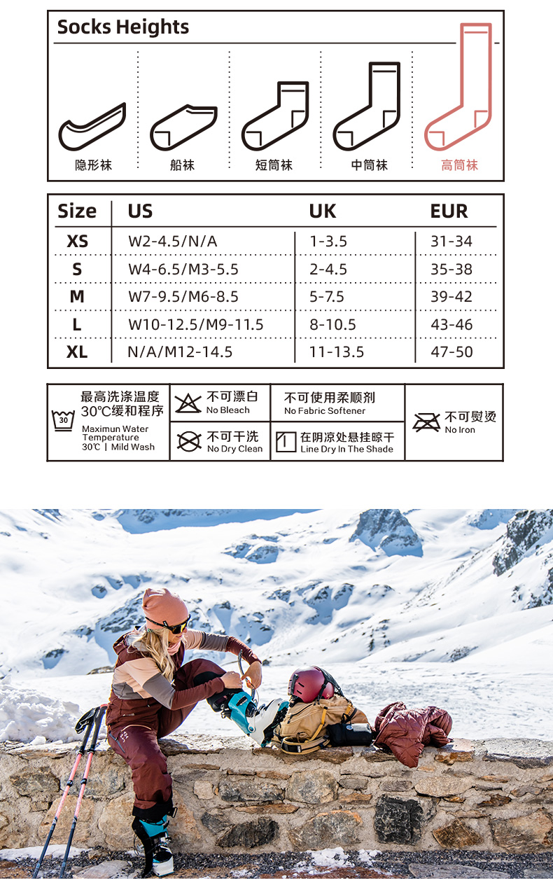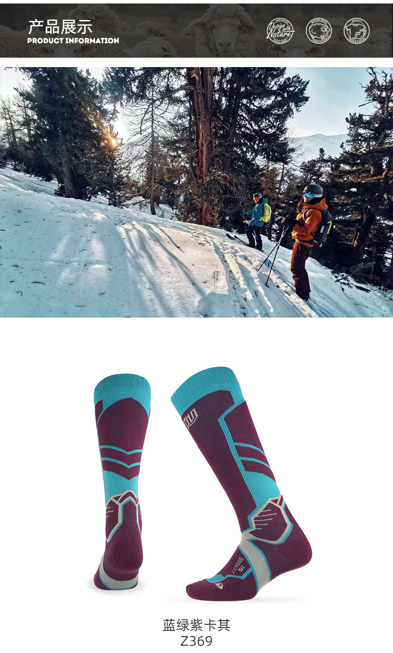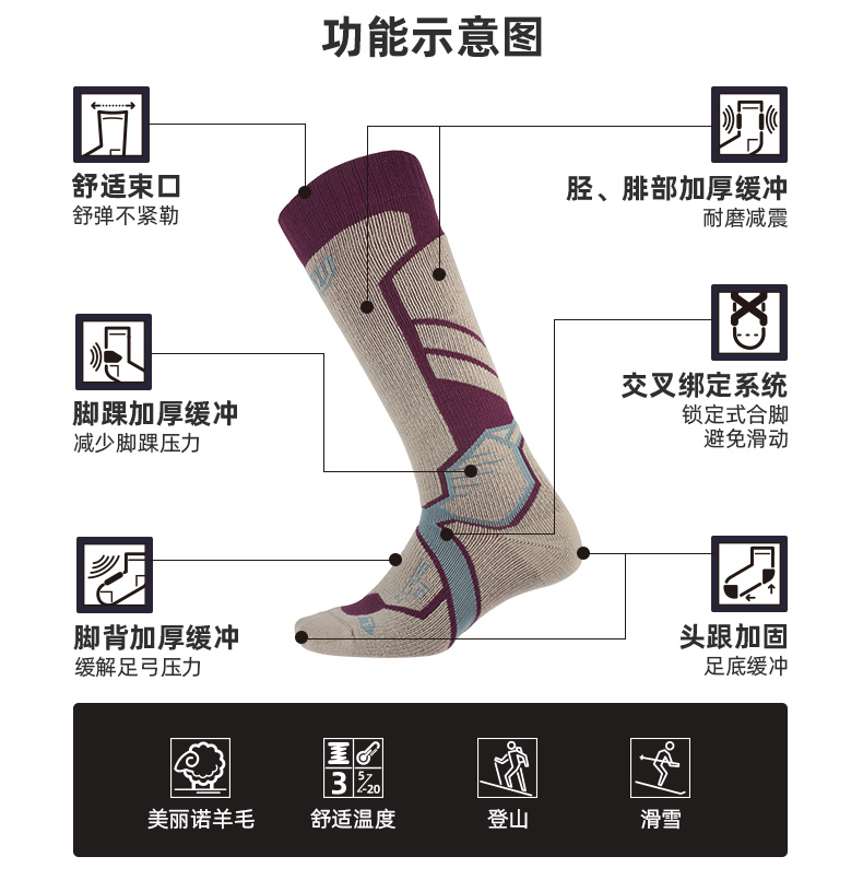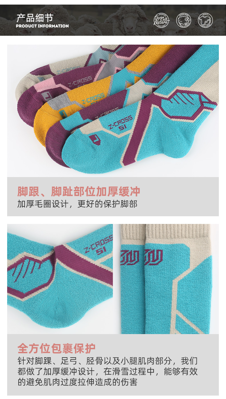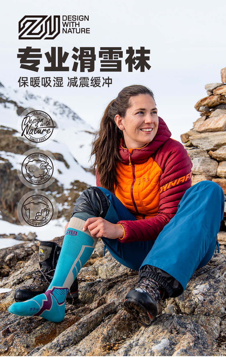 zealwood赛乐滑雪袜男女保暖美丽诺羊毛长筒高筒毛巾底专业运动袜