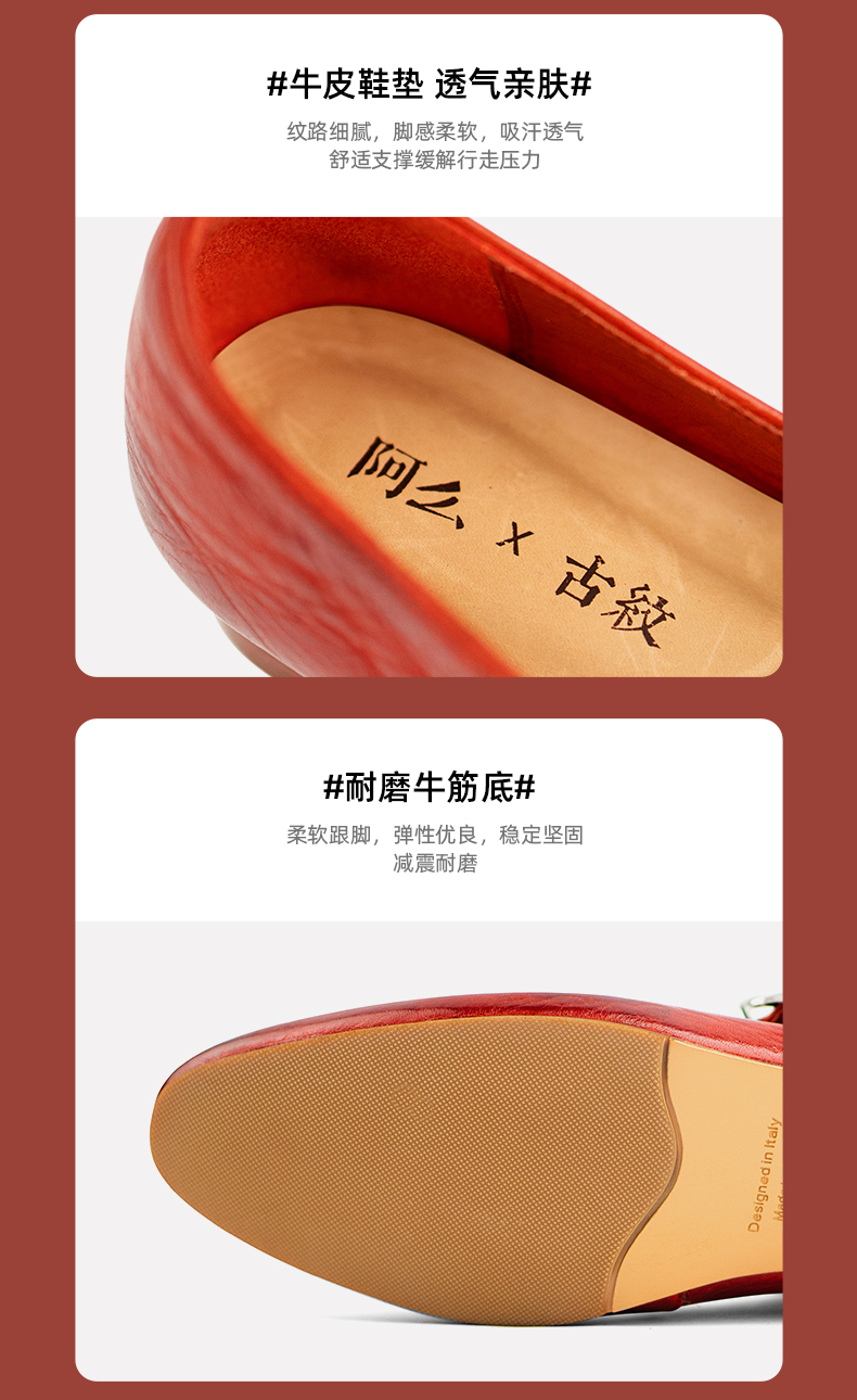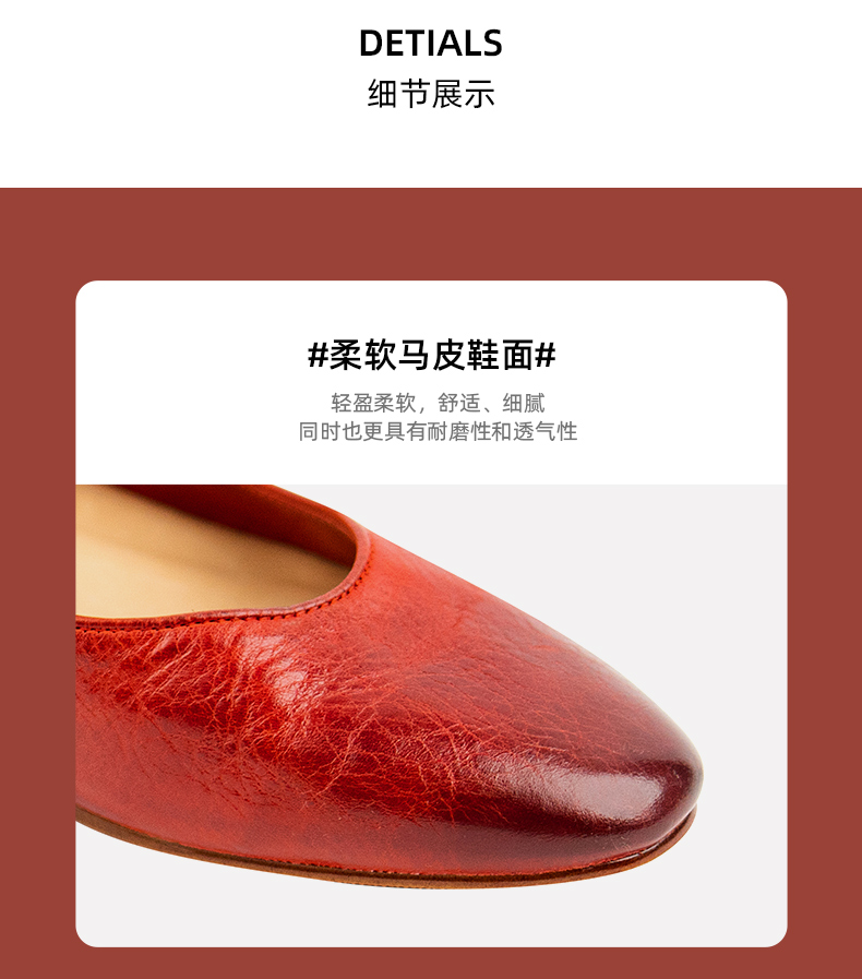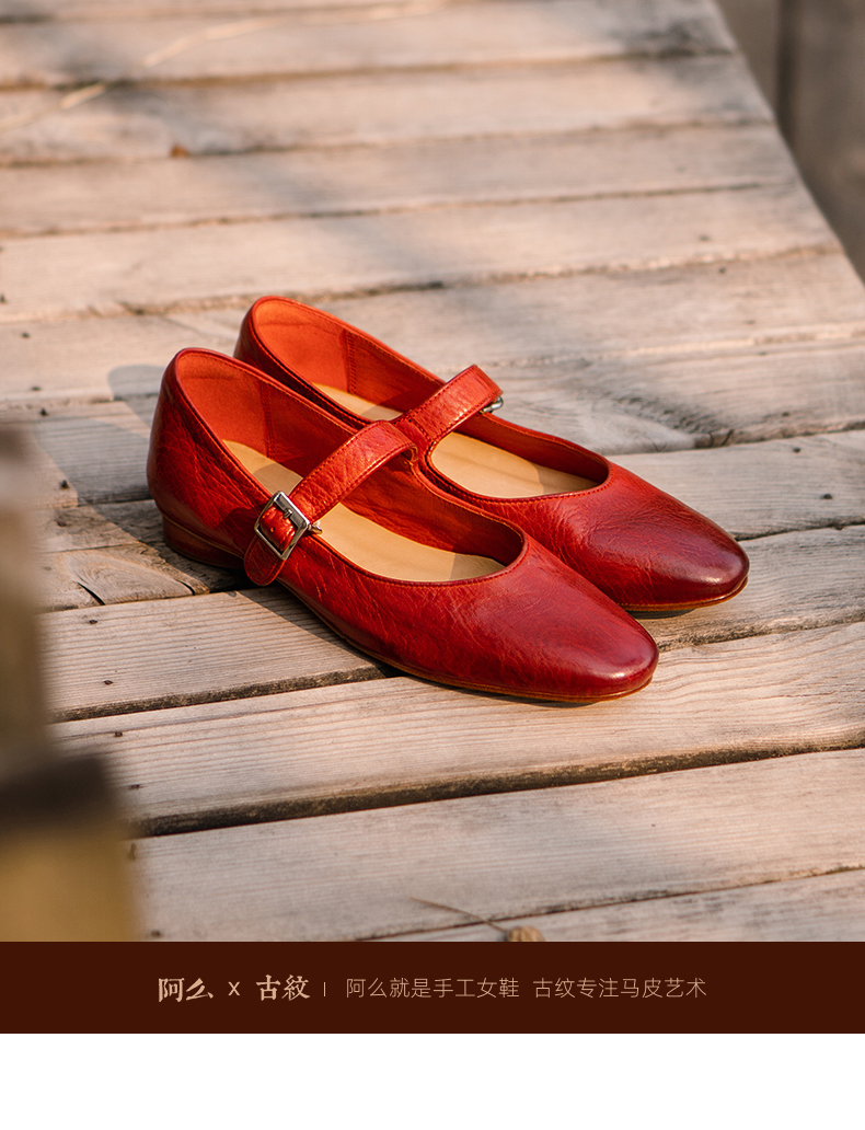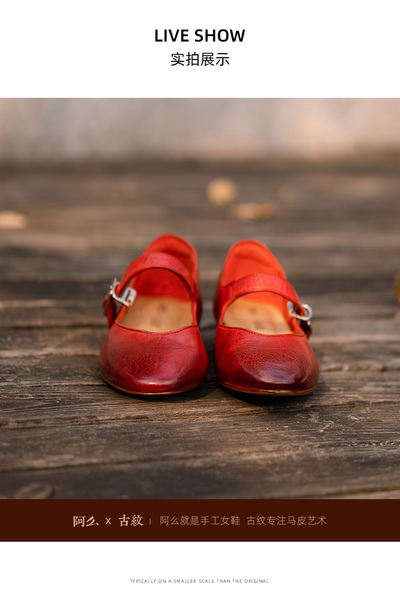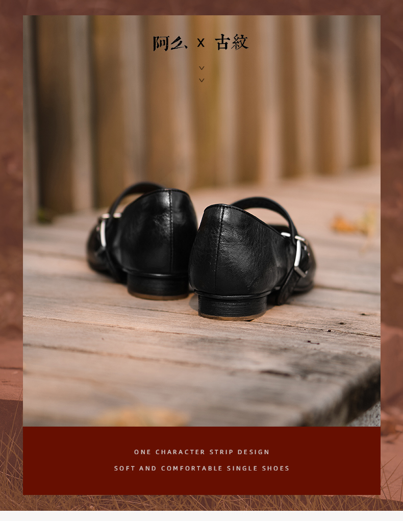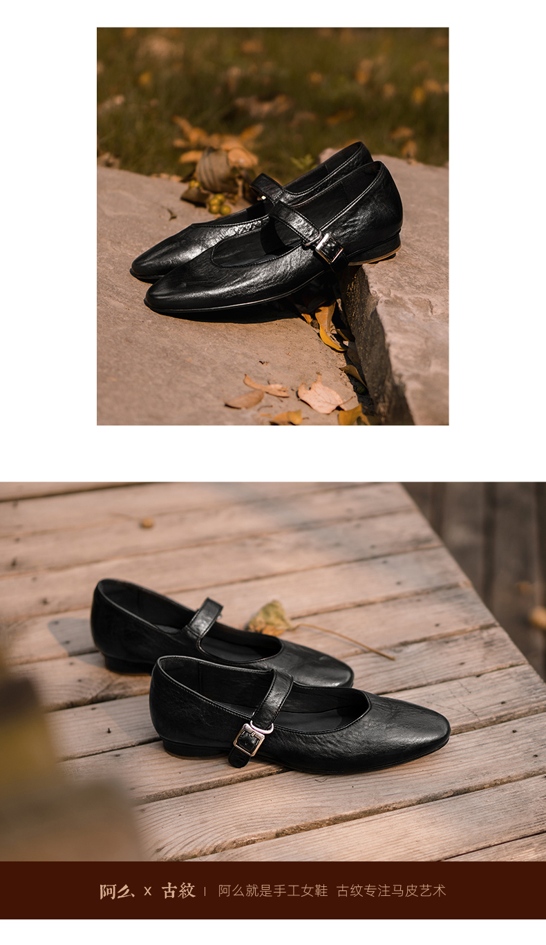 【阿么古纹马皮鞋】复古质感一字带浅口单鞋浅口百搭玛丽珍鞋子1CM