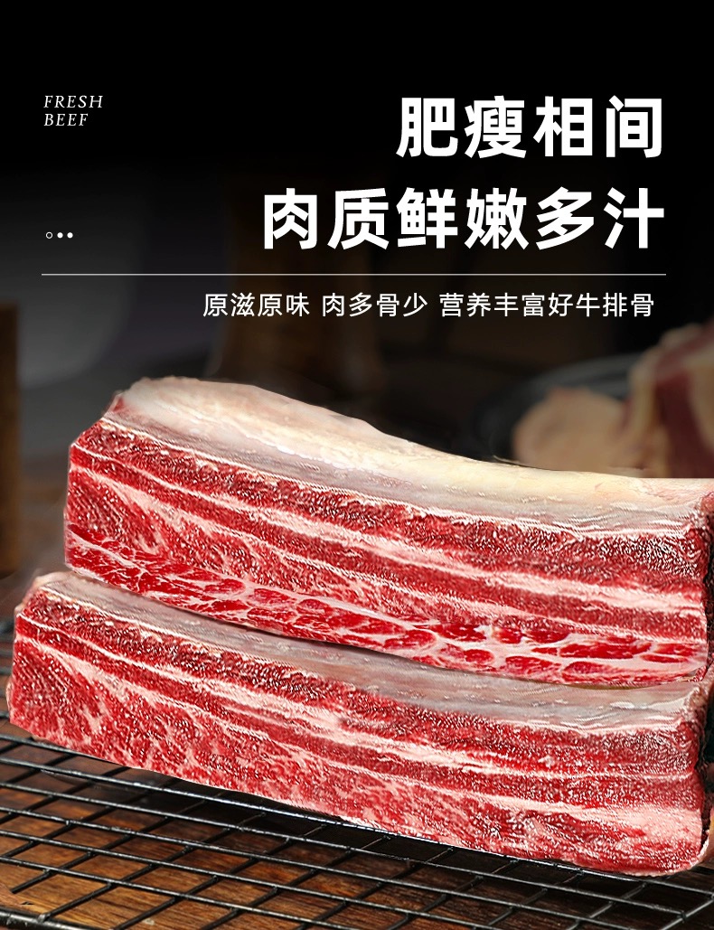 精选草原散养原切四肋牛排2500g家用炖煮食材