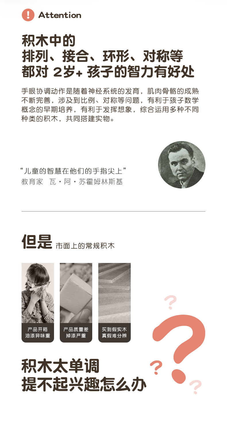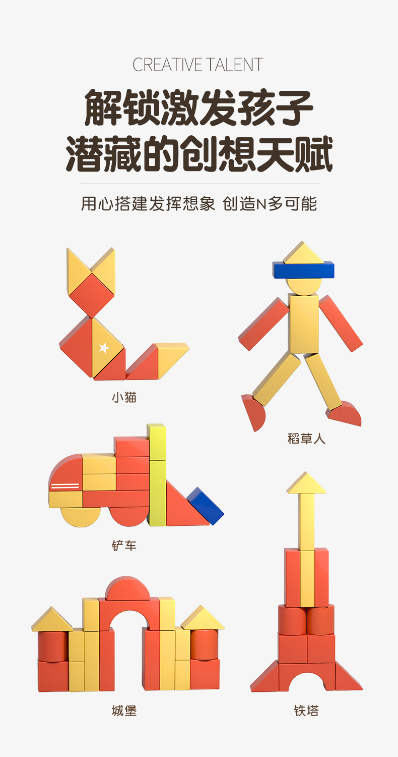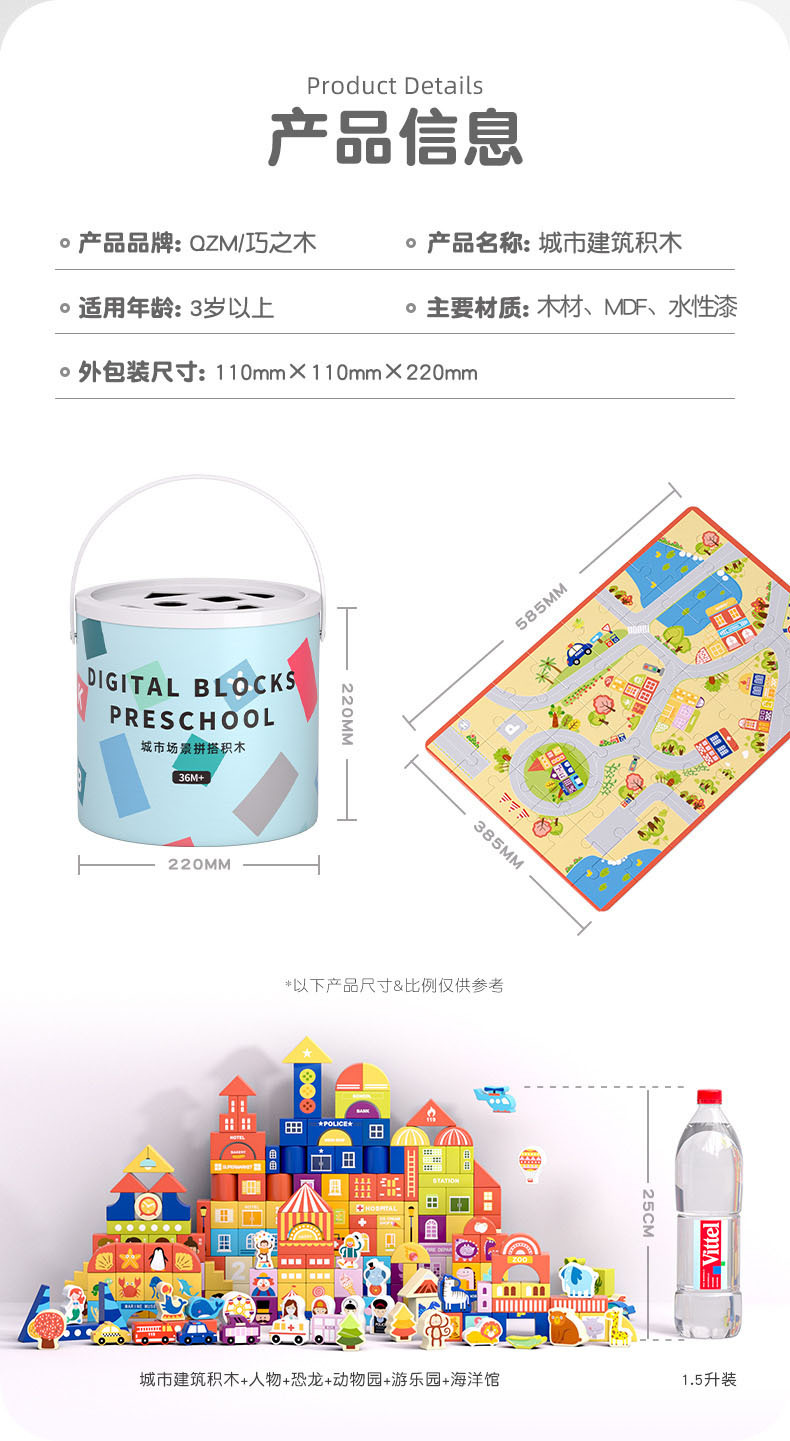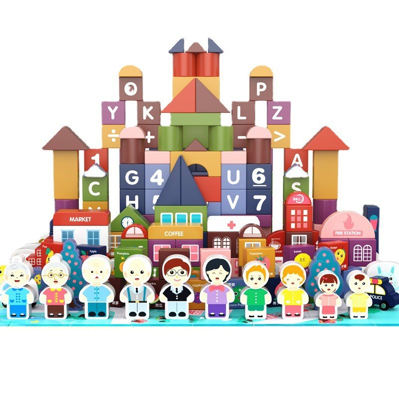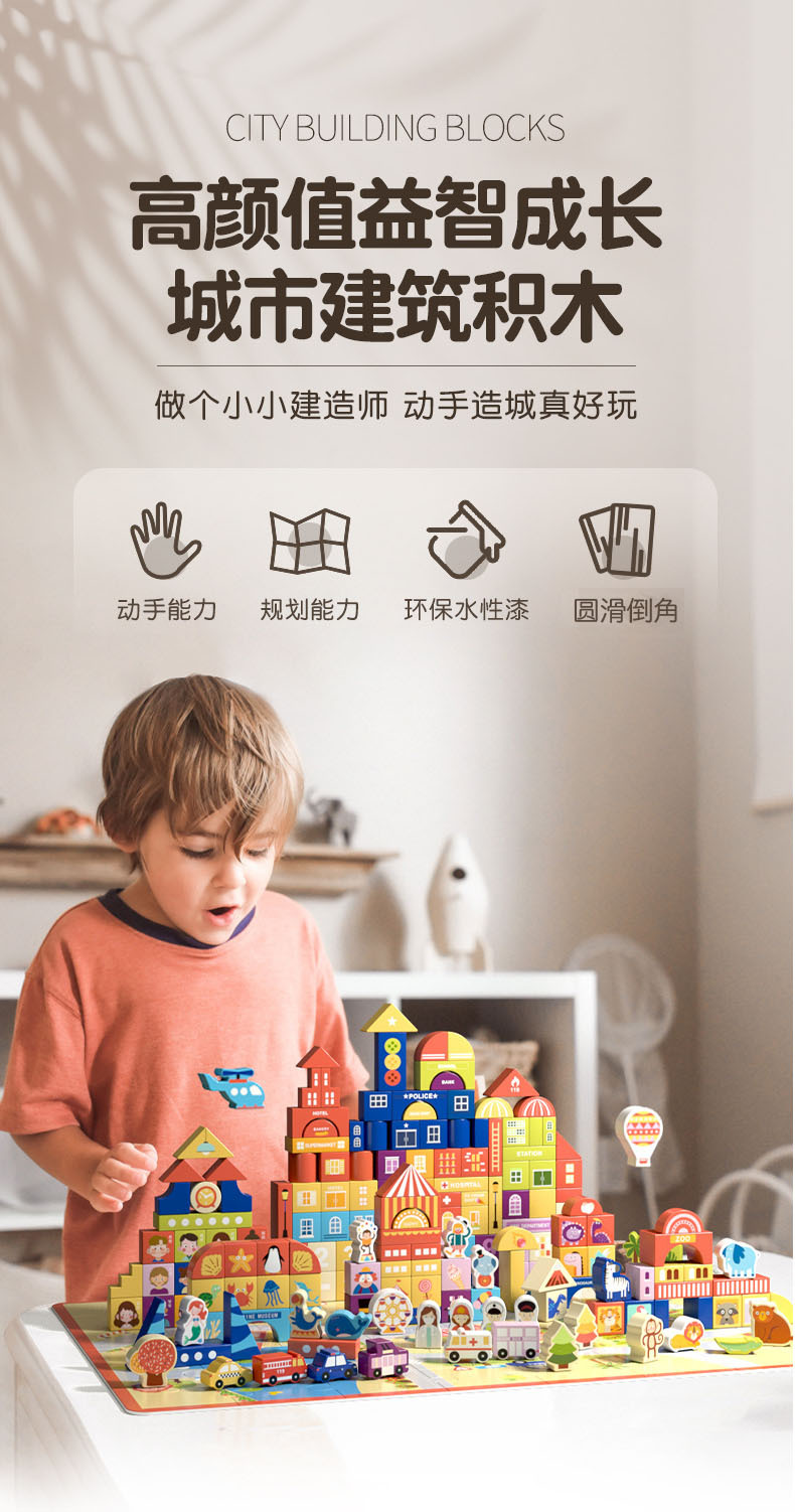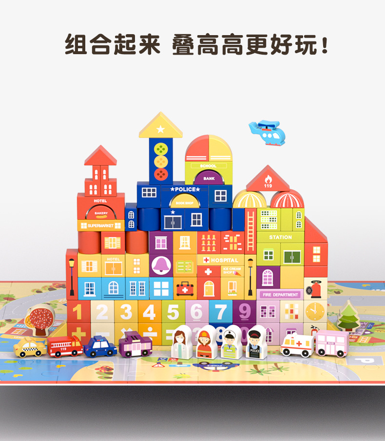 【积木萌趣乐园】儿童积木拼装宝宝拼图木头益智力开发玩具2-4女孩男孩早教环保水性漆安全无异味宝宝安全妈妈放心