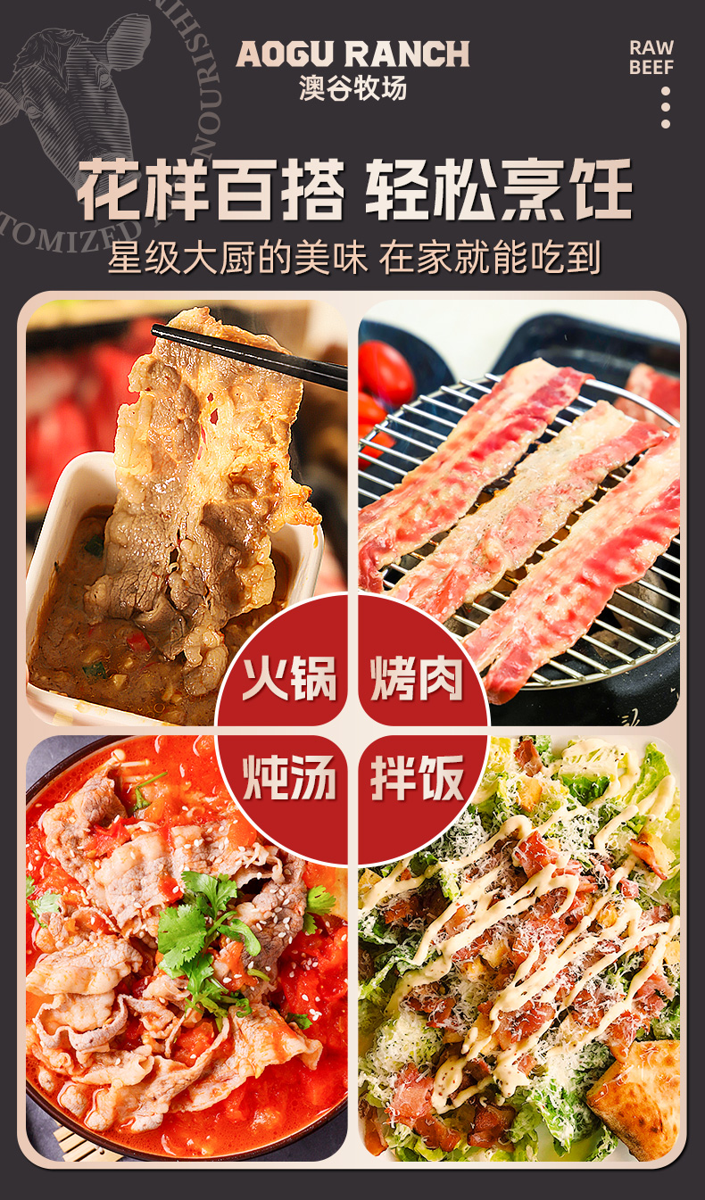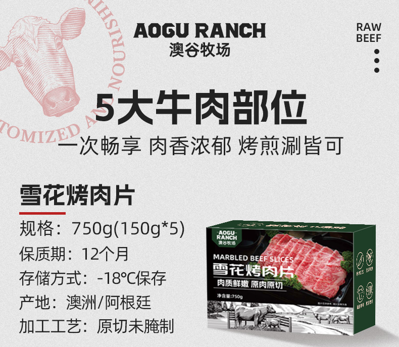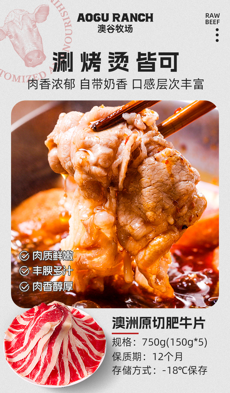 【2盒更划算】原切肥牛片火锅烤肉食材肥瘦相间 澳洲肥牛 家庭烤肉750g到手5袋