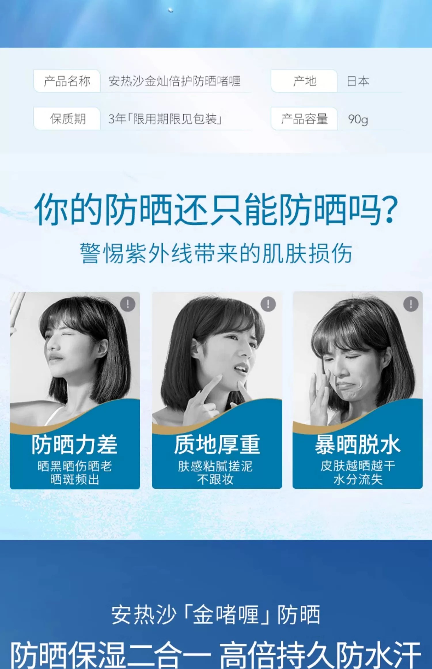 日本Shiseido/资生堂安耐晒面部专用防晒啫喱/美白防晒啫喱/儿童专用90g 安热沙脸部隔离防晒 防紫外线防水防汗