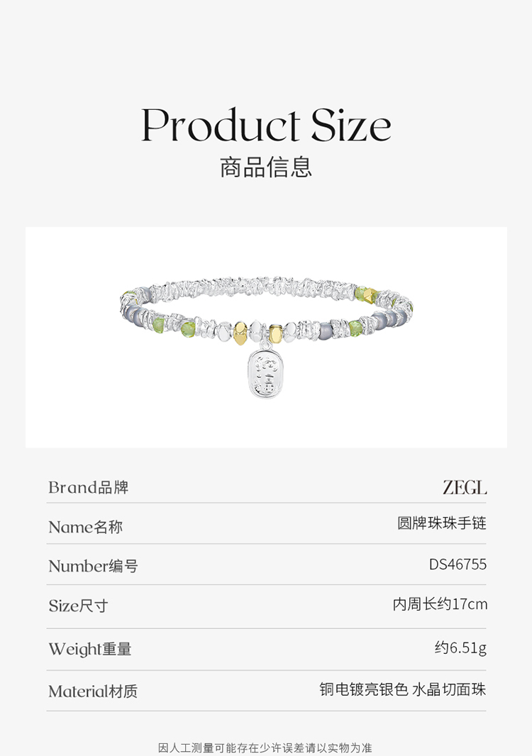 ZEGL金属碎银子手链女轻奢小众精致2023年新款潮彩色冷淡风手饰品
