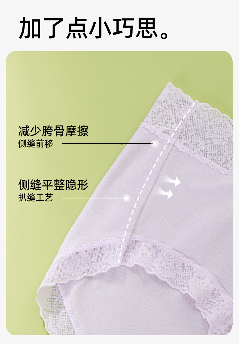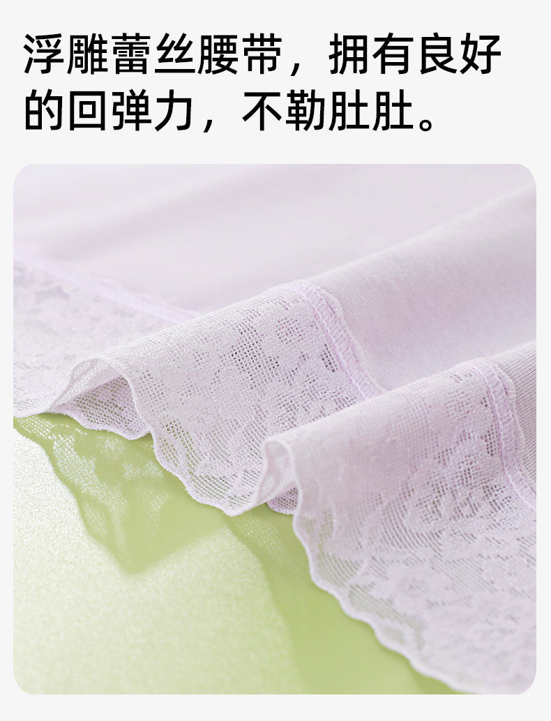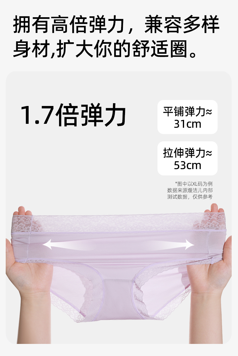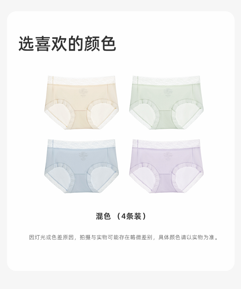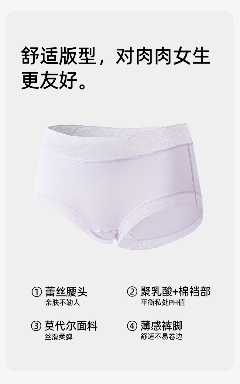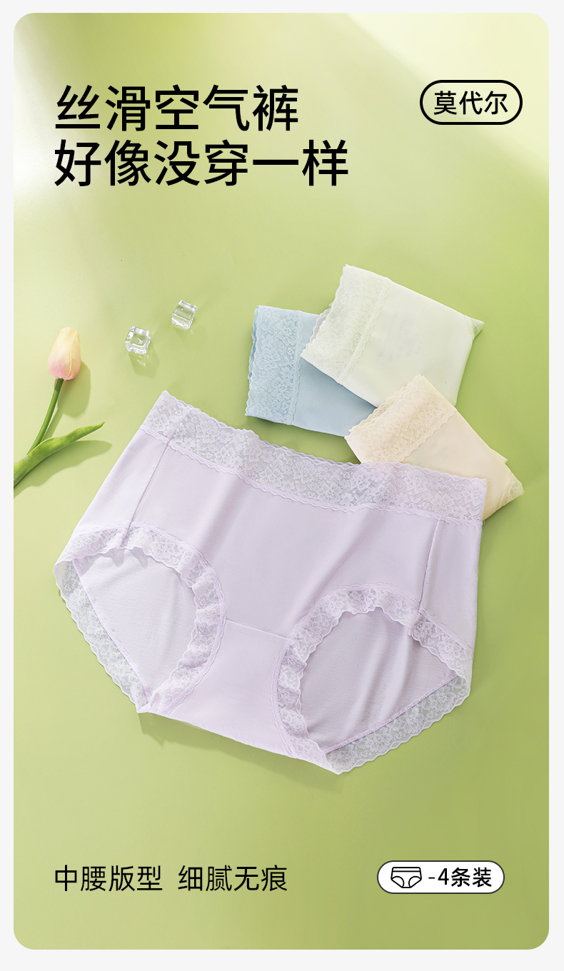 【4条装】熳洁儿 莫代尔女士大码内裤亲肤裸感中腰包臀含聚乳酸蕾丝腰带25262130