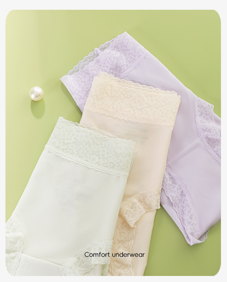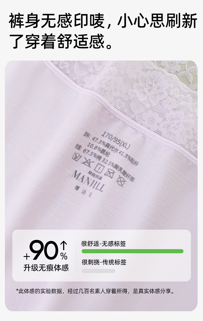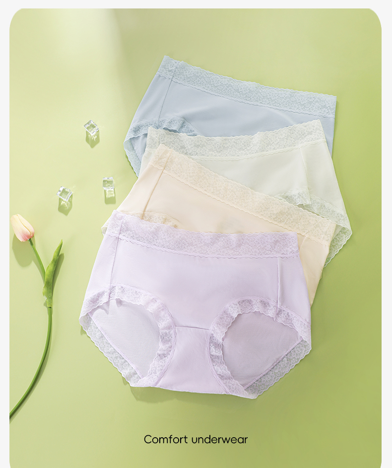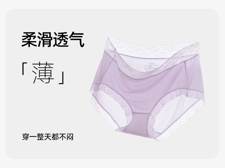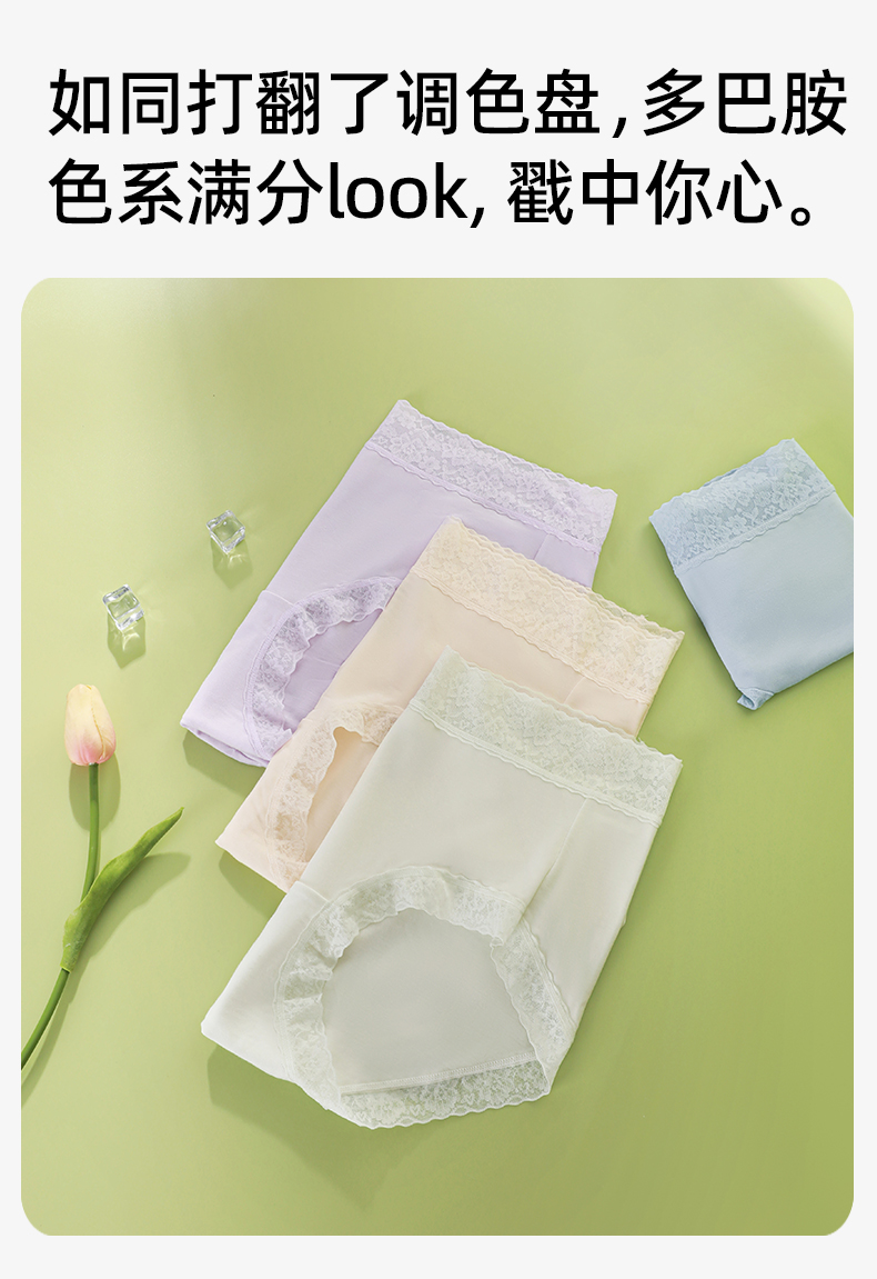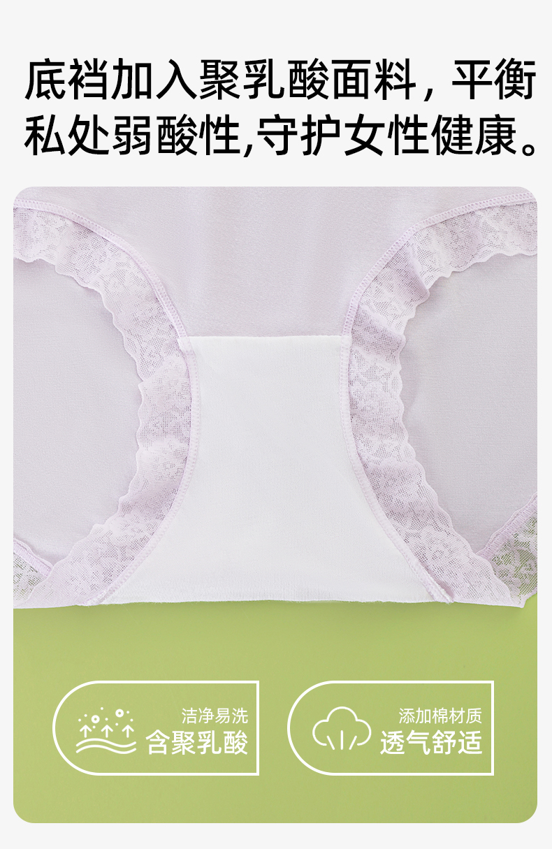【4条装】熳洁儿 莫代尔女士大码内裤亲肤裸感中腰包臀含聚乳酸蕾丝腰带25262130