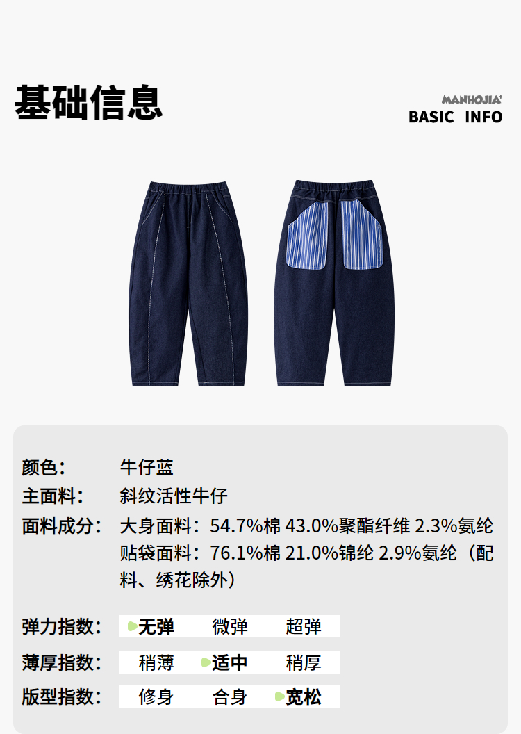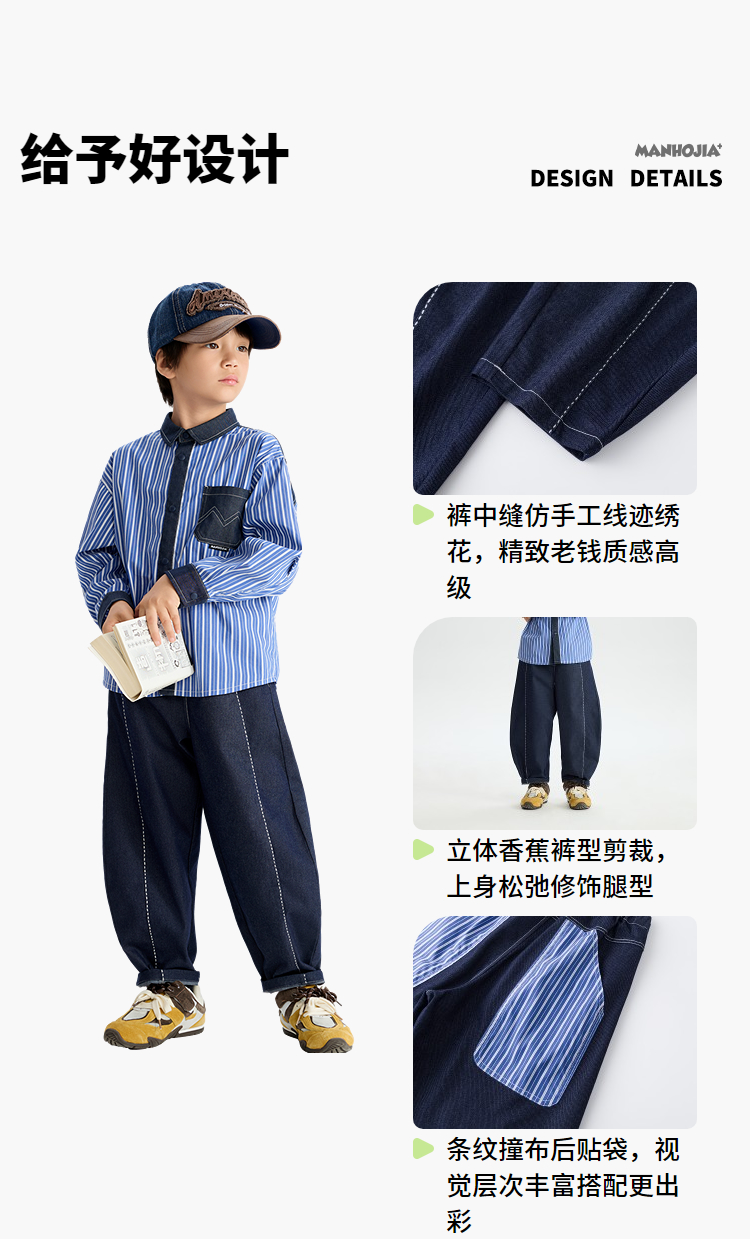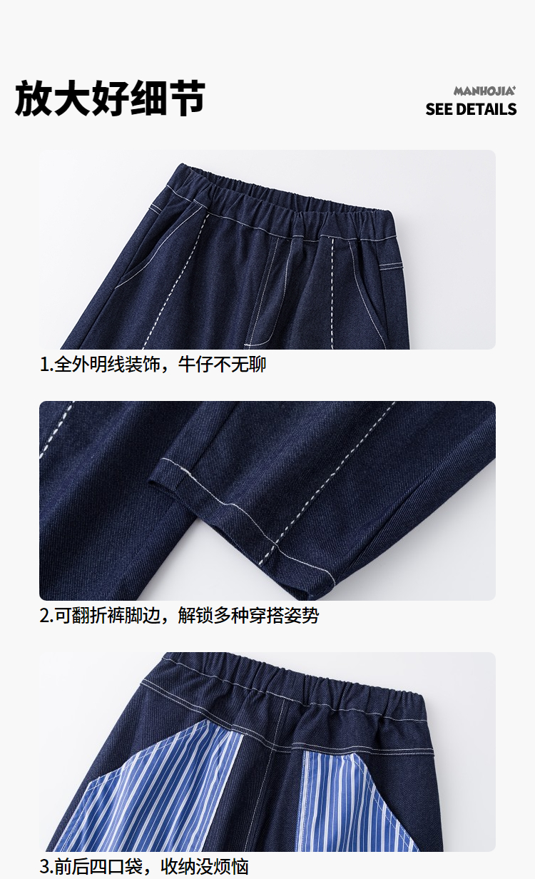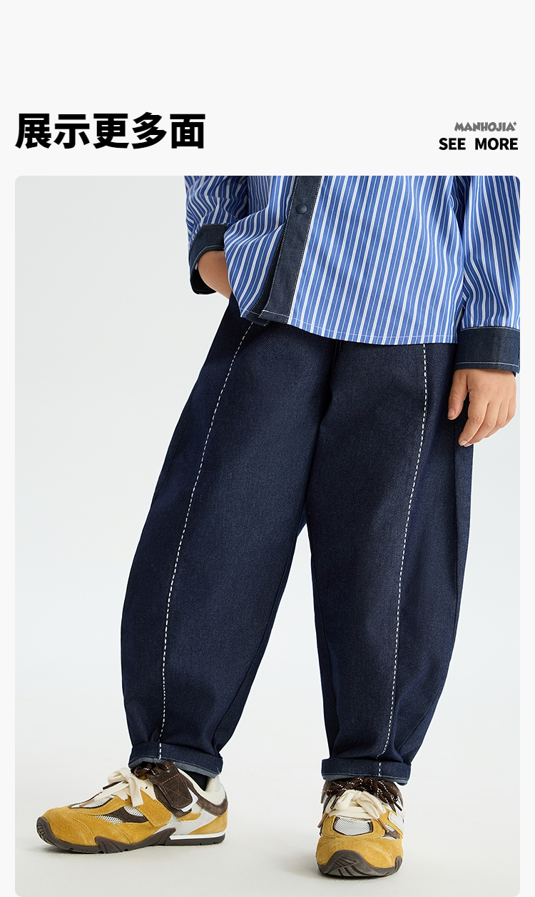 漫画家【氧气蓝牛仔裤】老钱风精致手工缝线不褪色牛仔儿童香蕉裤
