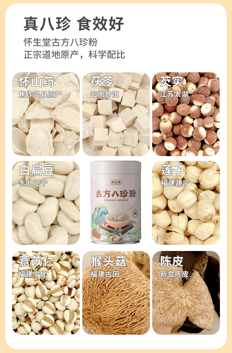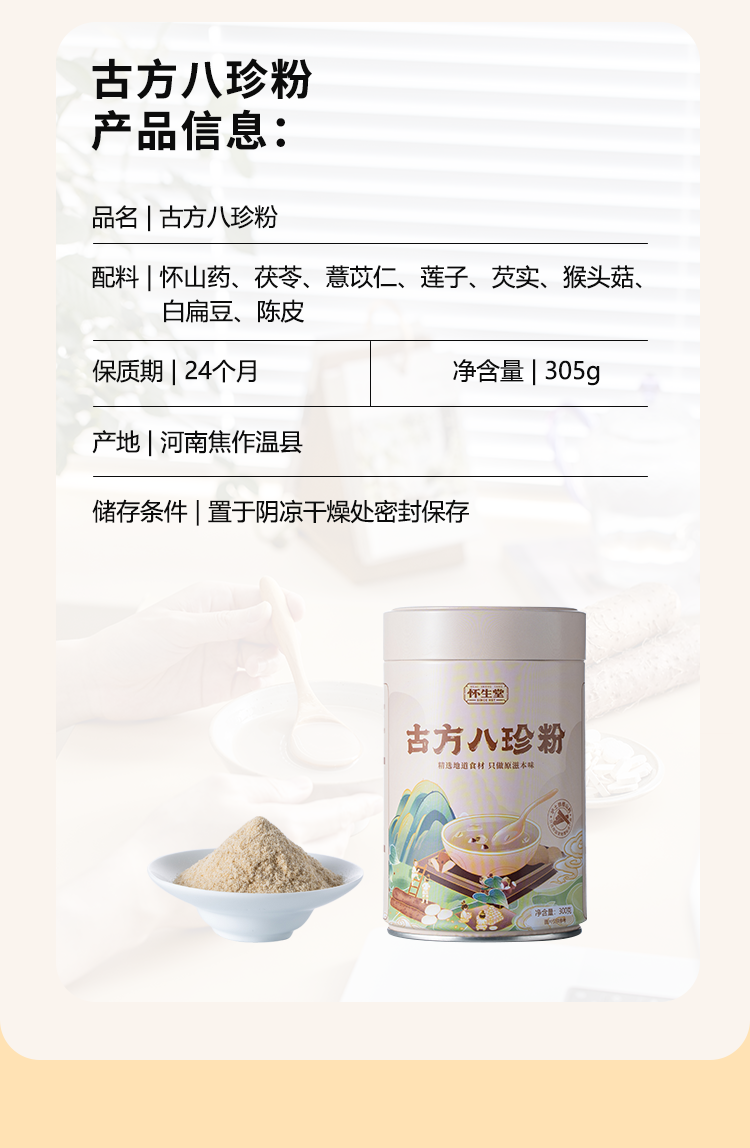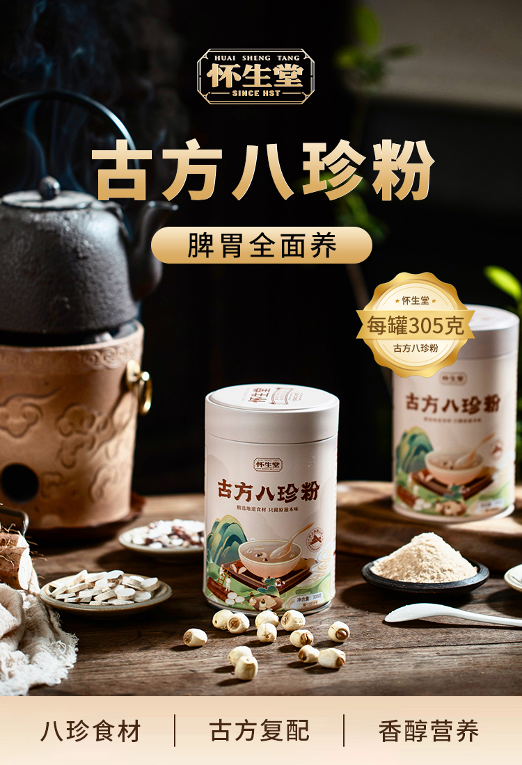 【怀生堂】古方八珍粉罐装,甄选八珍食材,养脾胃!每罐305g