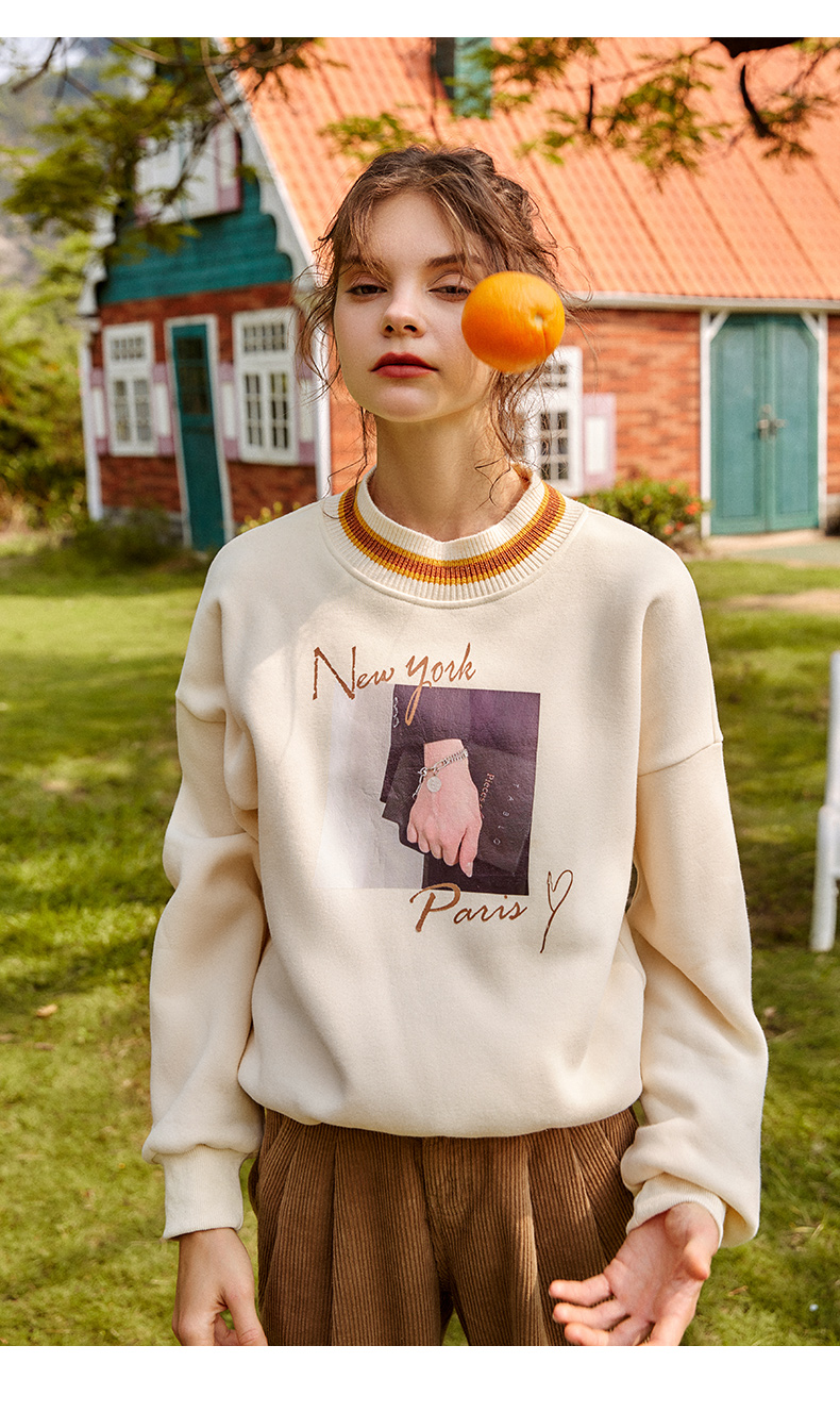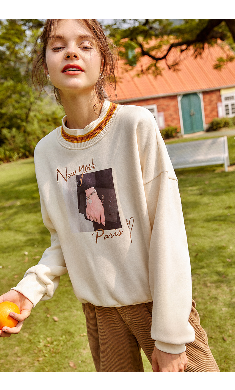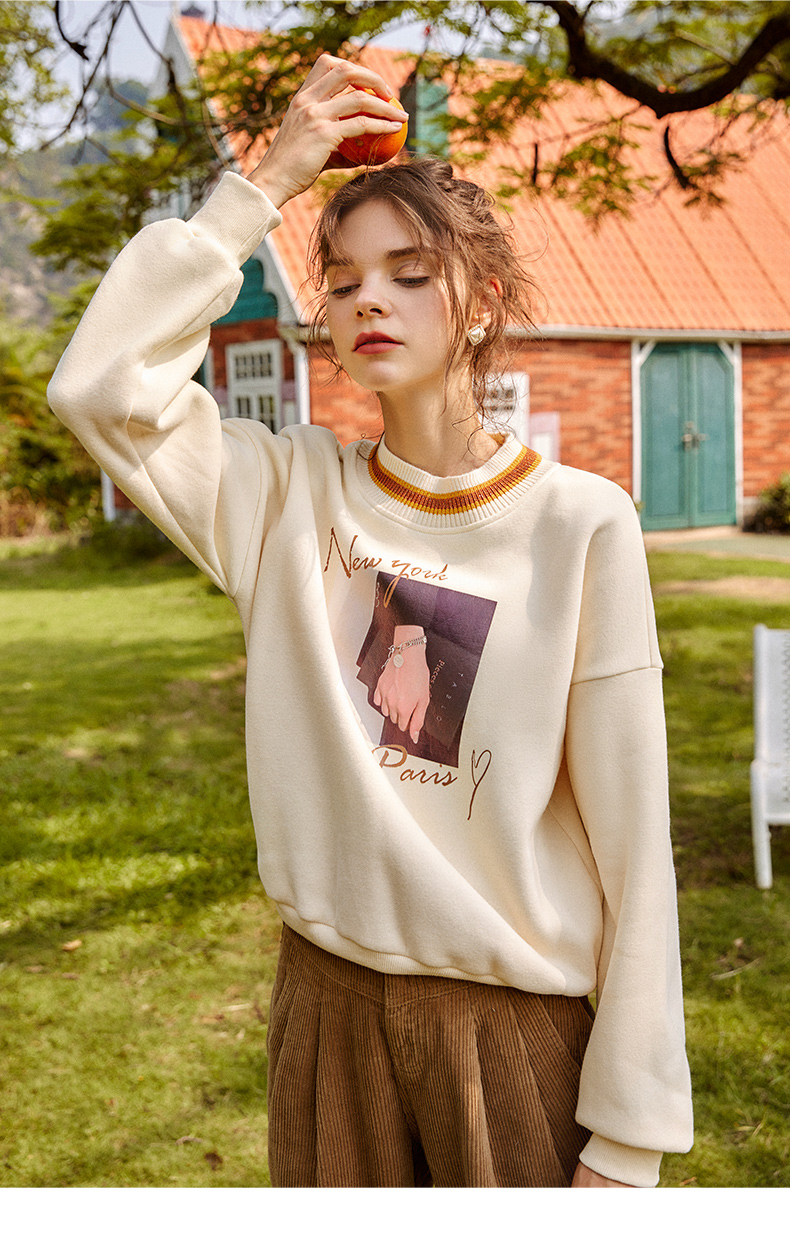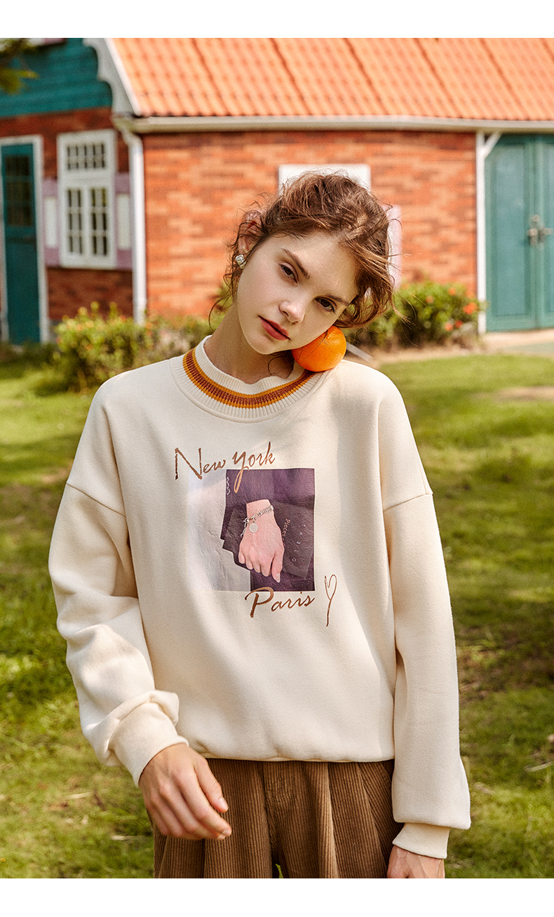 欧芮儿圆领卫衣女春季2025年新款宽松显瘦慵懒时尚减龄印花上衣