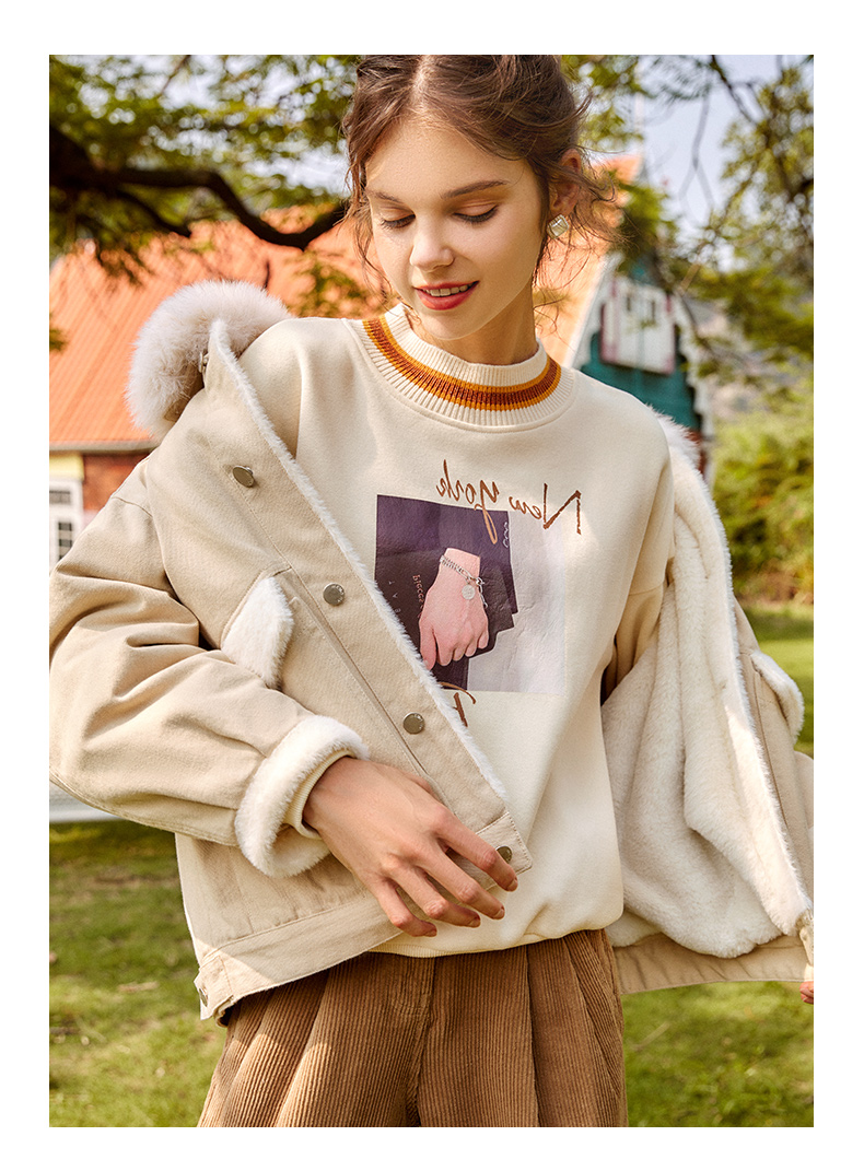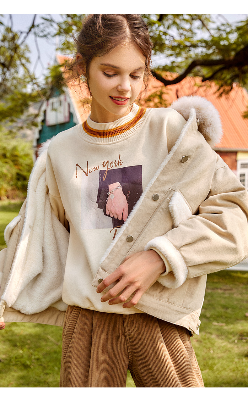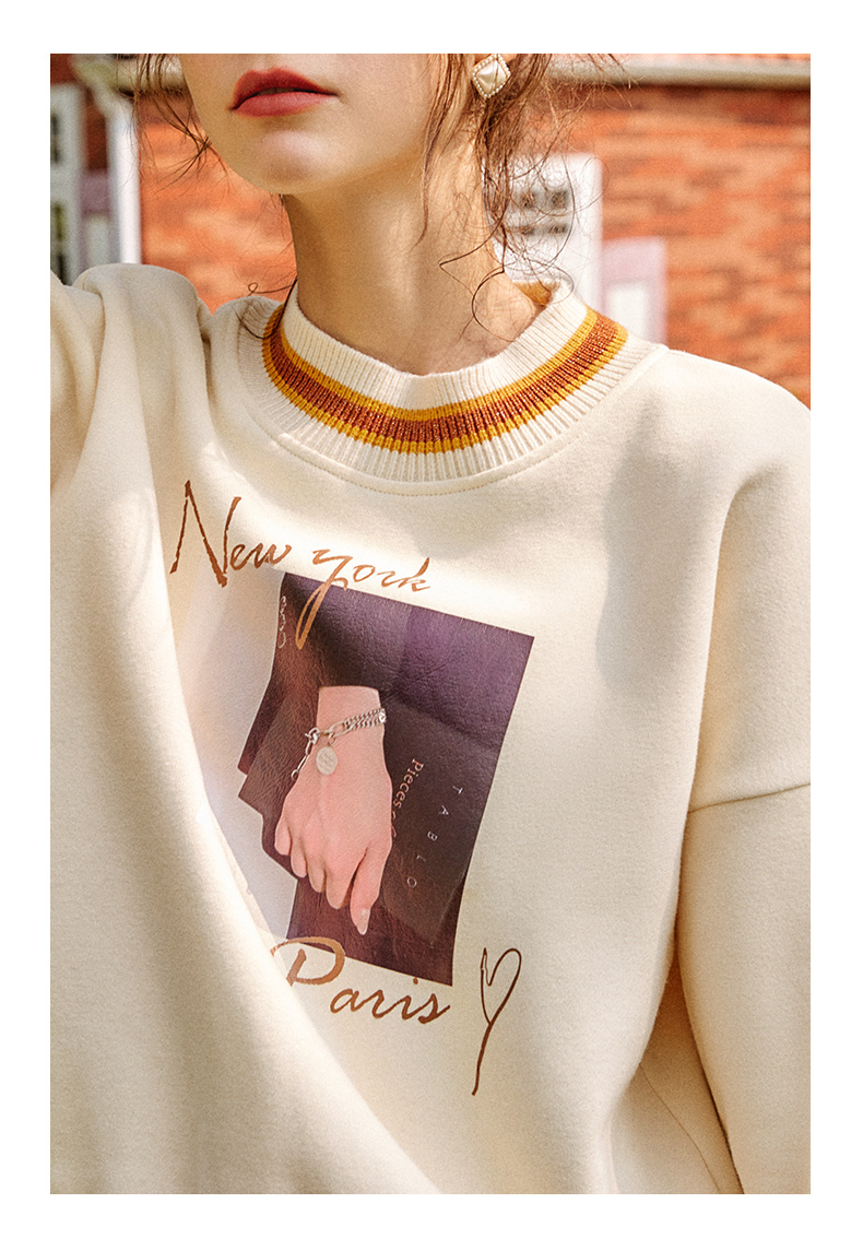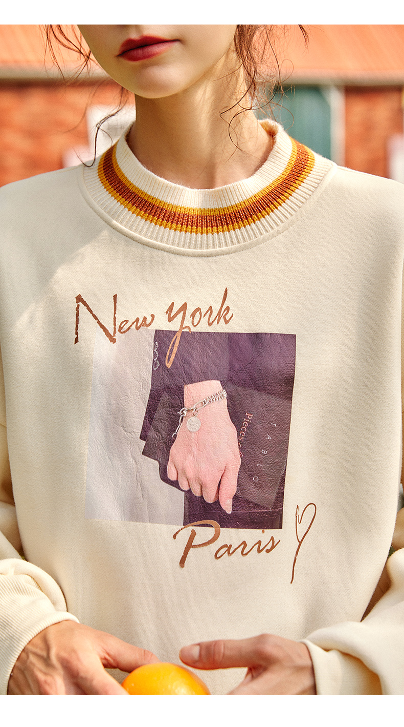 欧芮儿圆领卫衣女春季2025年新款宽松显瘦慵懒时尚减龄印花上衣