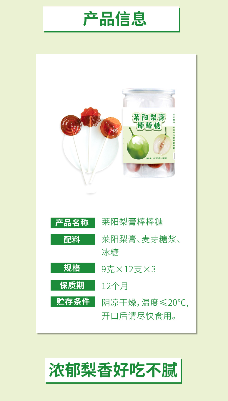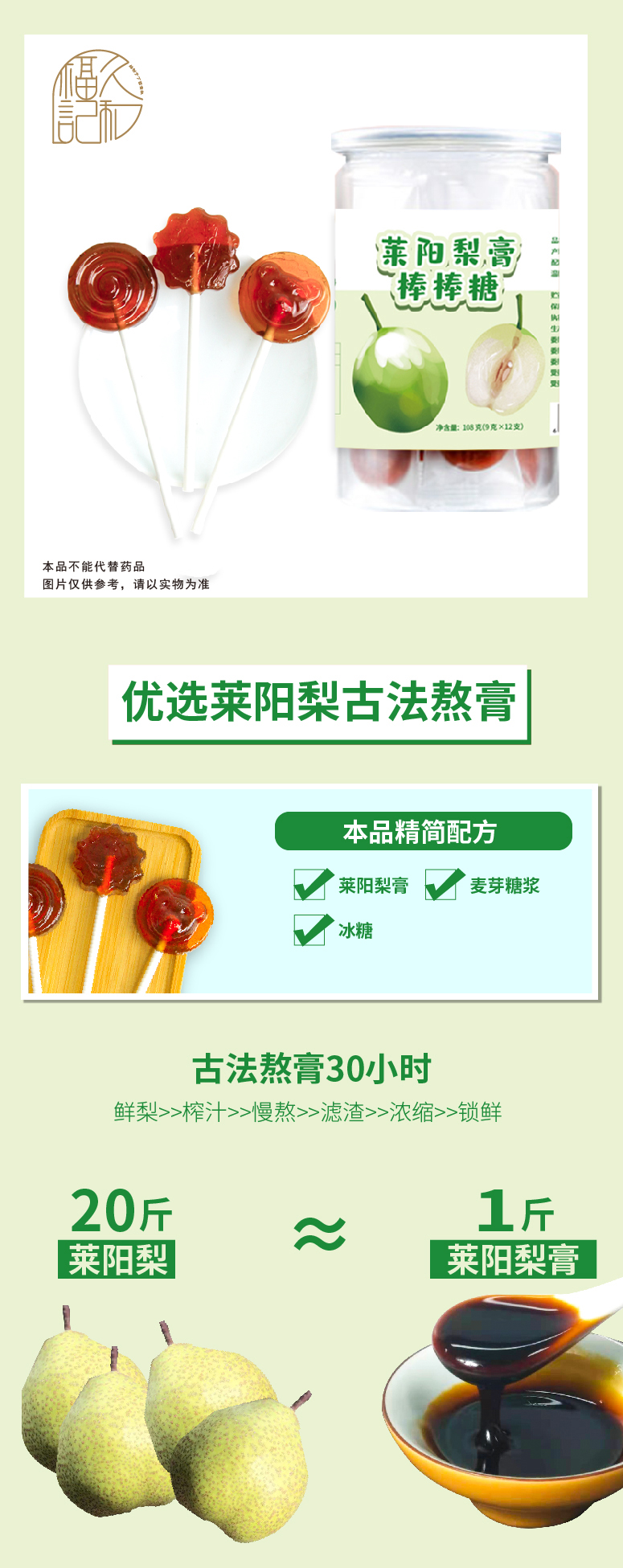 (三瓶装)桐君堂莱阳梨膏棒棒糖,优选莱阳梨精简配方