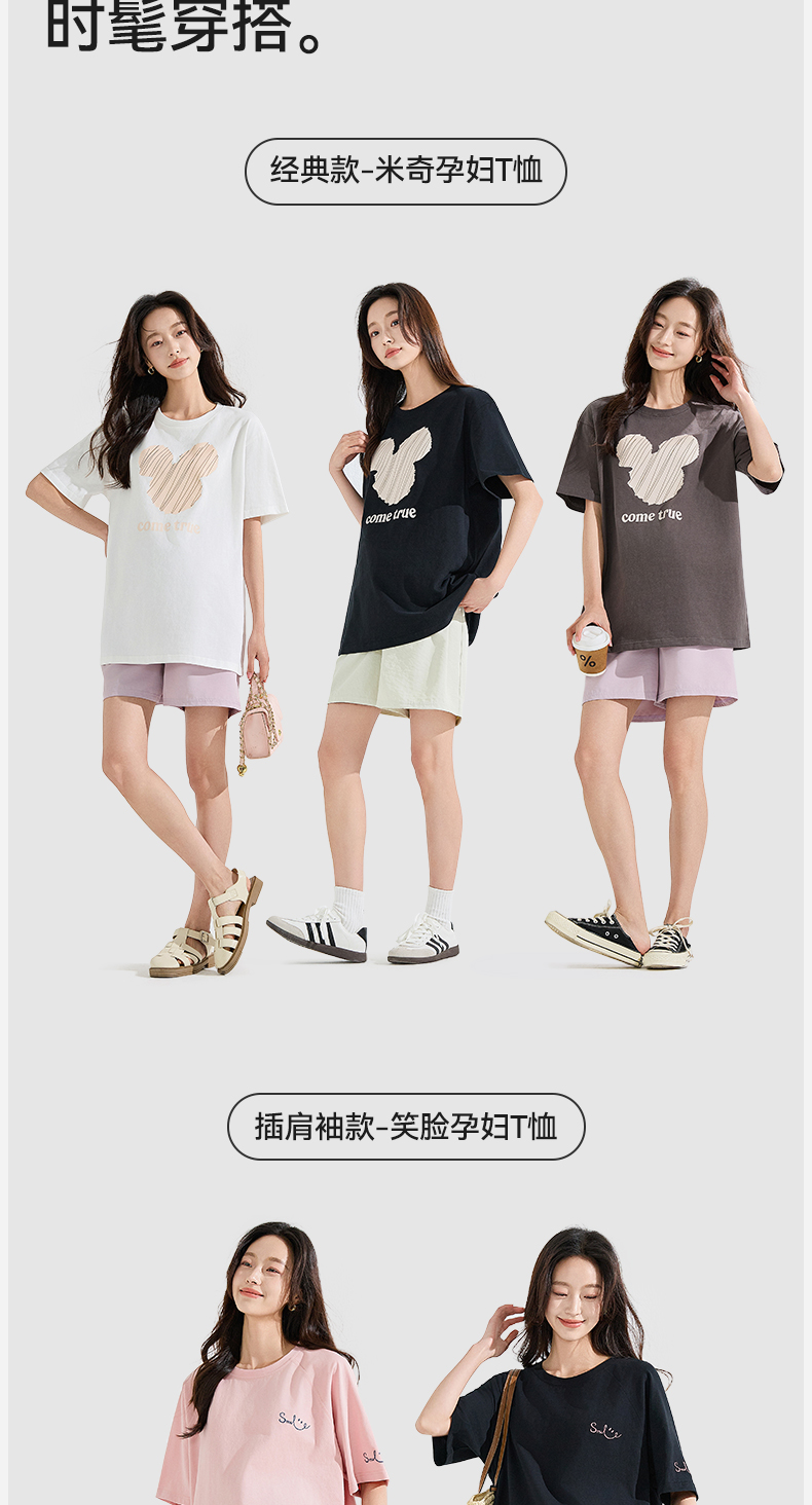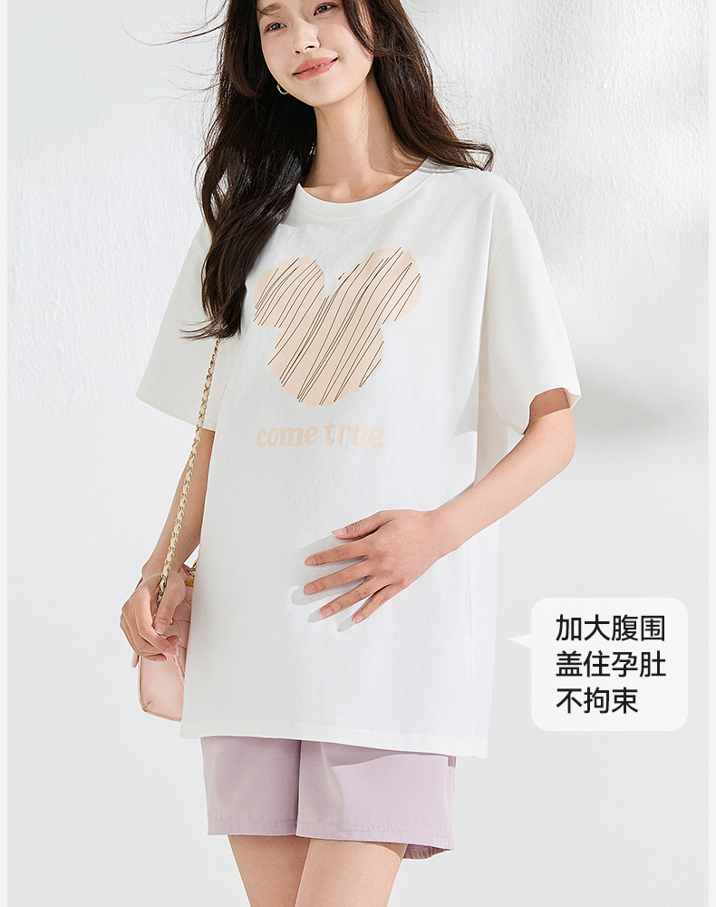 【满200减100】孕妇短袖t恤上衣2025新款纯棉女夏季中长款百搭宽松大码