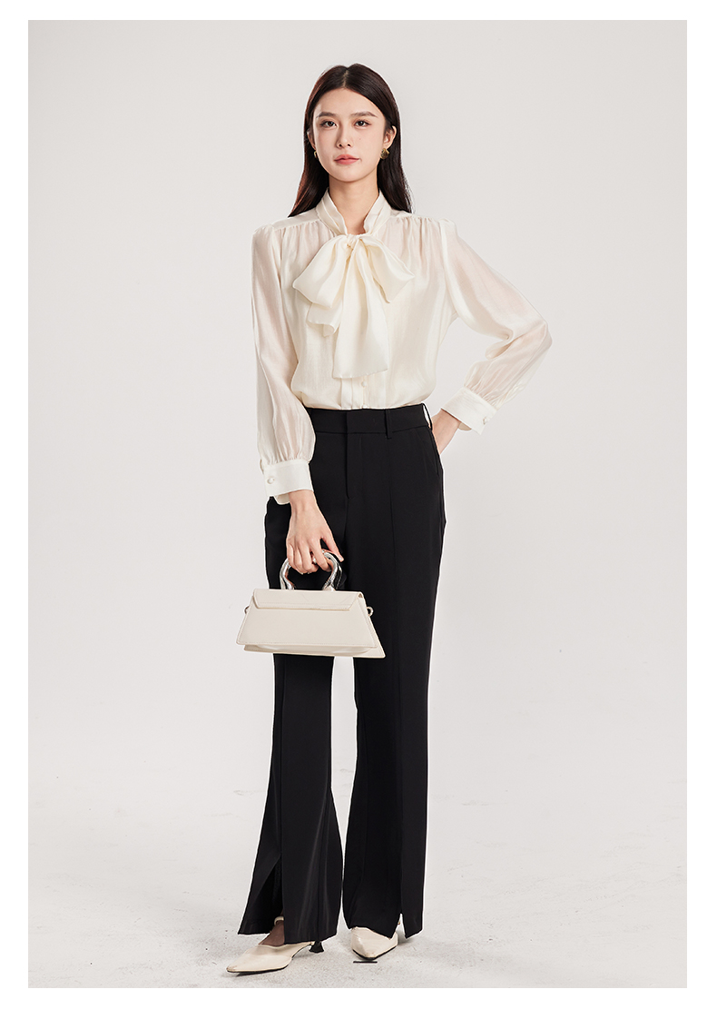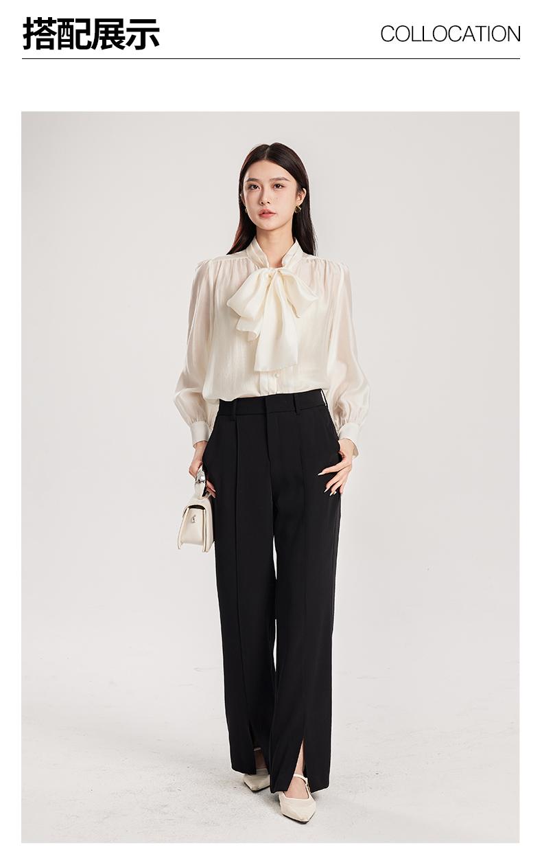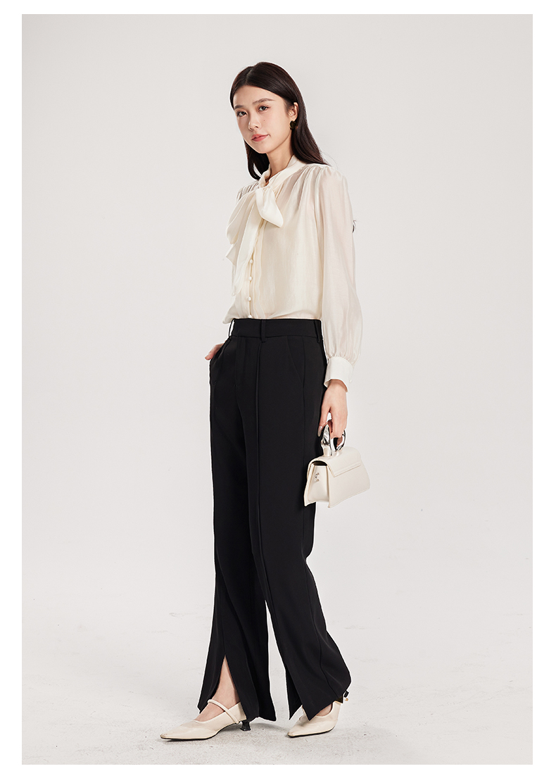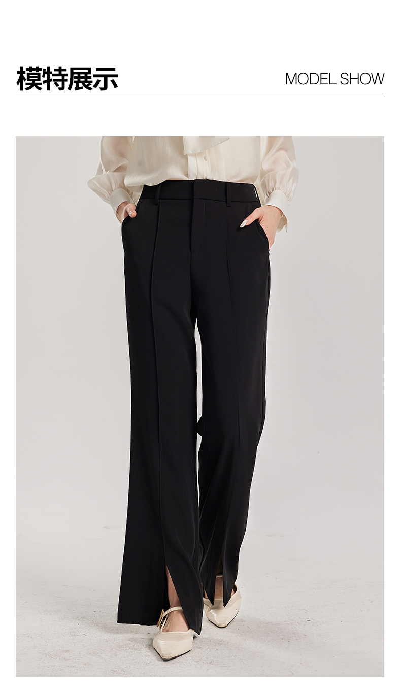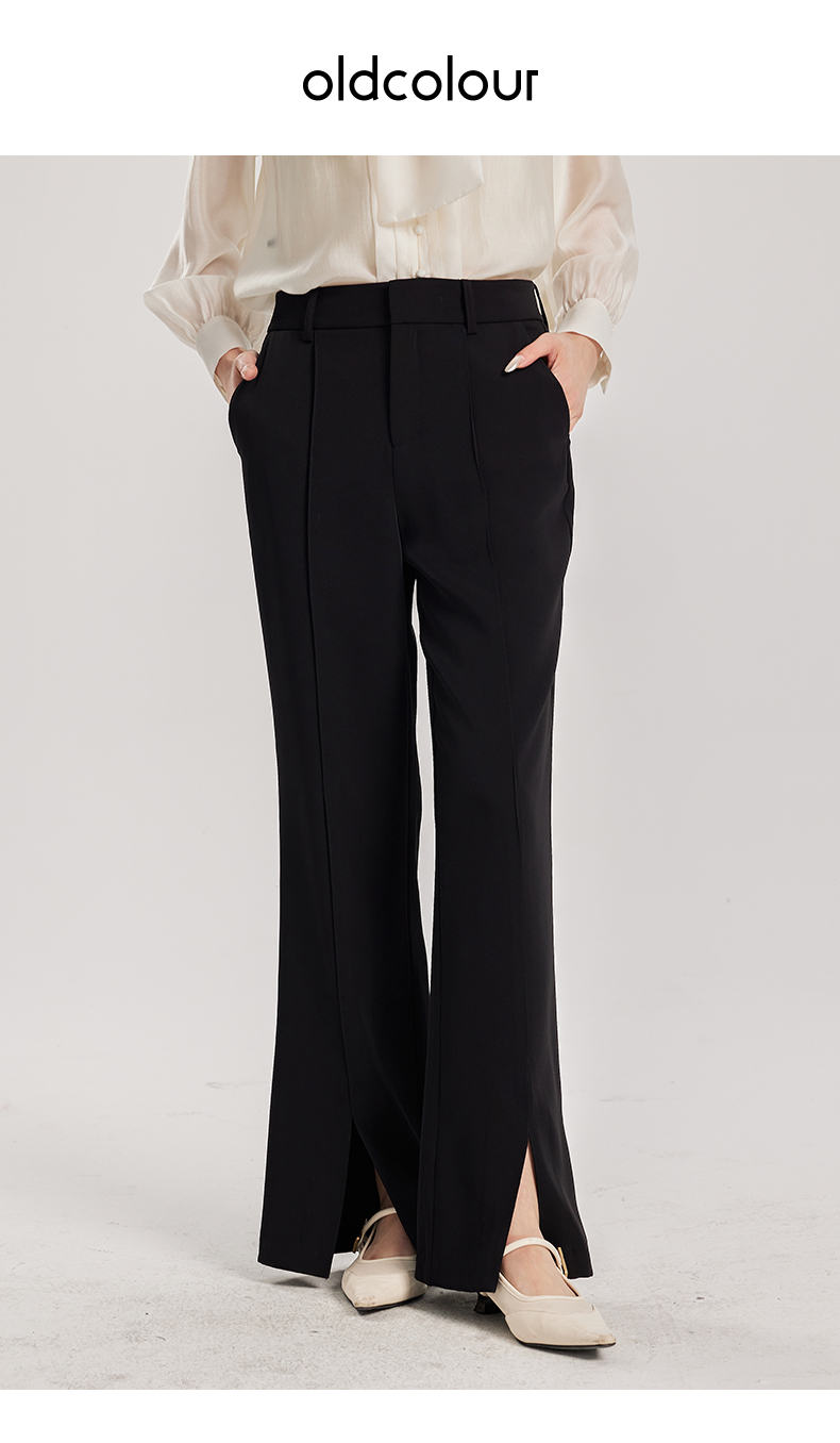 oldcolour春季新品时尚通勤开叉微喇高腰显瘦长裤女Q140703A1