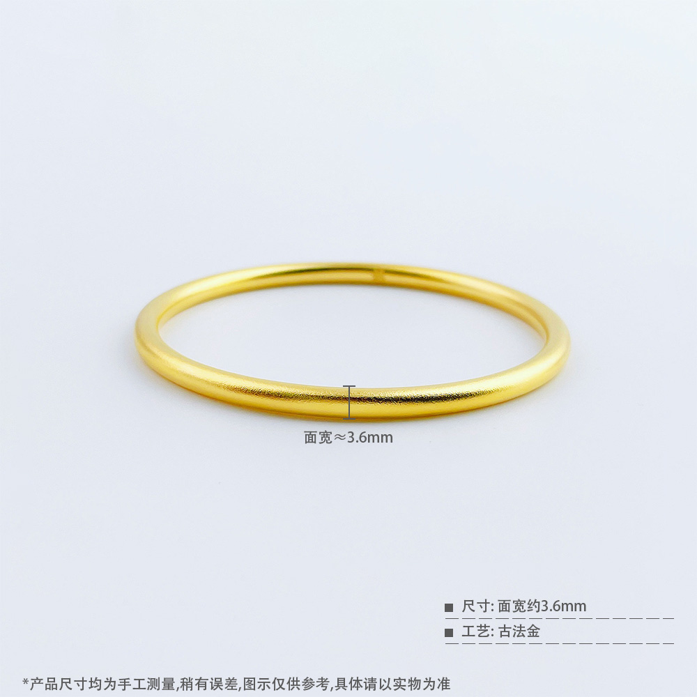 【限时克减128元】足金999 #超轻 古法素圈空心超轻加硬圆管固口手镯(面宽约3.4-3.8mm)(AUQGFSZ00068-3))预售产品下单后不退款不退货不换货不补差价