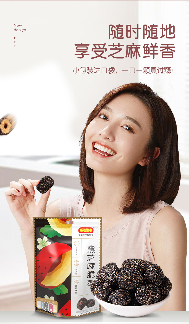 黑芝麻脆枣 175g/袋 新疆 红枣 脆枣 无核 酥脆 零食小吃 好想你