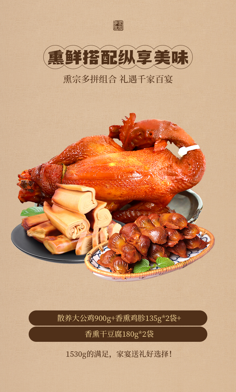 沟帮子熏鸡 沟帮子散养大公鸡900g+贴豆卷180g*2+香熏鸡胗135g*2